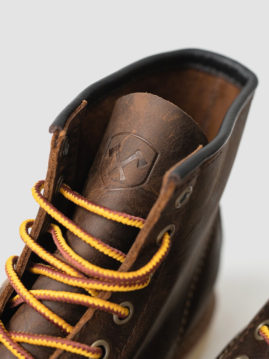 Ботинки выполнены методом Goodyear Welted. Верхняя часть сшивается с внутренней подметкой и рантом. Рант крепится к подошве с помощью высоких температур. Благодаря чему подошва абсолютно герметична и долговечна. Это делает обувь прочной и надежной.
