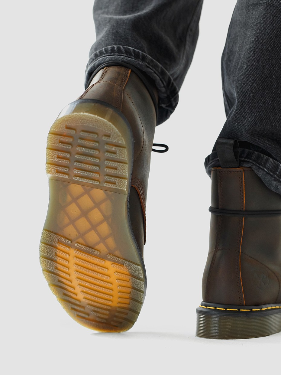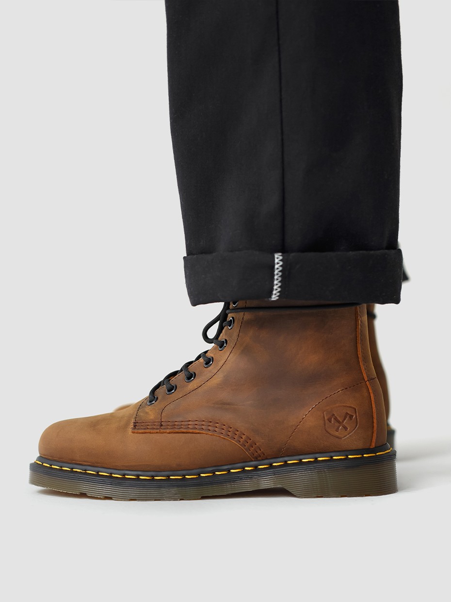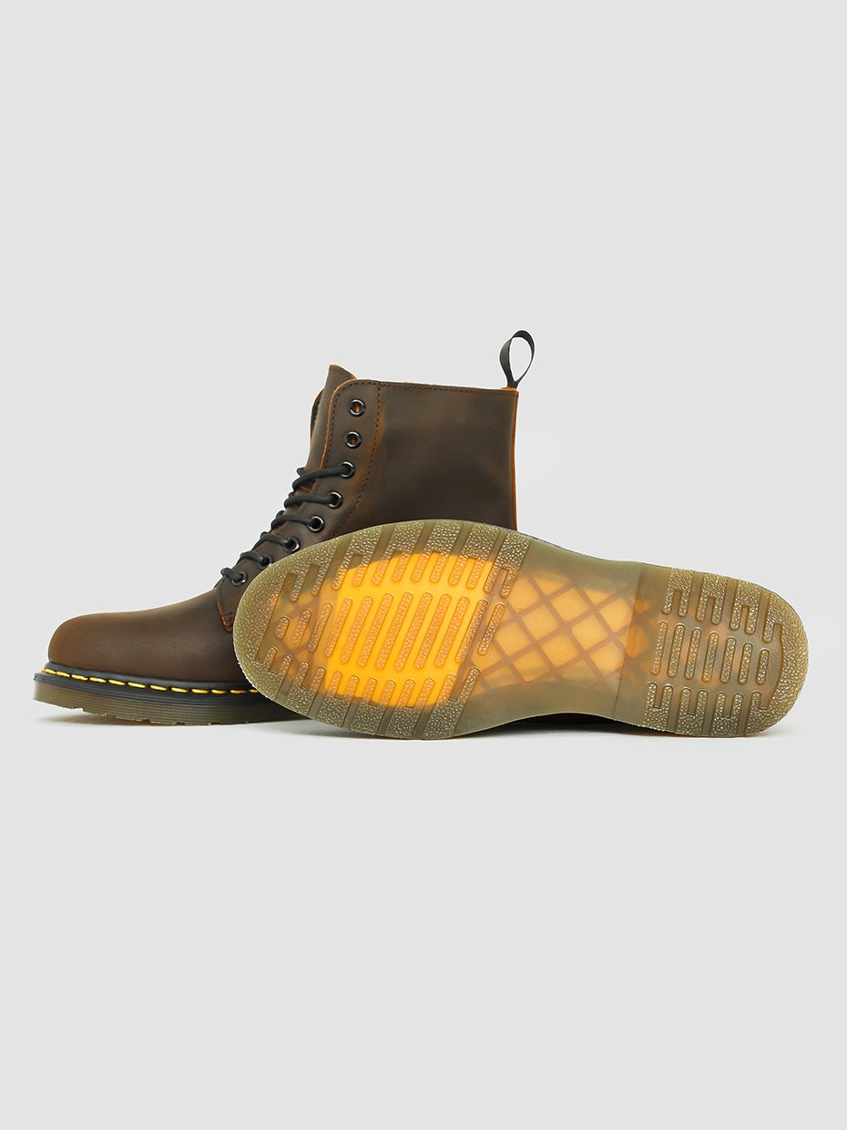 Зимние мужские ботинки 4802AW на 8 люверсов для повседневной носки. Шнуровка регулирует посадку по ноге. Ботинки выполнены из плотной, прочной бычьей кожи толщиной 2мм, которая легко переносит сильные морозы, устойчива к влаге и долговечна. Утеплитель ботинок – настоящий, густой овечий мех. Подошва из ПВХ обеспечивает хорошую теплоизоляцию, прочность и сопротивление холоду. Подошва не лопнет, не будет скользить и имеет хорошее сцепление с поверхностью. В носовой части ботинка между подошвой и внутренней подметкой расположена вставка EVA, которая способствует уменьшению нагрузки на стопу. Ботинки выполнены методом Goodyear Welt. Верхняя часть сшивается с внутренней подметкой и рантом. Рант крепится к подошве с помощью высоких температур. Благодаря чему подошва абсолютно герметична и долговечна. Это делает обувь прочной и надежной.
