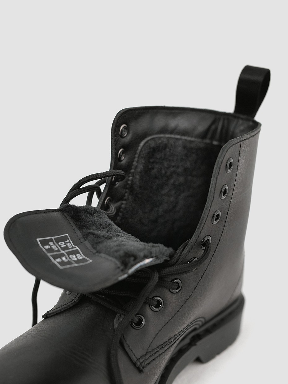 Зимние мужские ботинки 4802AW на 8 люверсов для повседневной носки. Шнуровка регулирует посадку по ноге. Ботинки выполнены из плотной, прочной бычьей кожи толщиной 2мм, которая легко переносит сильные морозы, устойчива к влаге и долговечна. Утеплитель ботинок – настоящий, густой овечий мех. Подошва из ПВХ обеспечивает хорошую теплоизоляцию, прочность и сопротивление холоду. Подошва не лопнет, не будет скользить и имеет хорошее сцепление с поверхностью. В носовой части ботинка между подошвой и внутренней подметкой расположена вставка EVA, которая способствует уменьшению нагрузки на стопу. Ботинки выполнены методом Goodyear Welt. Верхняя часть сшивается с внутренней подметкой и рантом. Рант крепится к подошве с помощью высоких температур. Благодаря чему подошва абсолютно герметична и долговечна. Это делает обувь прочной и надежной.
