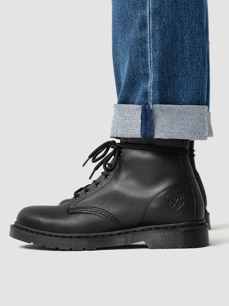 При производстве ботинок используется натуральная бычья кожа импортированная из Америки,  устойчива к влаге и долговечна. Толщина кожи 1,8-2мм.