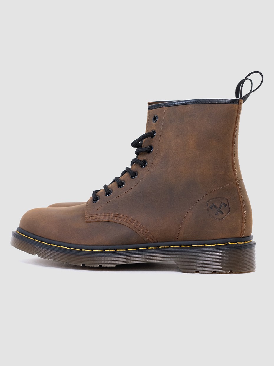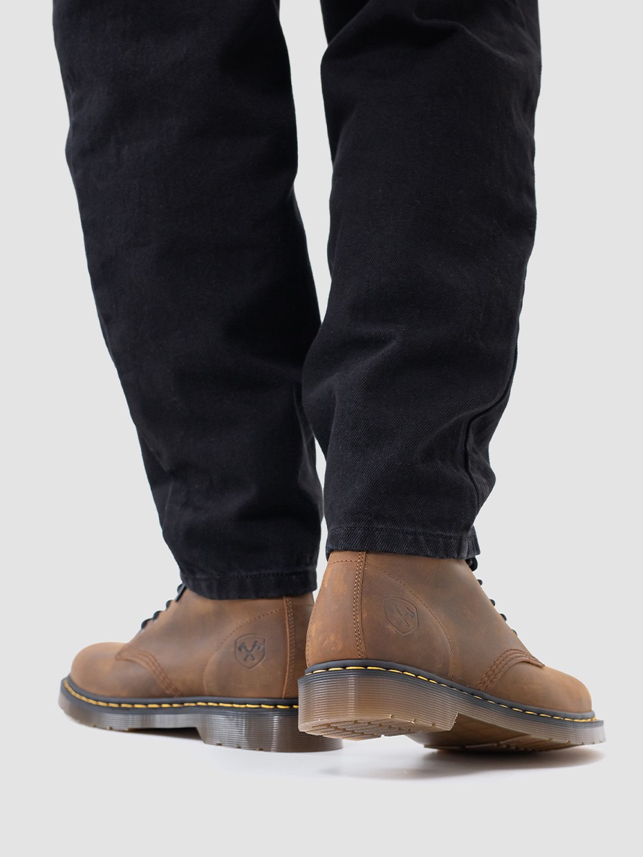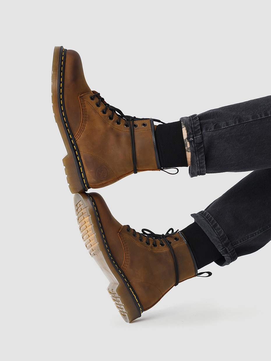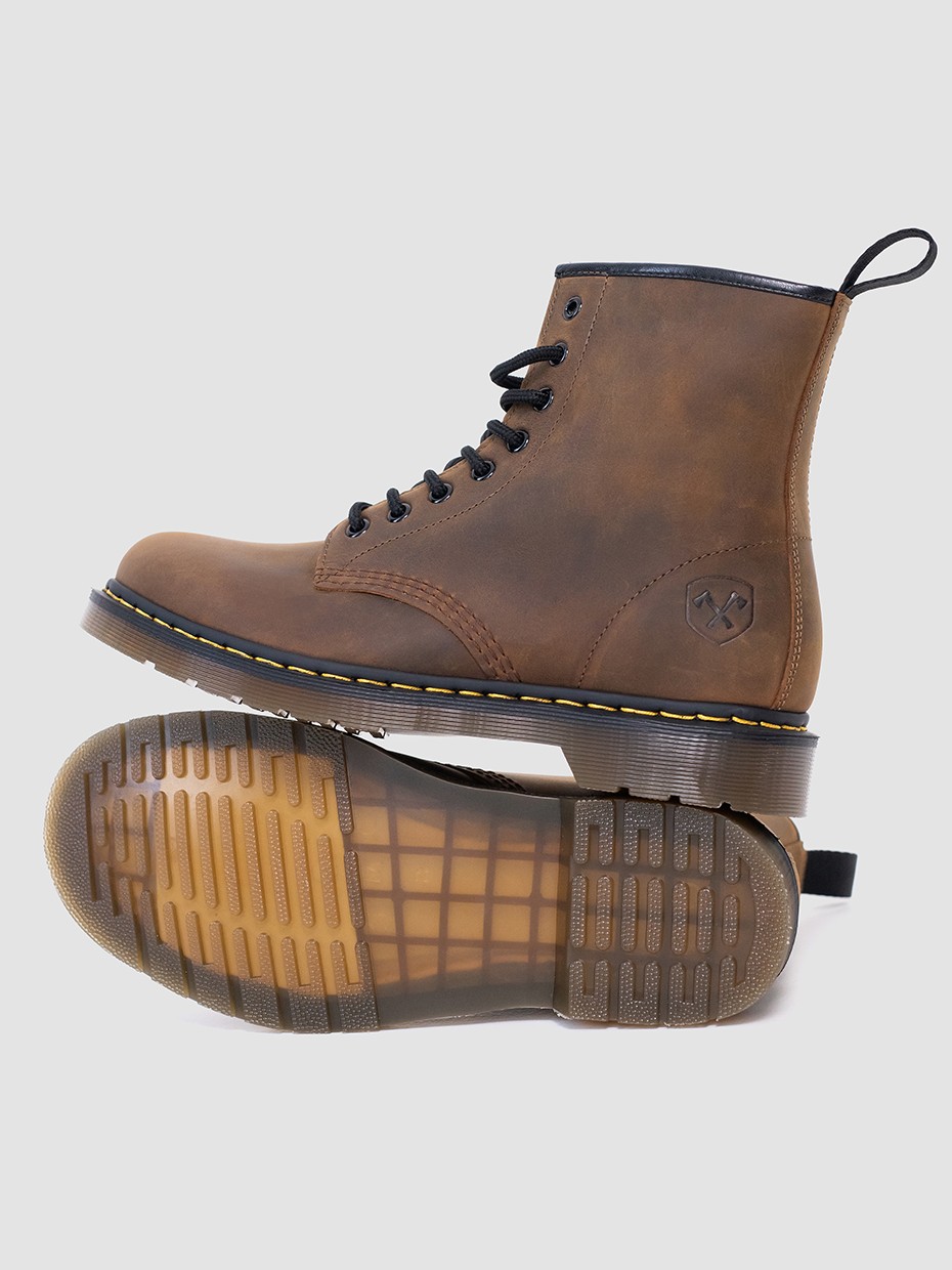 Демисезонные мужские ботинки 4802 на 8 люверсов. Данная модель отлично подходит для повседневной носки. Шнуровка регулирует посадку по ноге. Подносочная часть и задник дополнительно усилены, за счет чего обувь наделяется повышенной прочностью. Съемные стельки обеспечивают мягкость, комфорт движения и дополнительную амортизацию. В данной модели ботинок используется натуральная бычья кожа. Толщина кожи 1,8-2мм. Кожа легко переносит сильные морозы, устойчива к влаге и долговечна. Подошва полуботинок выполнена из ПВХ обеспечивает хорошую теплоизоляцию, прочность и сопротивление холоду. Подошва имеет хорошее сцепление с поверхностью. В носовой части ботинка между подошвой и внутренней подметкой расположена вставка EVA, которая способствует уменьшению нагрузки на стопу. Ботинки выполнены методом Goodyear Welt. Верхняя часть сшивается с внутренней подметкой и рантом. Рант крепится к подошве с помощью высоких температур. Благодаря чему подошва абсолютно герметична и долговечна. Это делает обувь прочной и надежной. Невысокий каблук позволяет поддерживать стопу в правильном положении и усиливает стабильность шага. Петельки сзади помогают обуваться одним движением.