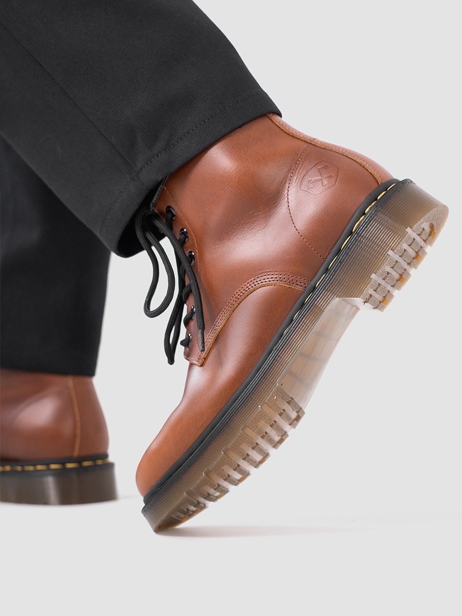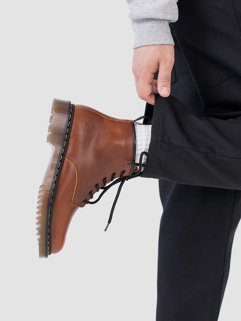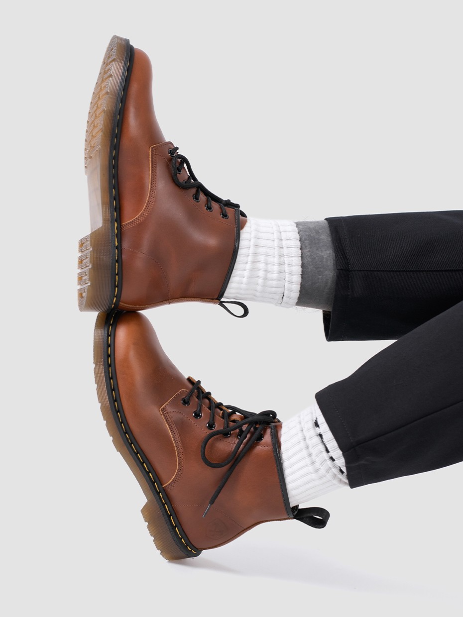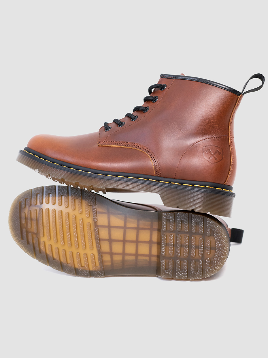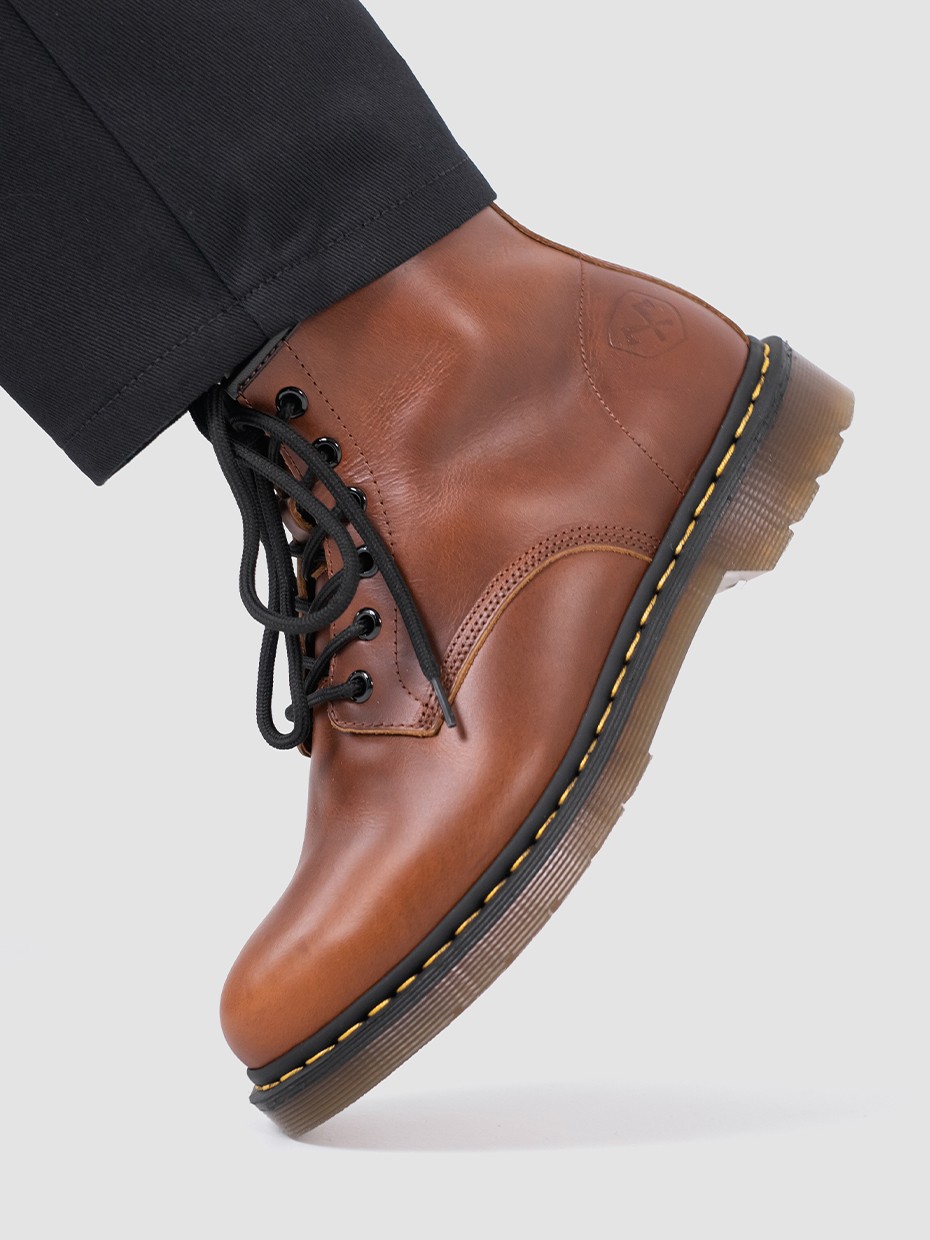 Демисезонные мужские ботинки 4806 на 6 люверсов для повседневной носки. Шнуровка регулирует посадку по ноге. Ботинки выполнены из плотной, прочной бычьей кожи толщиной 2мм, которая легко переносит сильные морозы, устойчива к влаге и долговечна. Подошва из ПВХ обеспечивает хорошую теплоизоляцию, прочность и сопротивление холоду. Подошва не лопнет, не будет скользить и имеет хорошее сцепление с поверхностью. В носовой части ботинка между подошвой и внутренней подметкой расположена вставка EVA, которая способствует уменьшению нагрузки на стопу. Ботинки выполнены методом Goodyear Welt. Верхняя часть сшивается с внутренней подметкой и рантом. Рант крепится к подошве с помощью высоких температур. Благодаря чему подошва абсолютно герметична и долговечна. Это делает обувь прочной и надежной. Сезон: демисезон.
