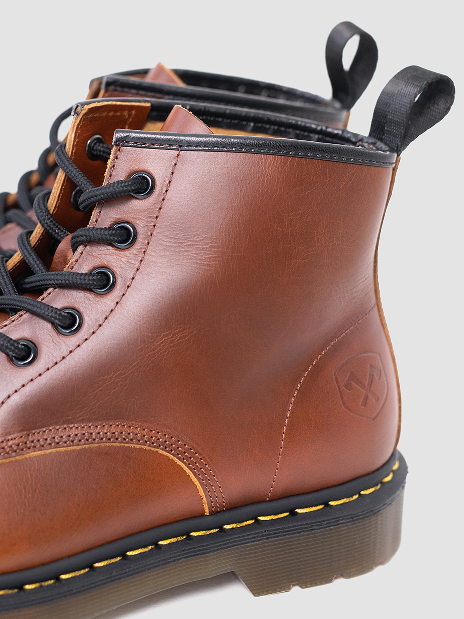 При производстве ботинок используется натуральная бычья кожа импортированная из Америки, устойчива к влаге и долговечна. Толщина кожи 1,8-2мм.