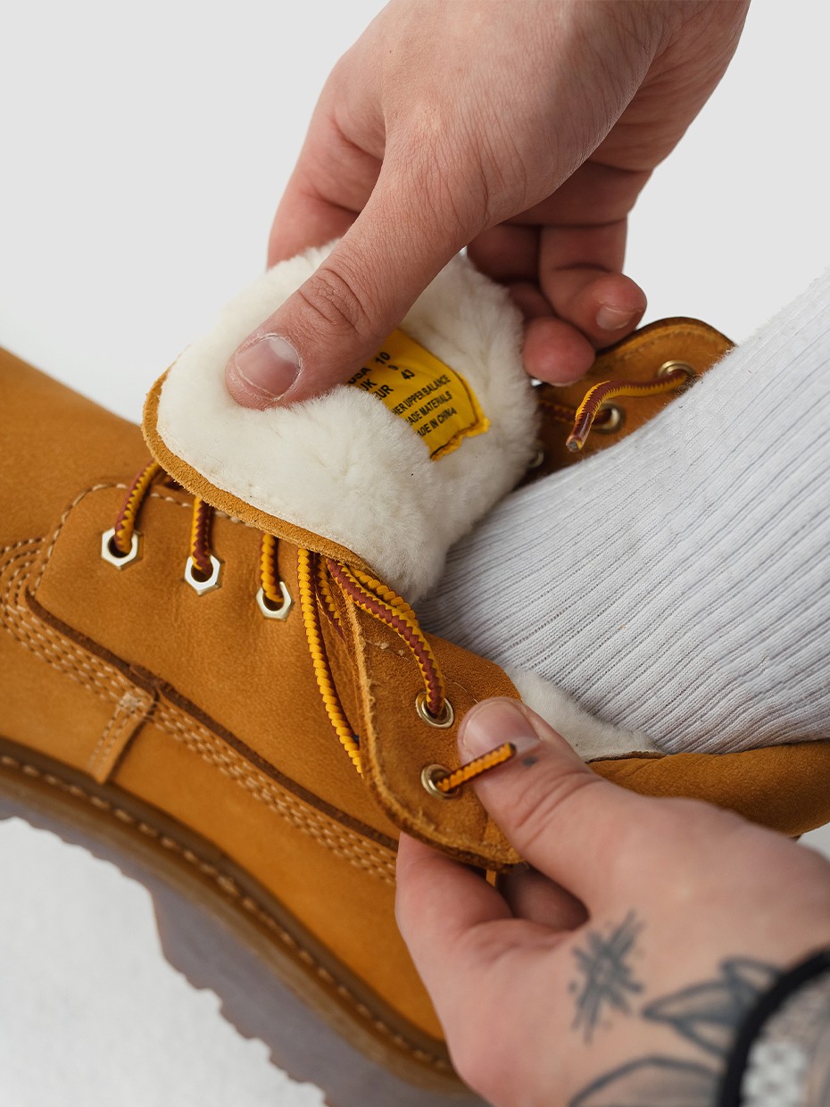Утеплитель ботинок – настоящий, густой овечий мех.