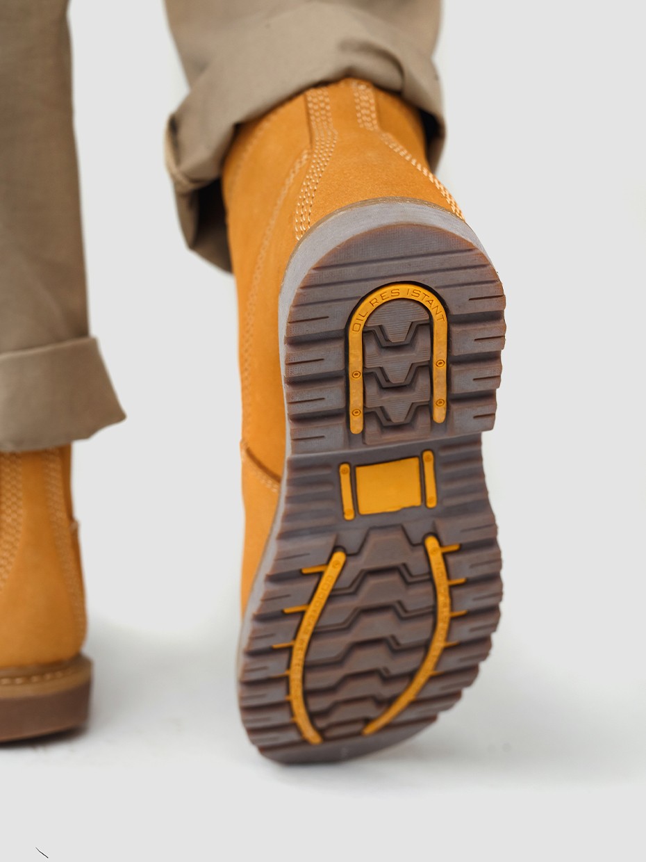 Подошва ботинок, выполненная из резины, обладает отличными противоскользящими свойствами, не промерзает даже в сильный мороз, а также устойчива к агрессивным факторам среды. Подошва не лопнет, не будет скользить и имеет хорошее сцепление с поверхностью.