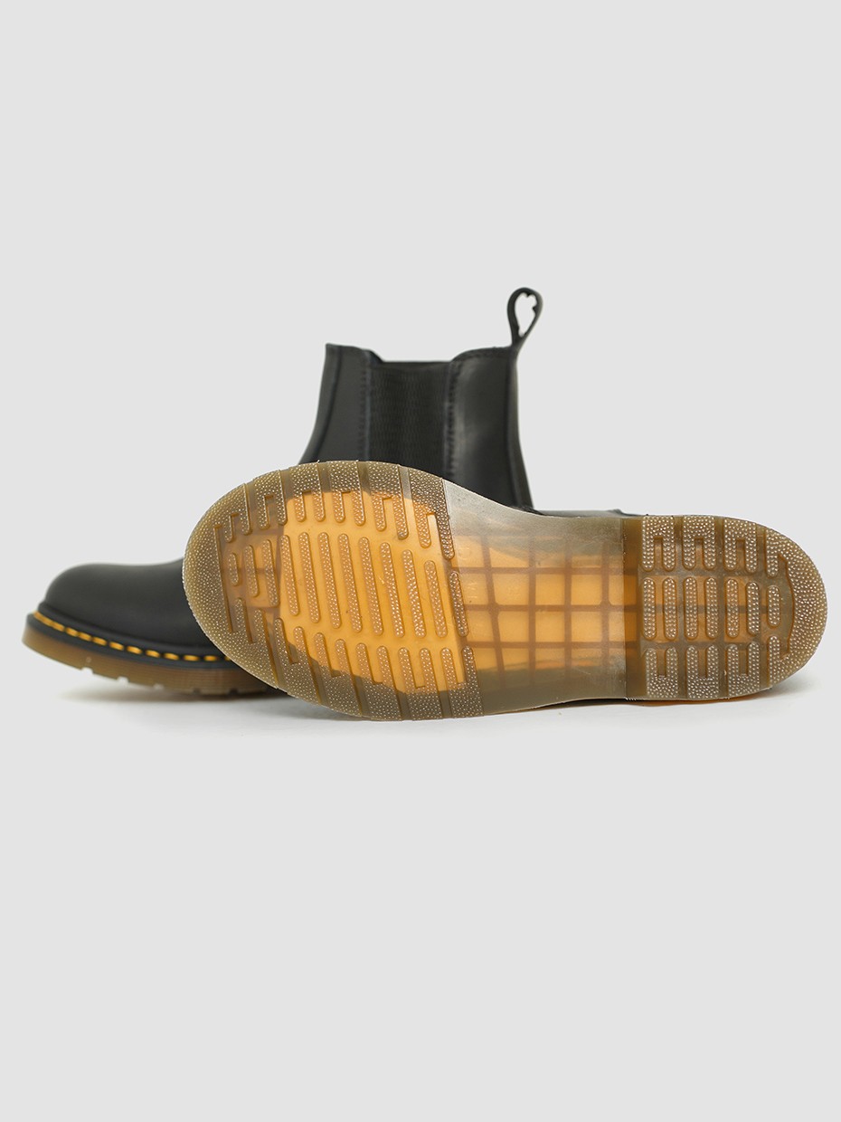 Ботинки челси выполнены из плотной, прочной бычьей кожи. Утеплитель ботинок – настоящий, густой овечий мех. Подносочная часть и задник дополнительно усилены, за счет чего обувь наделяется повышенной прочностью. Подошва полуботинок выполнена из ПВХ обеспечивает хорошую теплоизоляцию, прочность и сопротивление холоду. Подошва имеет хорошее сцепление с поверхностью. В носовой части ботинка между подошвой и внутренней подметкой расположена вставка EVA, которая способствует уменьшению нагрузки на стопу. Ботинки выполнены методом Goodyear Welt. Верхняя часть сшивается с внутренней подметкой и рантом. Рант крепится к подошве с помощью высоких температур. Благодаря чему подошва абсолютно герметична и долговечна. Это делает обувь прочной и надежной. Невысокий каблук позволяет поддерживать стопу в правильном положении и усиливает стабильность шага. По бокам расположены эластичные вставки. Модель удобно надевать и снимать за счет широкой петли на заднике.