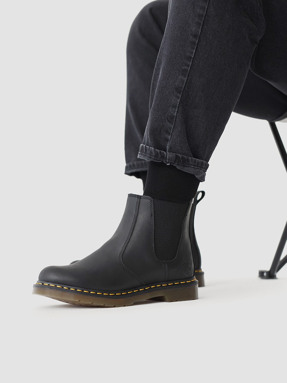 Демисезонные мужские ботинки Chelsea из натуральной кожи. Эластичные боковые вставки удерживают ботинки на ногах, а петельки помогают обуваться одним движением. Подносочная часть и задник дополнительно усилены, за счет чего обувь наделяется повышенной прочностью. Съемные стельки обеспечивают мягкость, комфорт движения и дополнительную амортизацию. В данной модели ботинок используется натуральная бычья кожа. Окраска производится процессом водного окрашивания в красильных ваннах с сохранением натурального рисунка лицевой стороны. Толщина кожи 1,8-2мм. Кожа устойчива к влаге и долговечна. Подошва полуботинок выполнена из ПВХ обеспечивает хорошую теплоизоляцию, прочность и сопротивление холоду. Подошва имеет хорошее сцепление с поверхностью. В носовой части ботинка между подошвой и внутренней подметкой расположена вставка EVA, которая способствует уменьшению нагрузки на стопу. Ботинки выполнены методом Goodyear Welt. Верхняя часть сшивается с внутренней подметкой и рантом. Рант крепится к подошве с помощью высоких температур. Благодаря чему подошва абсолютно герметична и долговечна. Это делает обувь прочной и надежной. Невысокий каблук позволяет поддерживать стопу в правильном положении и усиливает стабильность шага.