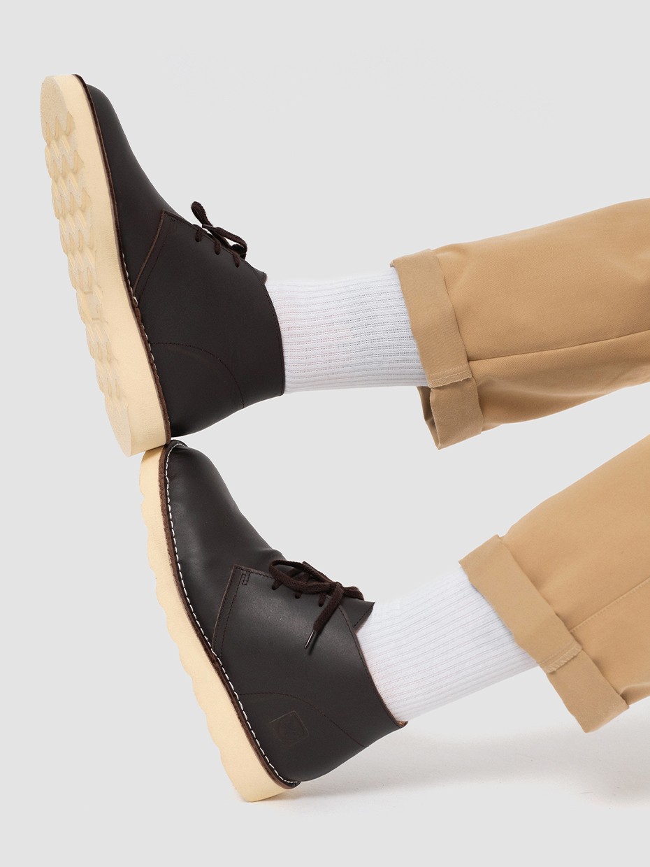 Подошва ботинок, выполненная из резины, обладает отличными противоскользящими свойствами устойчива к агрессивным факторам среды. Подошва не лопнет, не будет скользить и имеет хорошее сцепление с поверхностью.