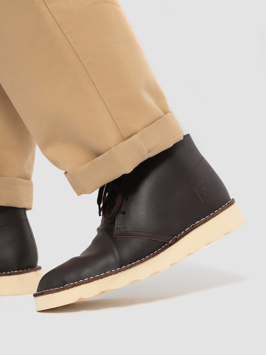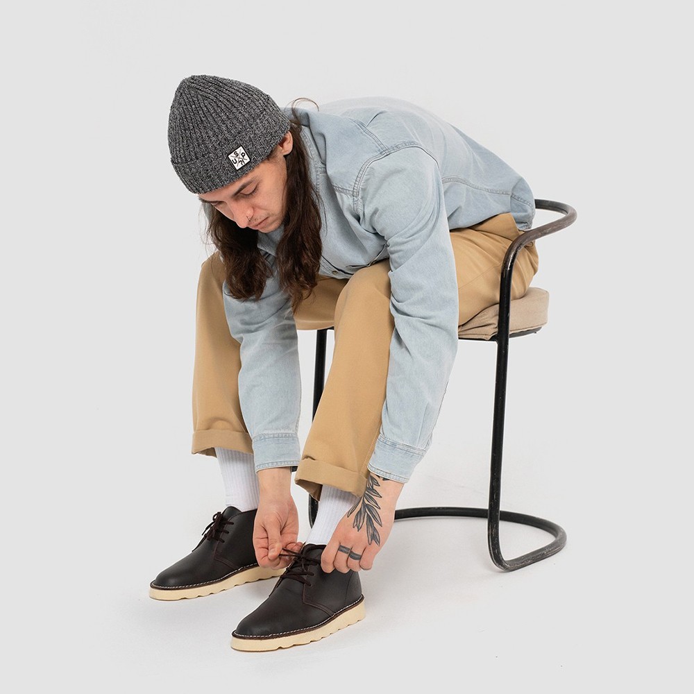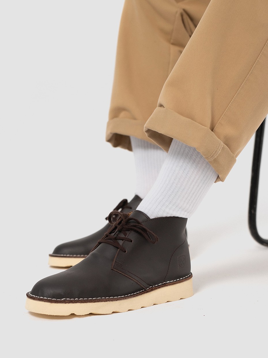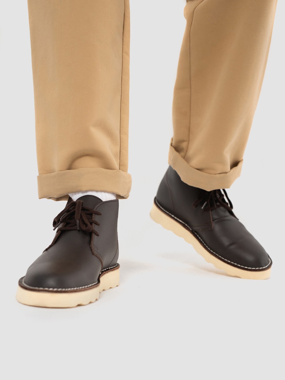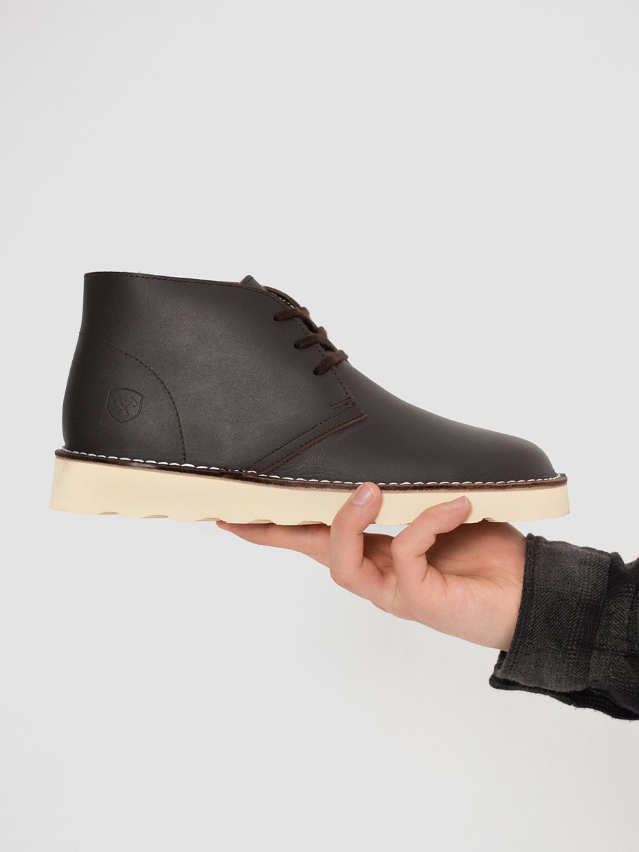 Демисезонные мужские ботинки Chukka для повседневной носки из натуральной кожи предлагают премиальный комфорт, надежную защиту от влаги и трендовый дизайн. Монохромный верх ботинок и практичная акцентная подошва смотрятся стильно и актуально. Лаконичный силуэт с шнуровкой добавляет образу характера. Полуботинки оснащены шнуровкой, для возможности регулирования полноты обуви и посадки по ноге. Подносочная часть и задник дополнительно усилены, за счет чего обувь наделяется повышенной прочностью. Съемные стельки обеспечивают мягкость, комфорт движения и дополнительную амортизацию. В данной модели ботинок используется натуральная бычья кожа. Окраска производится процессом водного окрашивания в красильных ваннах с сохранением натурального рисунка лицевой стороны – морщинки и поры, которые имеются на необработанной шкуре. Толщина кожи 1,8-2мм. Кожа  устойчива к влаге и долговечна. Подошва не лопнет, не будет скользить и имеет хорошее сцепление с поверхностью. Сбоку ботинки дополняет тиснение с логотипом бренда.