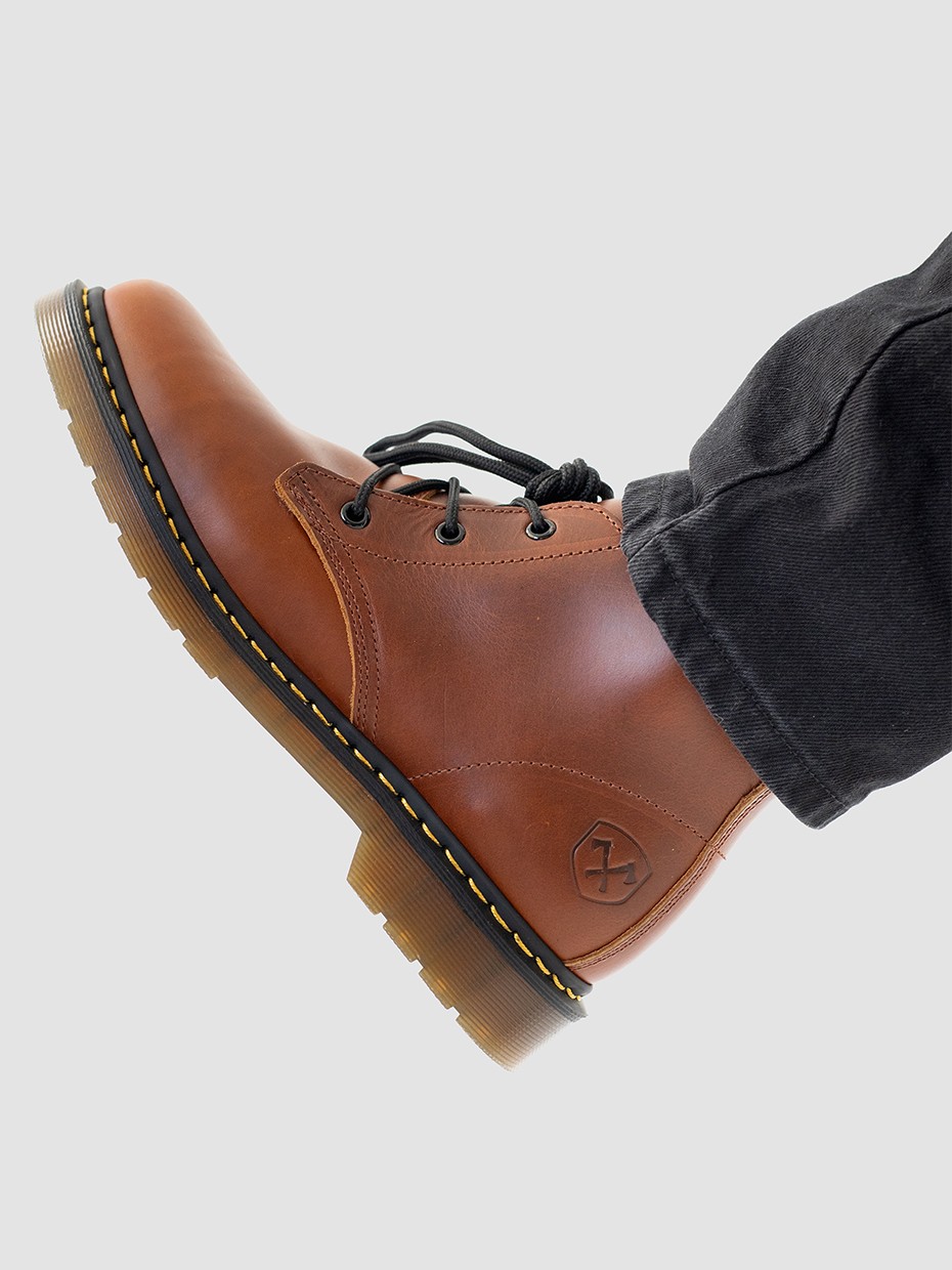 Демисезонные мужские ботинки Flank на 3 люверса для повседневной носки. Шнуровка регулирует посадку по ноге. Ботинки выполнены из плотной, прочной бычьей кожи толщиной 2мм., устойчива к влаге и долговечна. Подошва из ПВХ обеспечивает хорошую теплоизоляцию, прочность и сопротивление холоду. Подошва не лопнет, не будет скользить и имеет хорошее сцепление с поверхностью. В носовой части ботинка между подошвой и внутренней подметкой расположена вставка EVA, которая способствует уменьшению нагрузки на стопу. Ботинки выполнены методом Goodyear Welt. Верхняя часть сшивается с внутренней подметкой и рантом. Рант крепится к подошве с помощью высоких температур. Благодаря чему подошва абсолютно герметична и долговечна. Это делает обувь прочной и надежной. Сбоку ботинки дополняет тиснение с логотипом бренда.