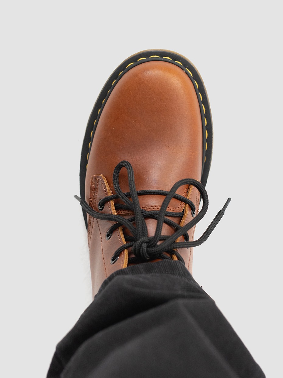При производстве ботинок используется натуральная бычья кожа импортированная из Америки, устойчива к влаге и долговечна. Толщина кожи 1,8-2мм.