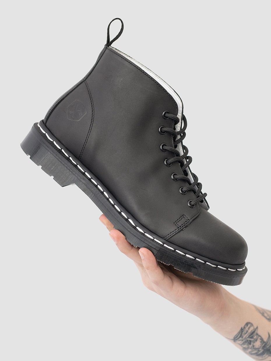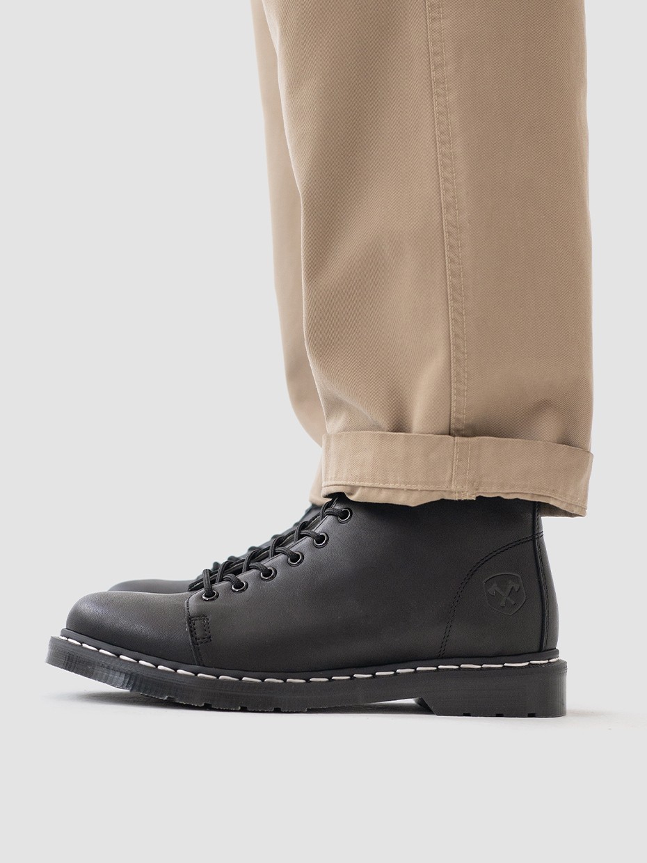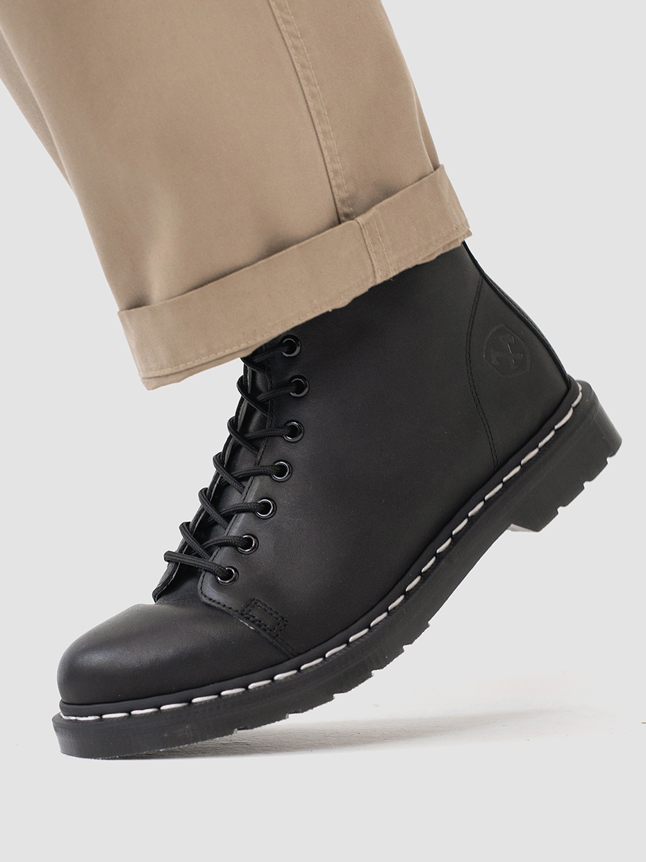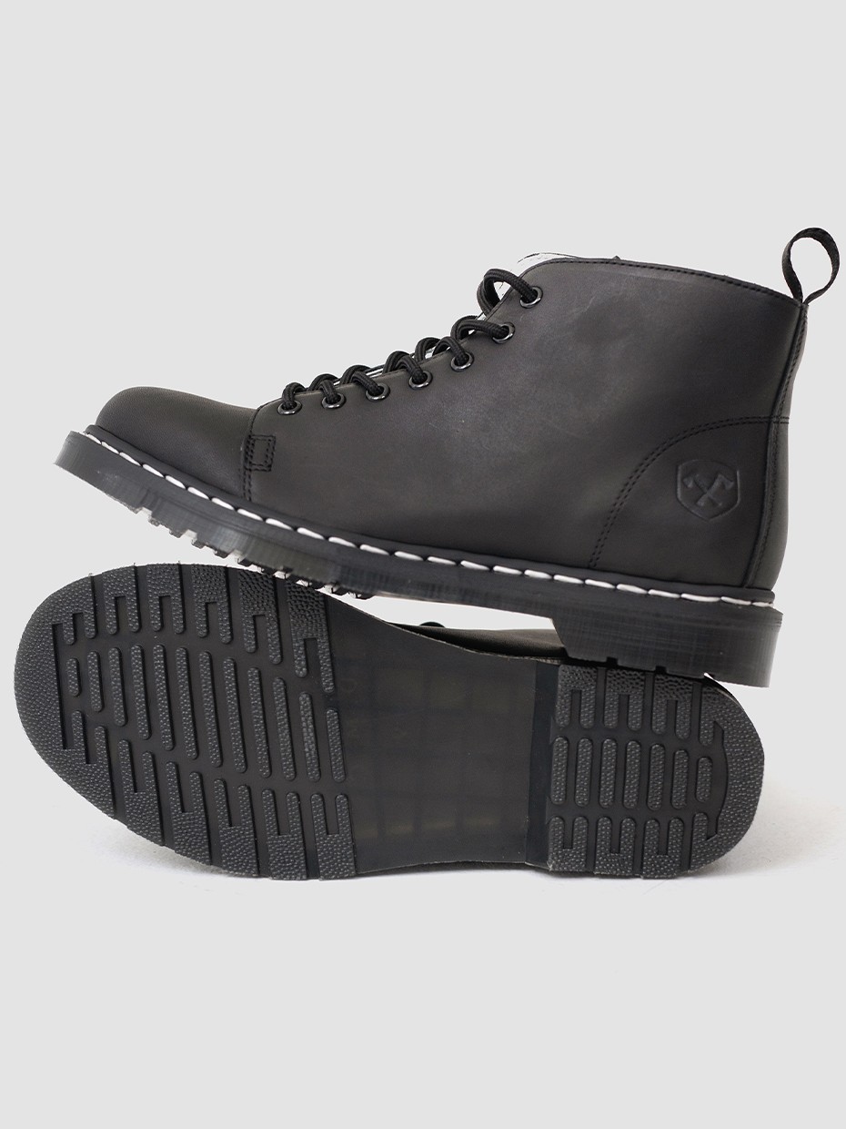 Демисезонные мужские ботинки Glacier на 7 люверсов для повседневной носки. Шнуровка регулирует посадку по ноге. Петля на заднике для удобства надевания и снятия обуви. Ботинки выполнены из плотной, прочной бычьей кожи толщиной 2мм, которая легко переносит сильные морозы, устойчива к влаге и долговечна. Подошва из ПВХ обеспечивает хорошую теплоизоляцию, прочность и сопротивление холоду. Подошва не лопнет, не будет скользить и имеет хорошее сцепление с поверхностью. В носовой части ботинка между подошвой и внутренней подметкой расположена вставка EVA, которая способствует уменьшению нагрузки на стопу. Ботинки выполнены методом Goodyear Welt. Верхняя часть сшивается с внутренней подметкой и рантом. Рант крепится к подошве с помощью высоких температур. Благодаря чему подошва абсолютно герметична и долговечна. Это делает обувь прочной и надежной. Сбоку ботинки дополняет тиснение с логотипом бренда.
