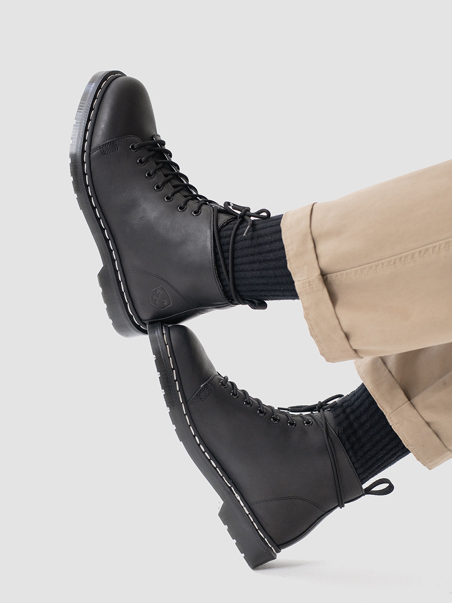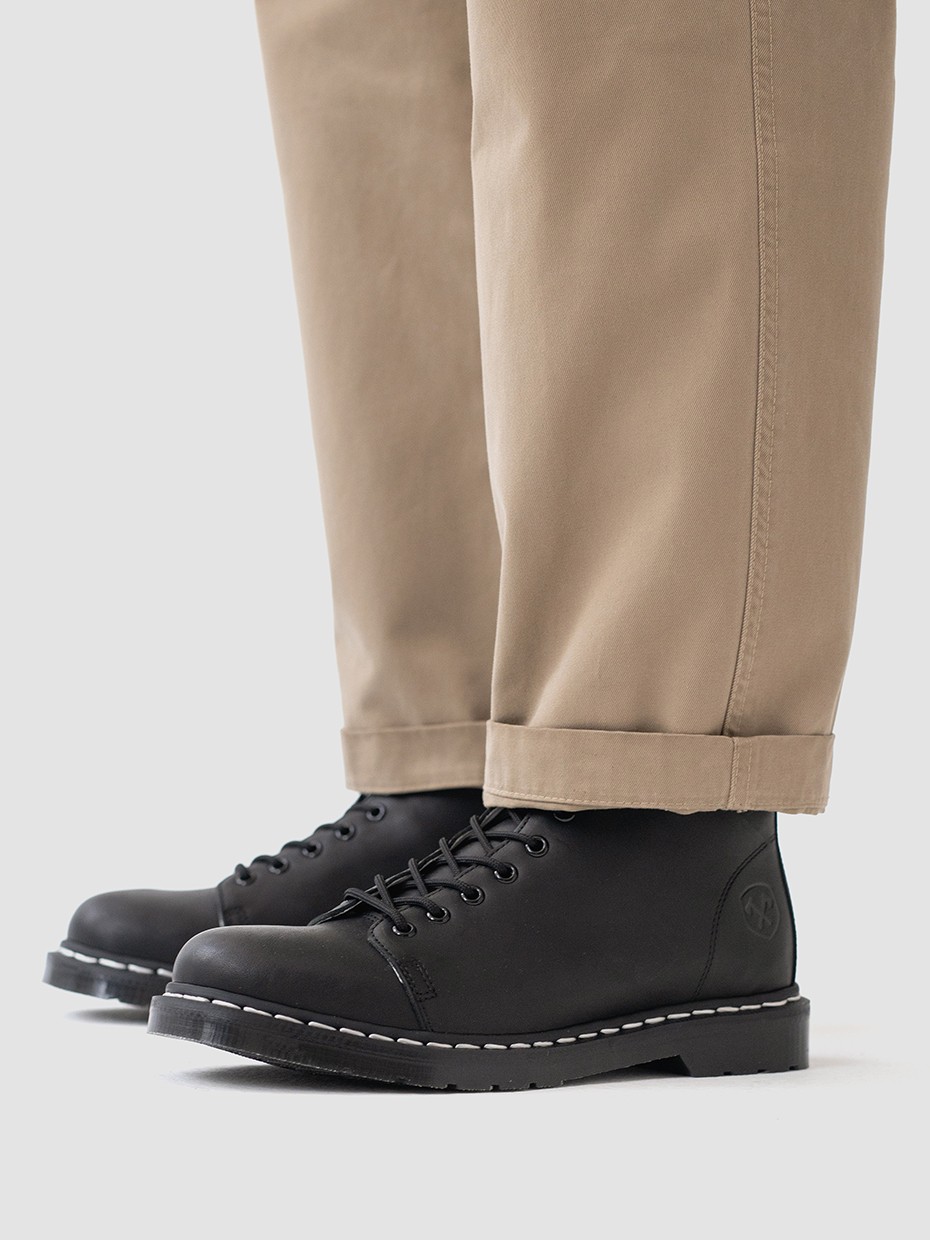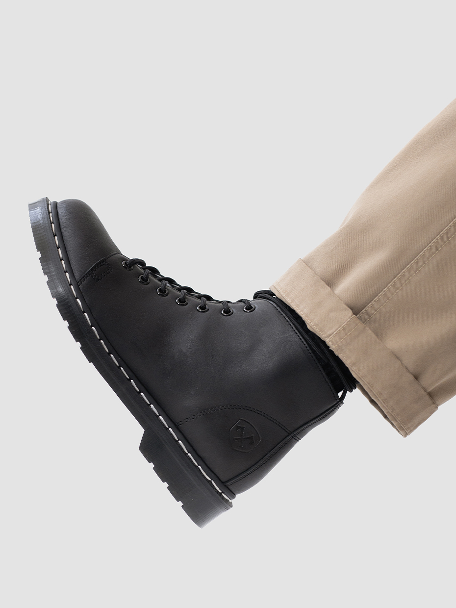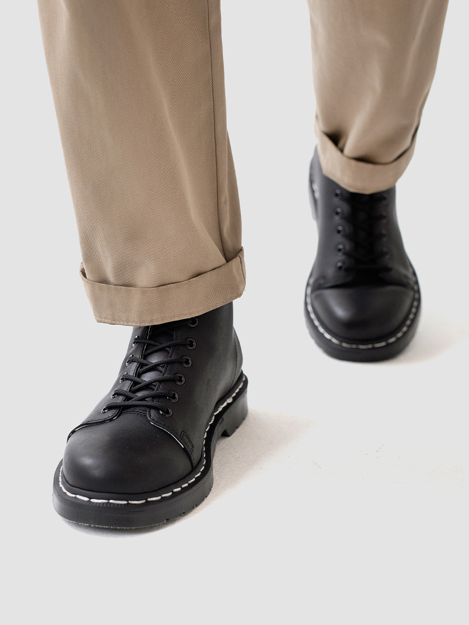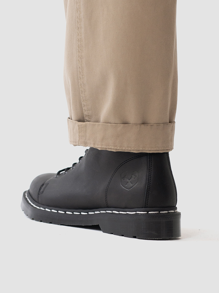 Демисезонные мужские ботинки Glacier на 7 люверсов для повседневной носки. Шнуровка регулирует посадку по ноге. Петля на заднике для удобства надевания и снятия обуви. Ботинки выполнены из плотной, прочной бычьей кожи толщиной 2мм, которая легко переносит сильные морозы, устойчива к влаге и долговечна. Подошва из ПВХ обеспечивает хорошую теплоизоляцию, прочность и сопротивление холоду. Подошва не лопнет, не будет скользить и имеет хорошее сцепление с поверхностью. В носовой части ботинка между подошвой и внутренней подметкой расположена вставка EVA, которая способствует уменьшению нагрузки на стопу. Ботинки выполнены методом Goodyear Welt. Верхняя часть сшивается с внутренней подметкой и рантом. Рант крепится к подошве с помощью высоких температур. Благодаря чему подошва абсолютно герметична и долговечна. Это делает обувь прочной и надежной. Сбоку ботинки дополняет тиснение с логотипом бренда.