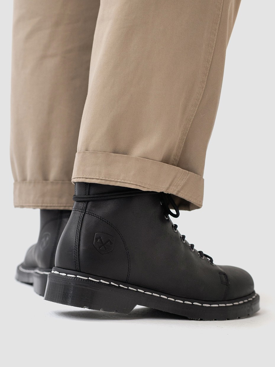 При производстве ботинок используется натуральная бычья кожа импортированная из Америки, устойчива к влаге и долговечна. Толщина кожи 1,8-2мм.