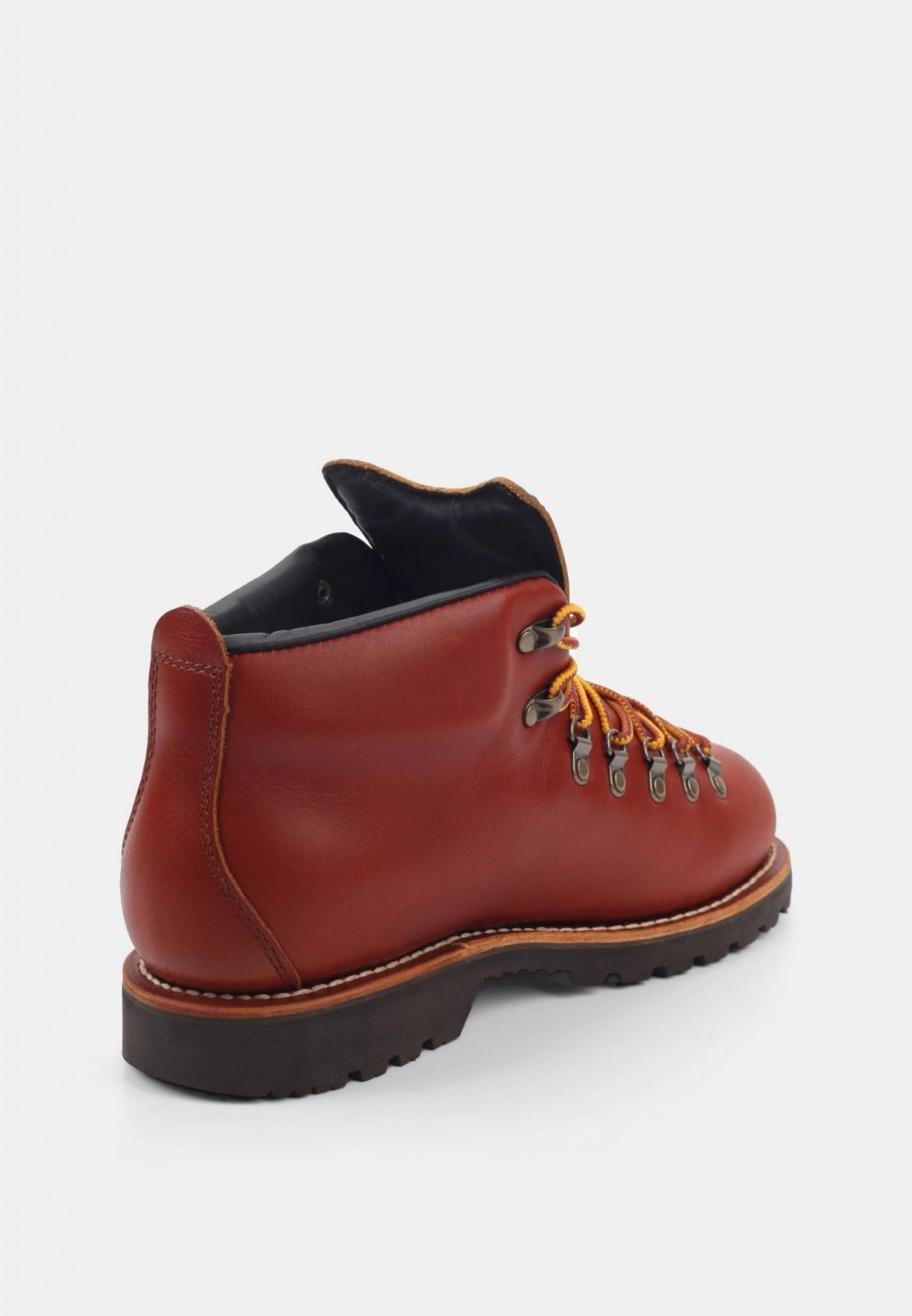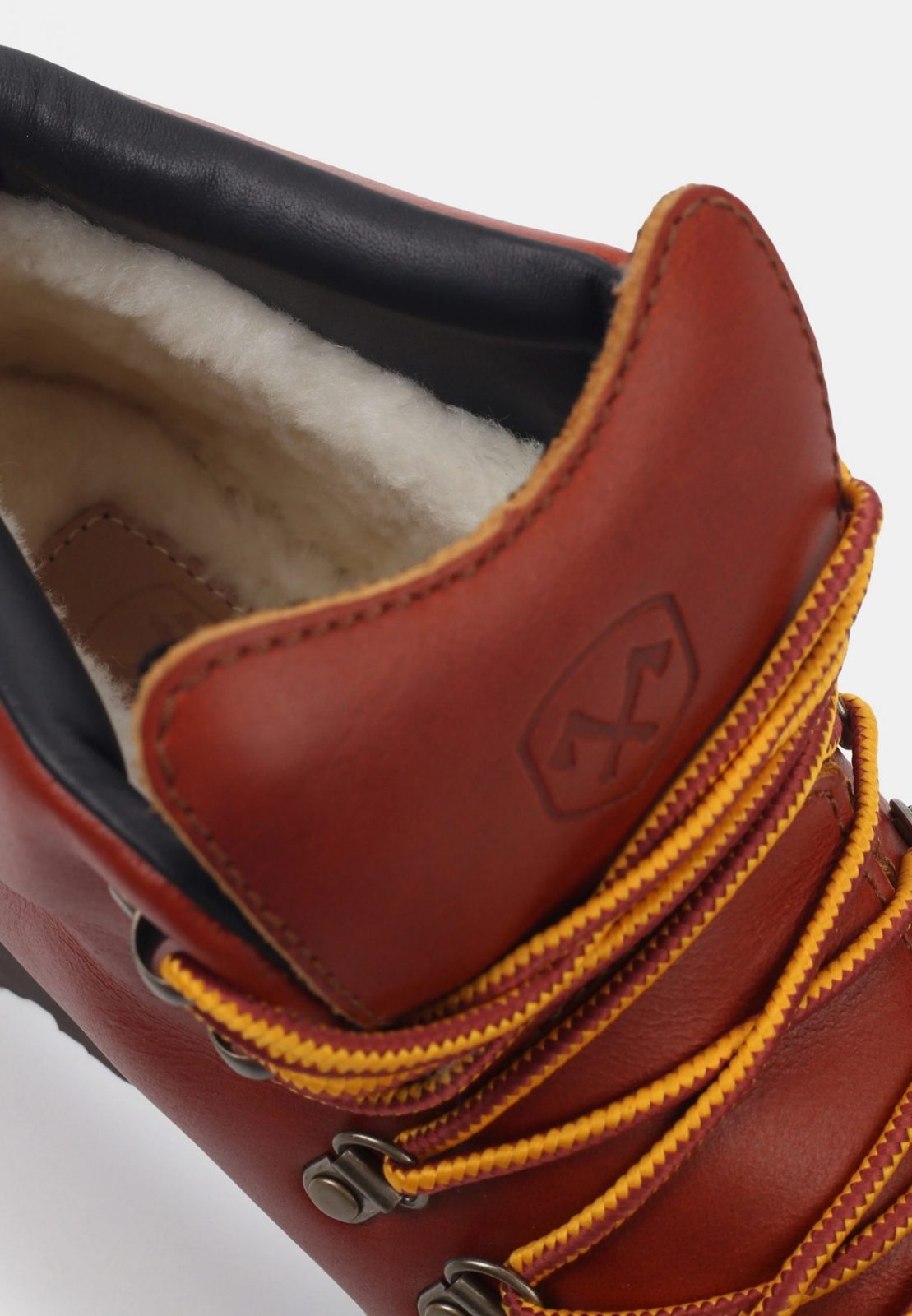Зимние мужские ботинки Hiker AW. Данная модель отлично подходит для повседневной носки. При производстве ботинок используется натуральная бычья кожа импортированная из Америки, которая легко переносит сильные морозы, устойчива к влаге и долговечна. Шнуровка на 5 петель и 2 крючка способствует плотной и удобной посадке на ноге, а также предотвращает попадание снега внутрь обуви. Утеплитель ботинок – настоящий, густой овечий мех. Подносочная часть и задник дополнительно усилены, за счет чего обувь наделяется повышенной прочностью. Подошва ботинок, выполненная из резины, обладает отличными противоскользящими свойствами, не промерзает даже в сильный мороз, а также устойчива к агрессивным факторам среды. Подошва не лопнет, не будет скользить и имеет хорошее сцепление с поверхностью. Ботинки выполнены методом Goodyear Welt. Верхняя часть сшивается с внутренней подметкой и рантом. Рант крепится к подошве с помощью высоких температур. Благодаря чему подошва абсолютно герметична и долговечна. Это делает обувь прочной и надежной. Невысокий каблук позволяет поддерживать стопу в правильном положении и усиливает стабильность шага. Сбоку ботинки дополняет тиснение с логотипом бренда.
