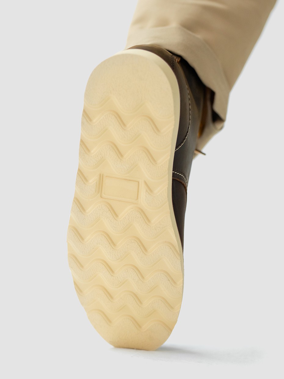 Подошва ботинок, выполненная из резины, обладает отличными противоскользящими свойствами, не промерзает даже в сильный мороз, а также устойчива к агрессивным факторам среды. Подошва не лопнет, не будет скользить и имеет хорошее сцепление с поверхностью.