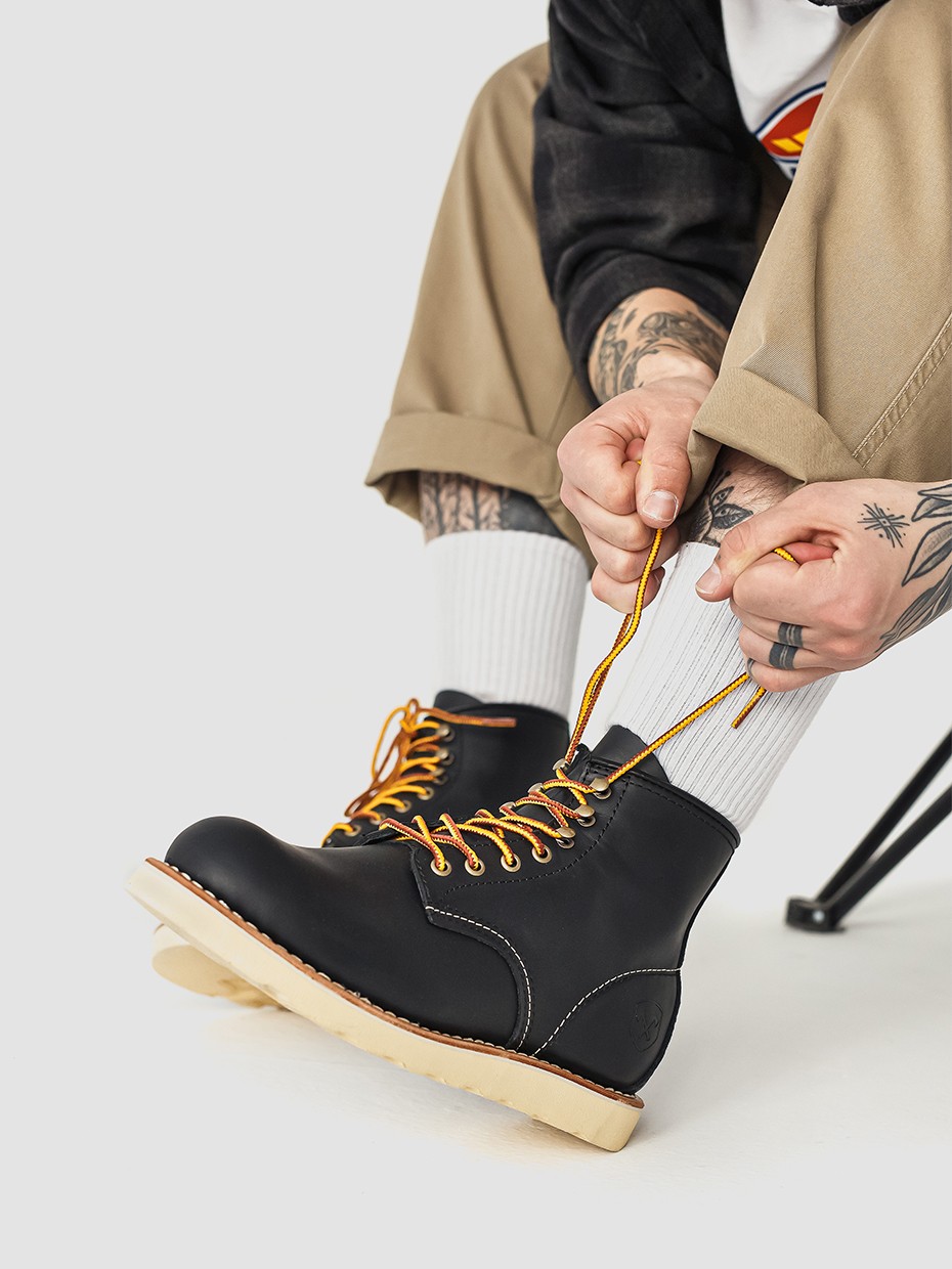 При производстве ботинок используется натуральная бычья кожа импортированная из Америки, устойчива к влаге и долговечна. Толщина кожи 1,8-2мм.