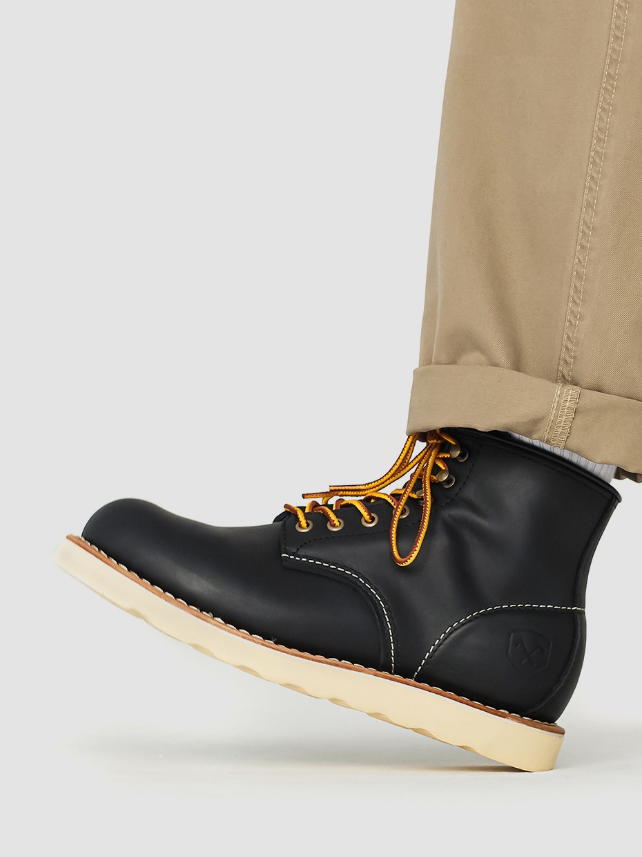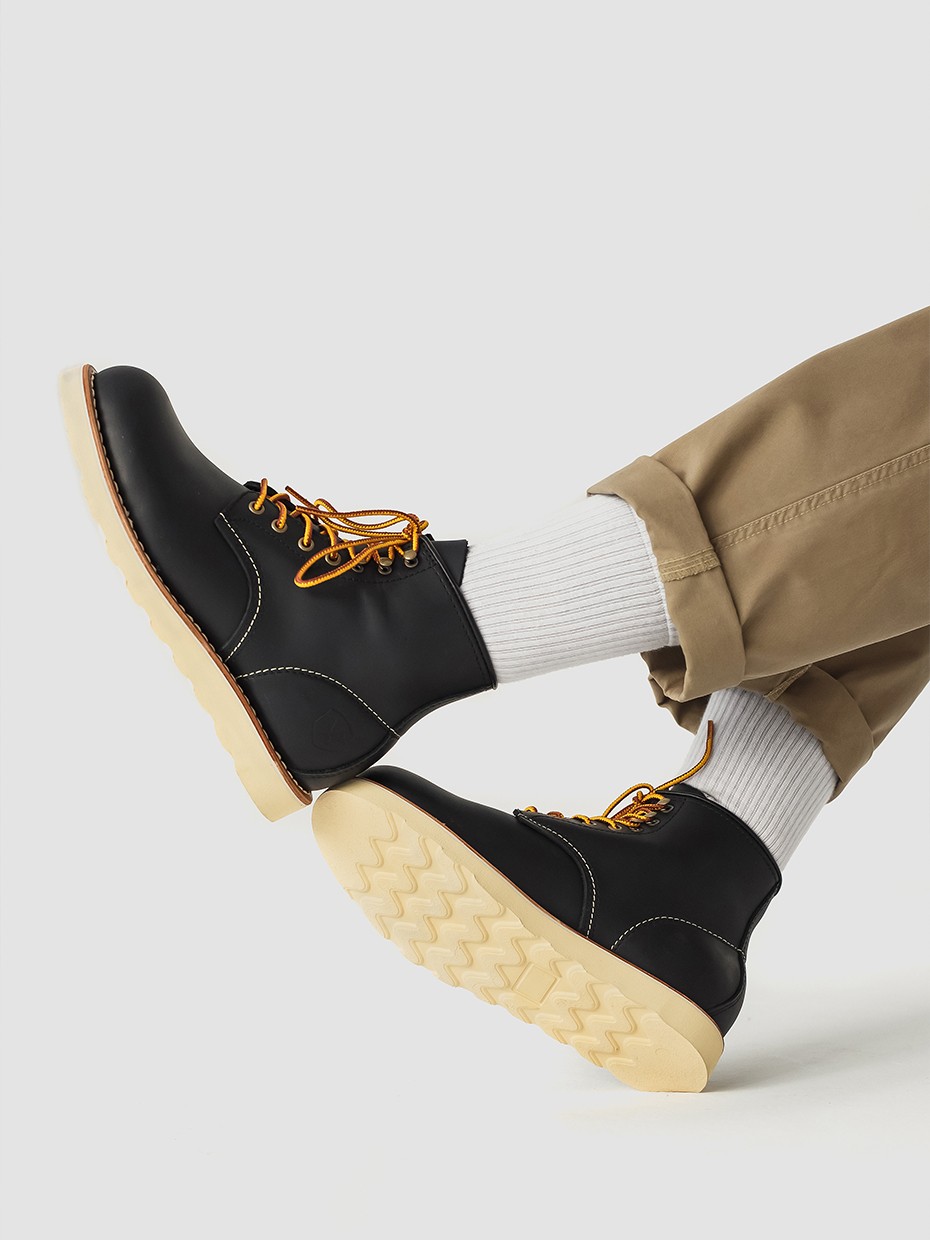 Демисезонные мужские ботинки из натуральной кожи сочетают премиальный стиль, инновационные технологии комфорта и непревзойденное качество. Шнуровка регулирует посадку по ноге, позволяет быстро обуваться, а контрастный рант на ботинках придает образу особую утонченность. Монохромный верх ботинок и практичная акцентная подошва смотрятся стильно и актуально. Подносочная часть и задник дополнительно усилены, за счет чего обувь наделяется повышенной прочностью. Съемные стельки обеспечивают мягкость, комфорт движения и дополнительную амортизацию. В данной модели ботинок используется натуральная бычья кожа импортированная из Америки. Толщина кожи 1,8-2мм. Кожа устойчива к влаге и долговечна. Подошва из резины обеспечивает хорошую теплоизоляцию, прочность и сопротивление холоду. Подошва не лопнет, не будет скользить и имеет хорошее сцепление с поверхностью. Ботинки выполнены методом Goodyear Welt. Верхняя часть сшивается с внутренней подметкой и рантом. Рант крепится к подошве с помощью высоких температур. Благодаря чему подошва абсолютно герметична и долговечна. Это делает обувь прочной и надежной. Невысокий каблук позволяет поддерживать стопу в правильном положении и усиливает стабильность шага. Сбоку ботинки дополняет тиснение с логотипом бренда.
