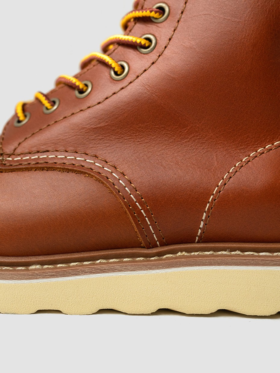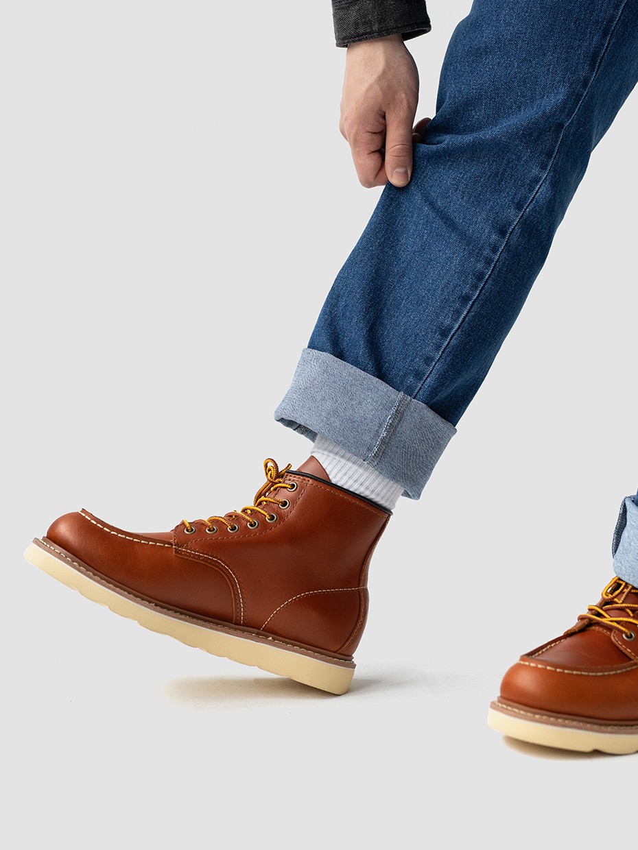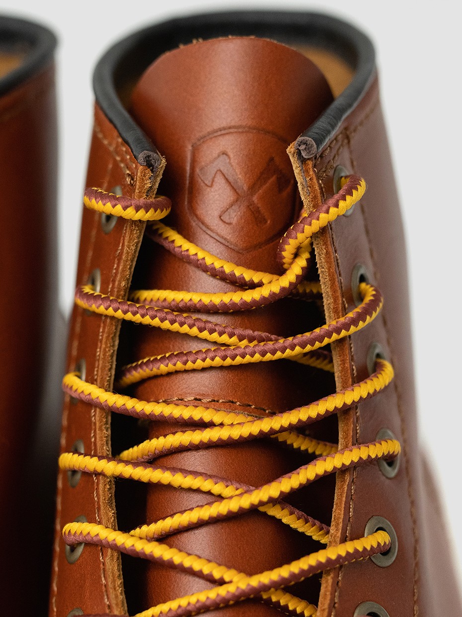 Демисезонные мужские ботинки Lary Moc Toe из натуральной кожи на 7 люверсов для повседневной носки. Демисезонные мужские ботинки из натуральной кожи сочетают премиальный стиль, инновационные технологии комфорта и непревзойденное качество. Шнуровка регулирует посадку по ноге, позволяет быстро обуваться, а контрастный рант на ботинках придает образу особую утонченность. Монохромный верх ботинок и практичная акцентная подошва смотрятся стильно и актуально. Подносочная часть и задник дополнительно усилены, за счет чего обувь наделяется повышенной прочностью. Съемные стельки обеспечивают мягкость, комфорт движения и дополнительную амортизацию. В данной модели ботинок используется натуральная бычья кожа импортированная из Америки. Толщина кожи 1,8-2мм. Кожа устойчива к влаге и долговечна. Подошва из резины обеспечивает хорошую теплоизоляцию, прочность и сопротивление холоду. Подошва не лопнет, не будет скользить и имеет хорошее сцепление с поверхностью. Ботинки выполнены методом Goodyear Welt. Верхняя часть сшивается с внутренней подметкой и рантом. Рант крепится к подошве с помощью высоких температур. Благодаря чему подошва абсолютно герметична и долговечна. Это делает обувь прочной и надежной. Плоская подошва позволяет поддерживать стопу в правильном положении и усиливает стабильность шага. Сбоку ботинки дополняет тиснение с логотипом бренда.