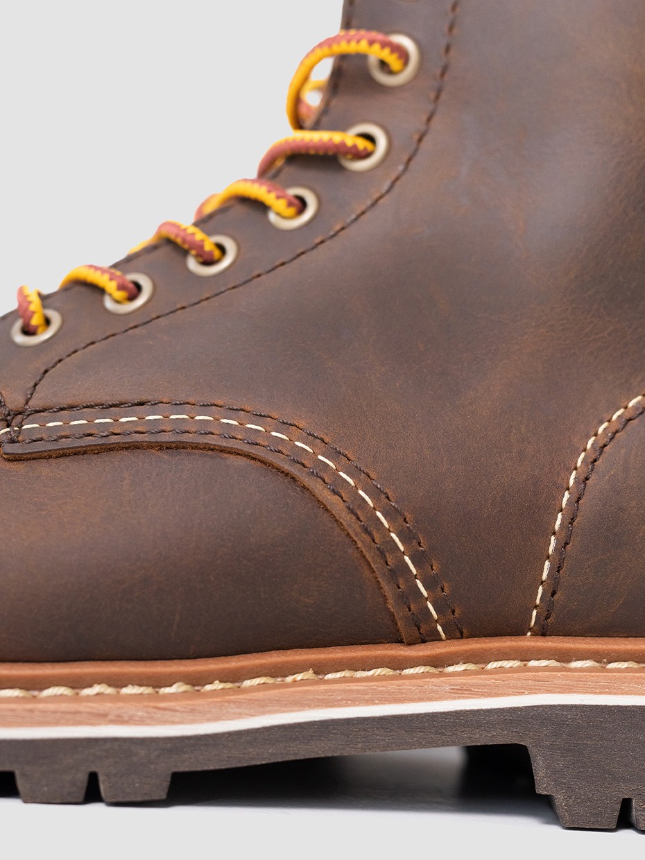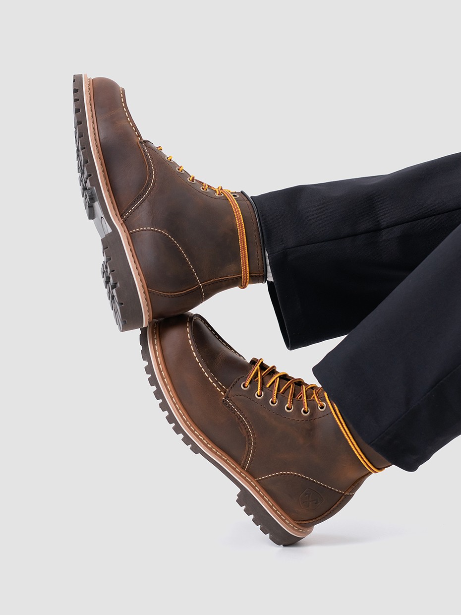 При производстве ботинок используется натуральная бычья кожа импортированная из Америки, устойчива к влаге и долговечна. Толщина кожи 1,8-2мм.