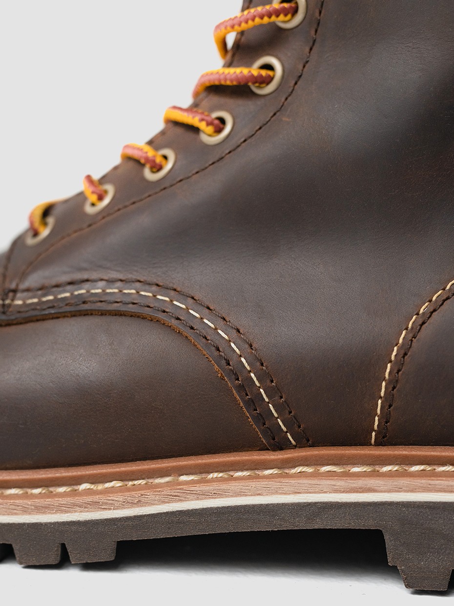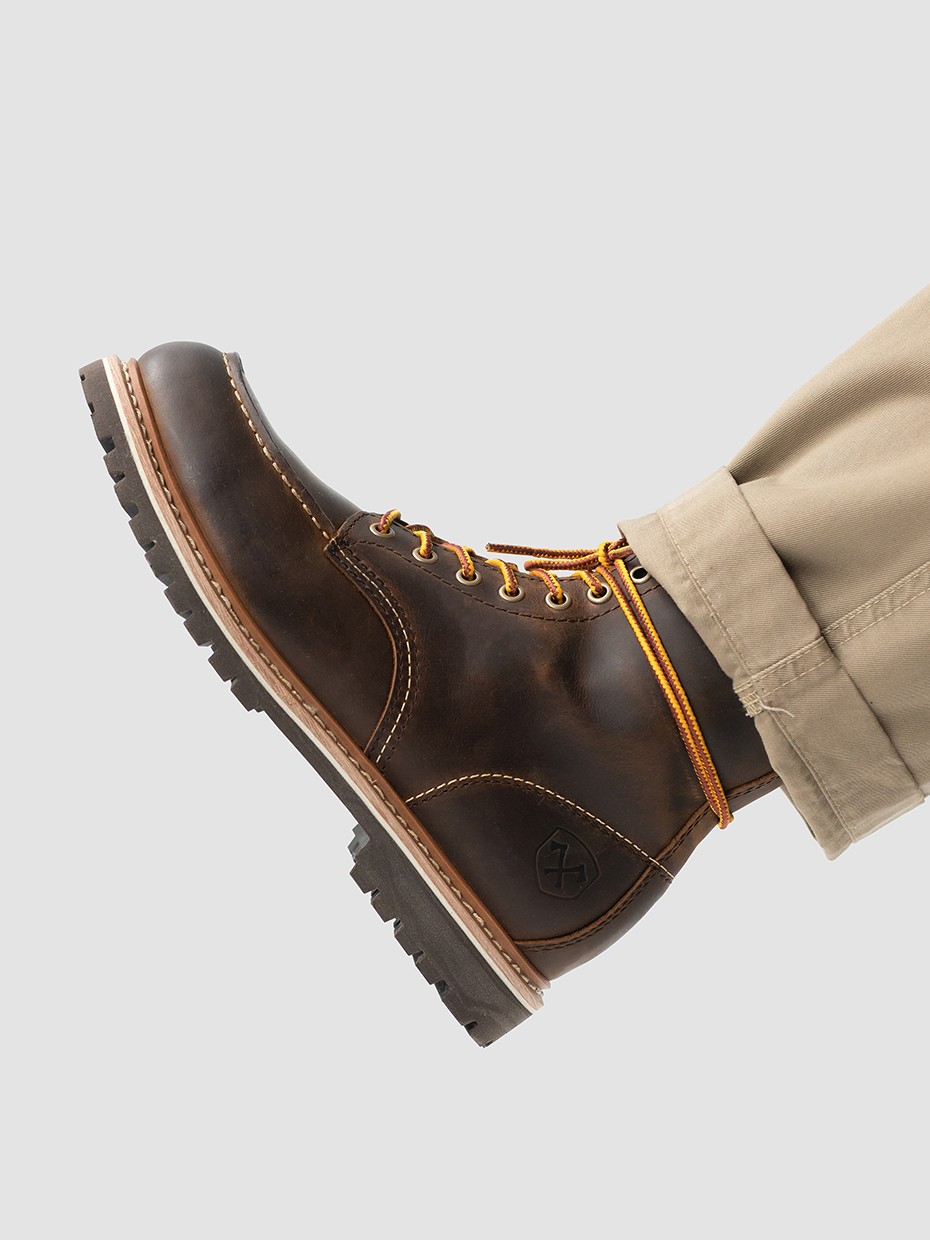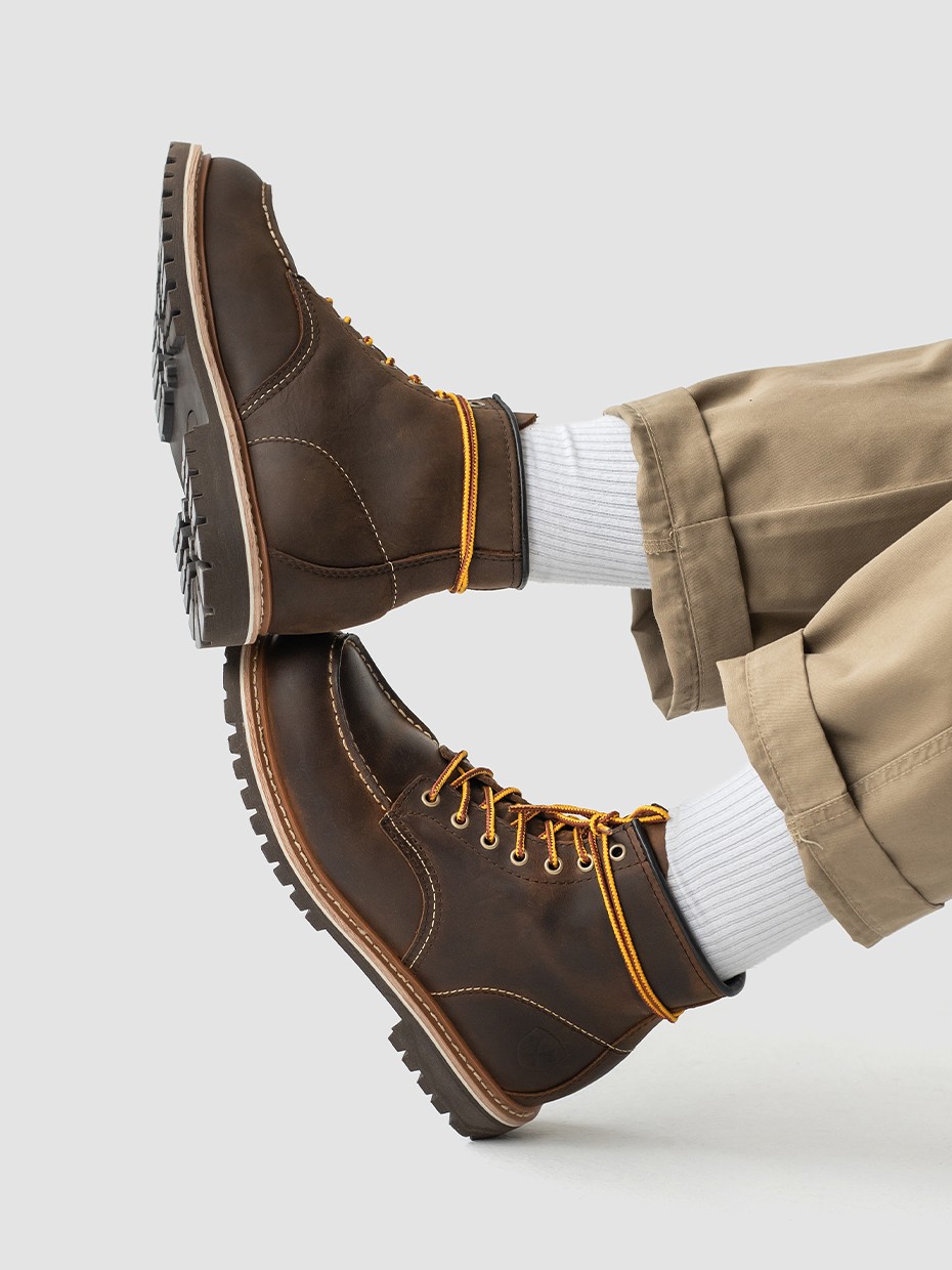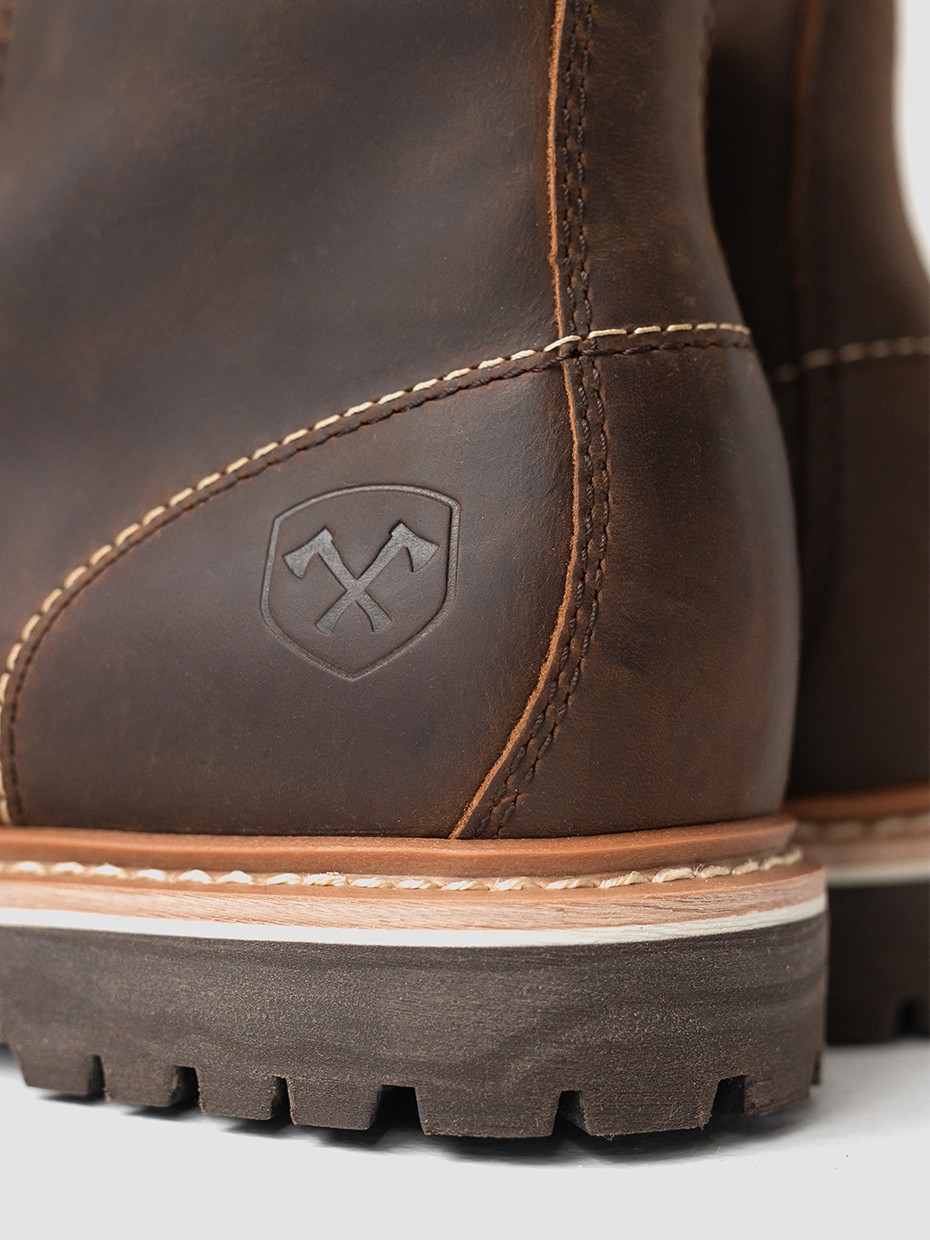 При производстве ботинок используется натуральная бычья кожа импортированная из Америки, устойчива к влаге и долговечна. Толщина кожи 1,8-2мм.