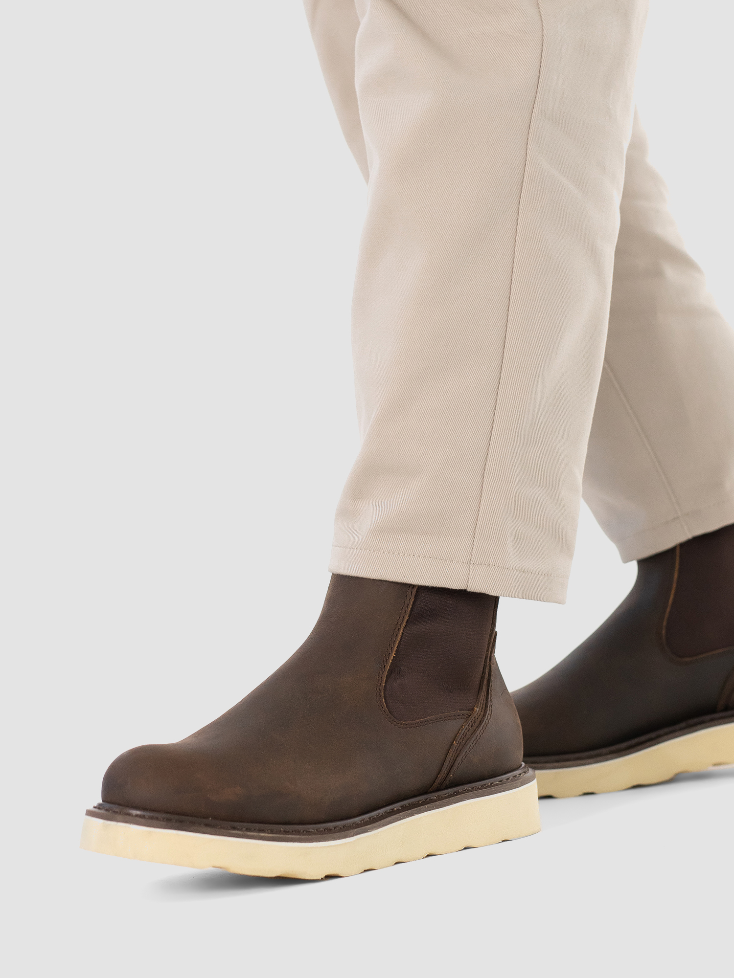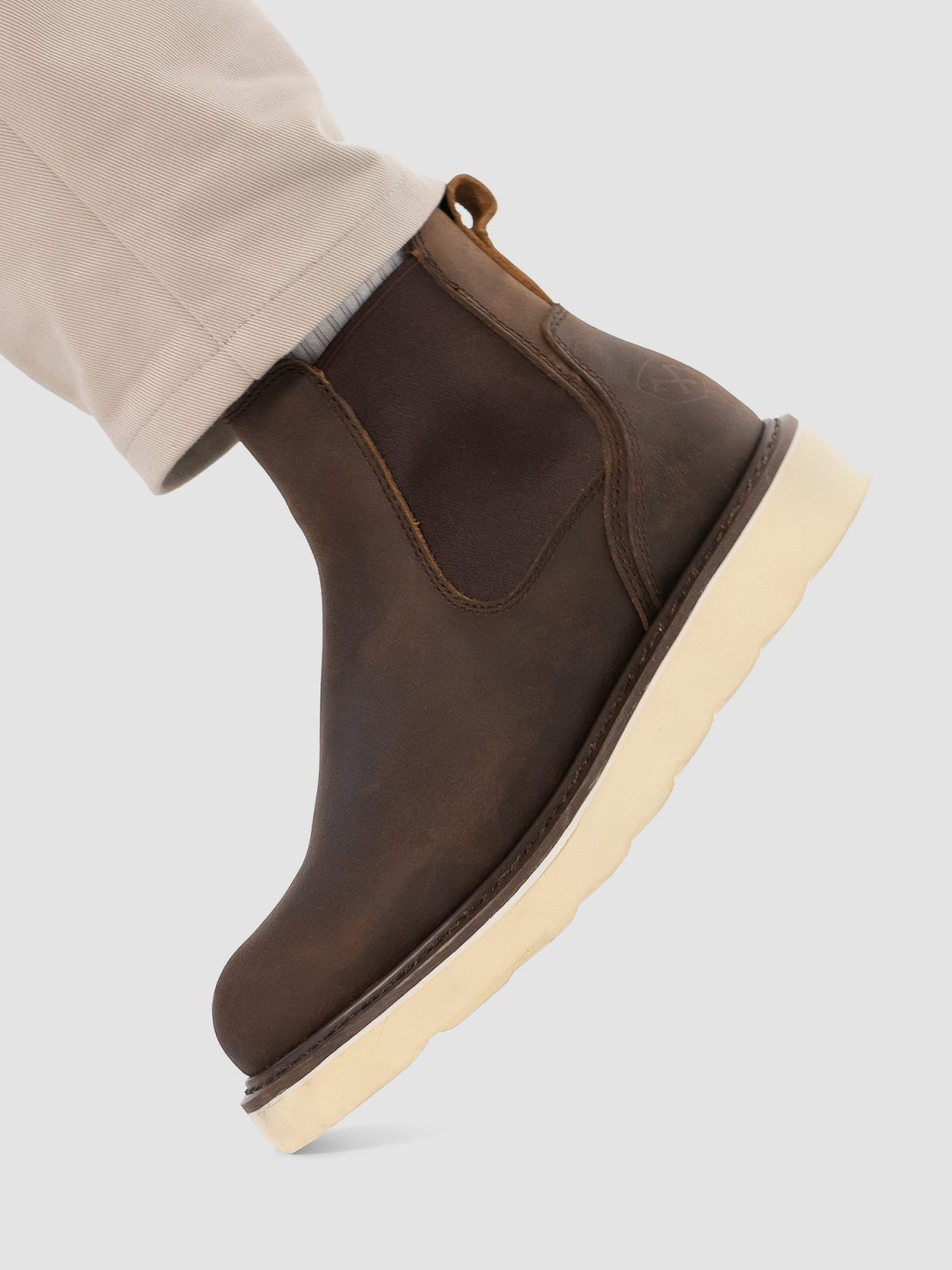 При производстве ботинок используется натуральная бычья кожа импортированная из Америки, которая устойчива к влаге и долговечна. Толщина кожи 1,8-2мм.