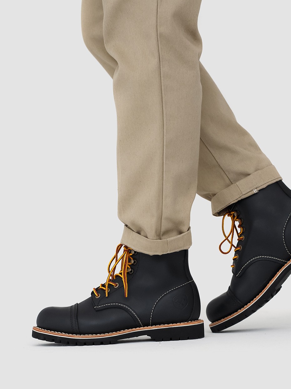При производстве ботинок используется натуральная бычья кожа импортированная из Америки, устойчива к влаге и долговечна. Толщина кожи 1,8-2мм.