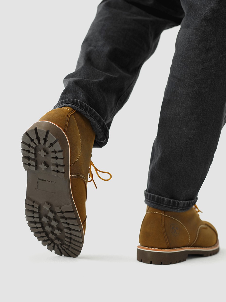Подошва ботинок, выполненная из резины, обладает отличными противоскользящими свойствами, не промерзает, а также устойчива к агрессивным факторам среды. Подошва не лопнет, не будет скользить и имеет хорошее сцепление с поверхностью.