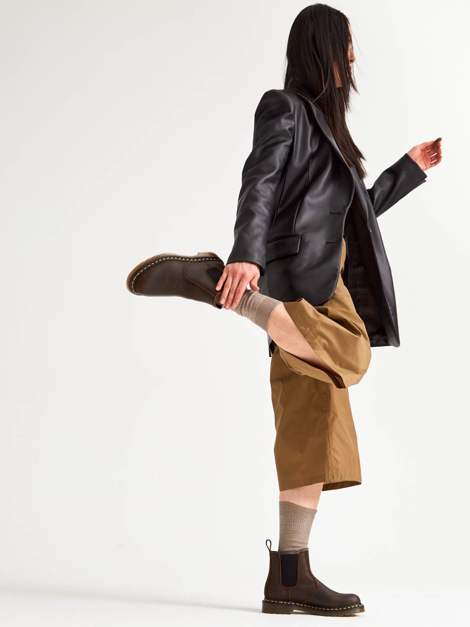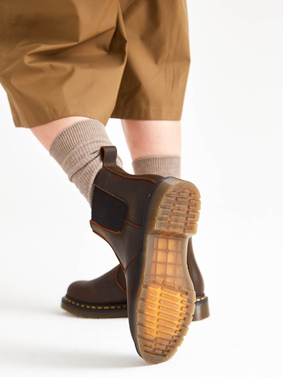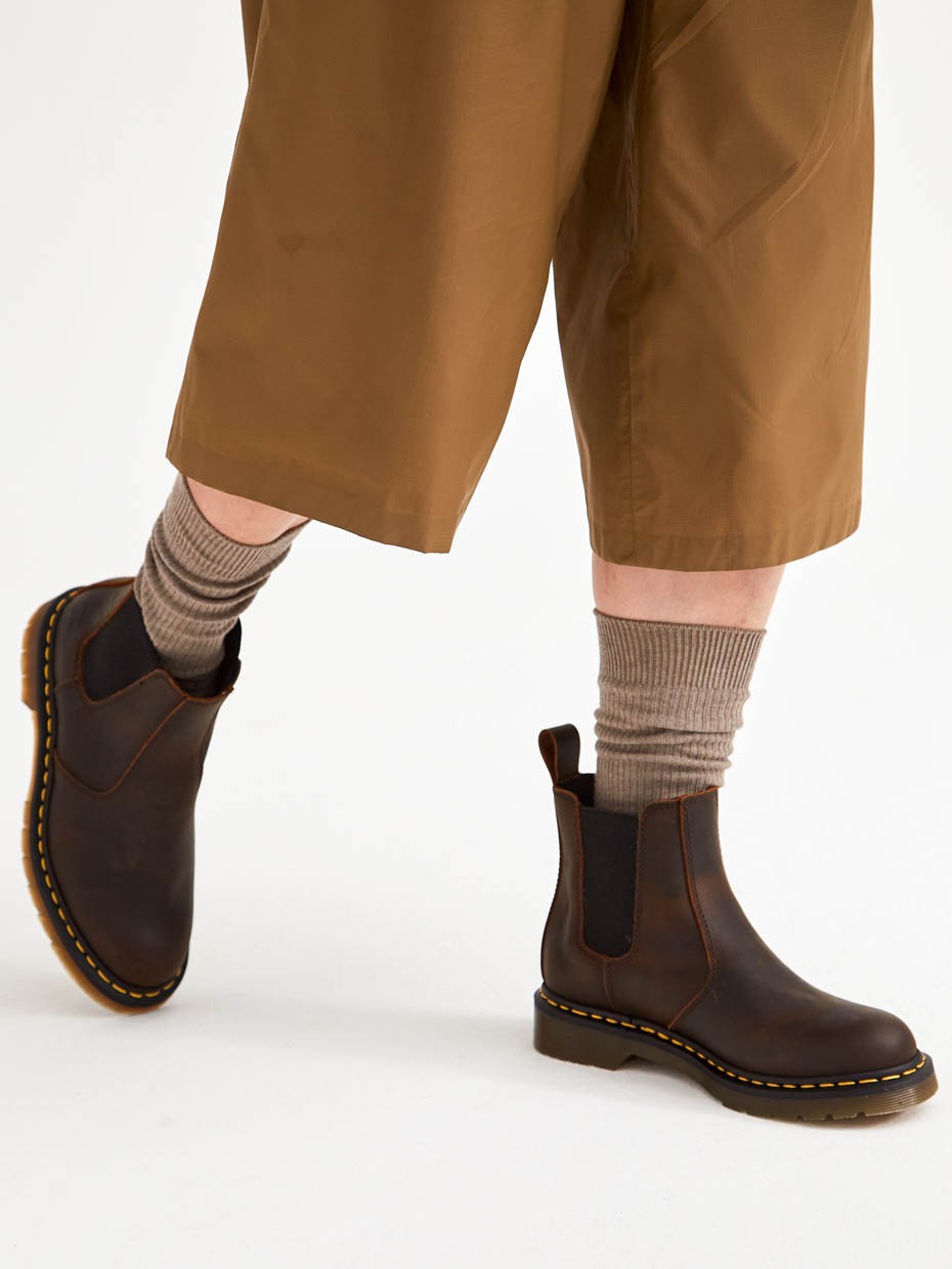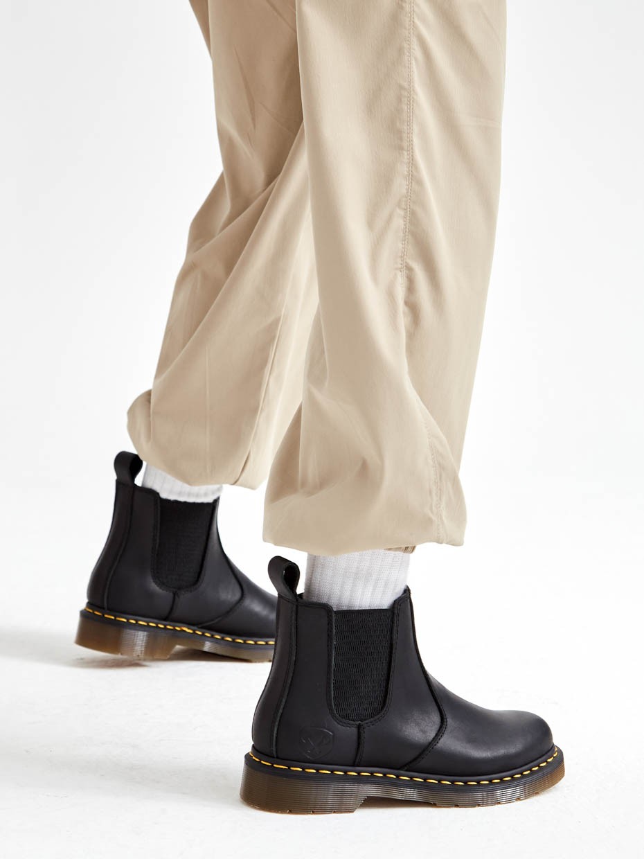 Демисезонные женские ботинки Chelsea из натуральной кожи. Эластичные боковые вставки удерживают ботинки на ногах, а петельки помогают обуваться одним движением. Подносочная часть и задник дополнительно усилены, за счет чего обувь наделяется повышенной прочностью. Съемные стельки обеспечивают мягкость, комфорт движения и дополнительную амортизацию. В данной модели ботинок используется натуральная бычья кожа. Окраска производится процессом водного окрашивания в красильных ваннах с сохранением натурального рисунка лицевой стороны. Толщина кожи 1,8-2мм. Кожа устойчива к влаге и долговечна. Подошва полуботинок выполнена из ПВХ обеспечивает хорошую теплоизоляцию, прочность и сопротивление холоду. Подошва имеет хорошее сцепление с поверхностью. В носовой части ботинка между подошвой и внутренней подметкой расположена вставка EVA, которая способствует уменьшению нагрузки на стопу. Ботинки выполнены методом Goodyear Welt. Верхняя часть сшивается с внутренняя подметкой и рантом. Рант крепится к подошве с помощью высоких температур. Благодаря чему подошва абсолютно герметична и долговечна. Это делает обувь прочной и надежной. Невысокий каблук позволяет поддерживать стопу в правильном положении и усиливает стабильность шага.