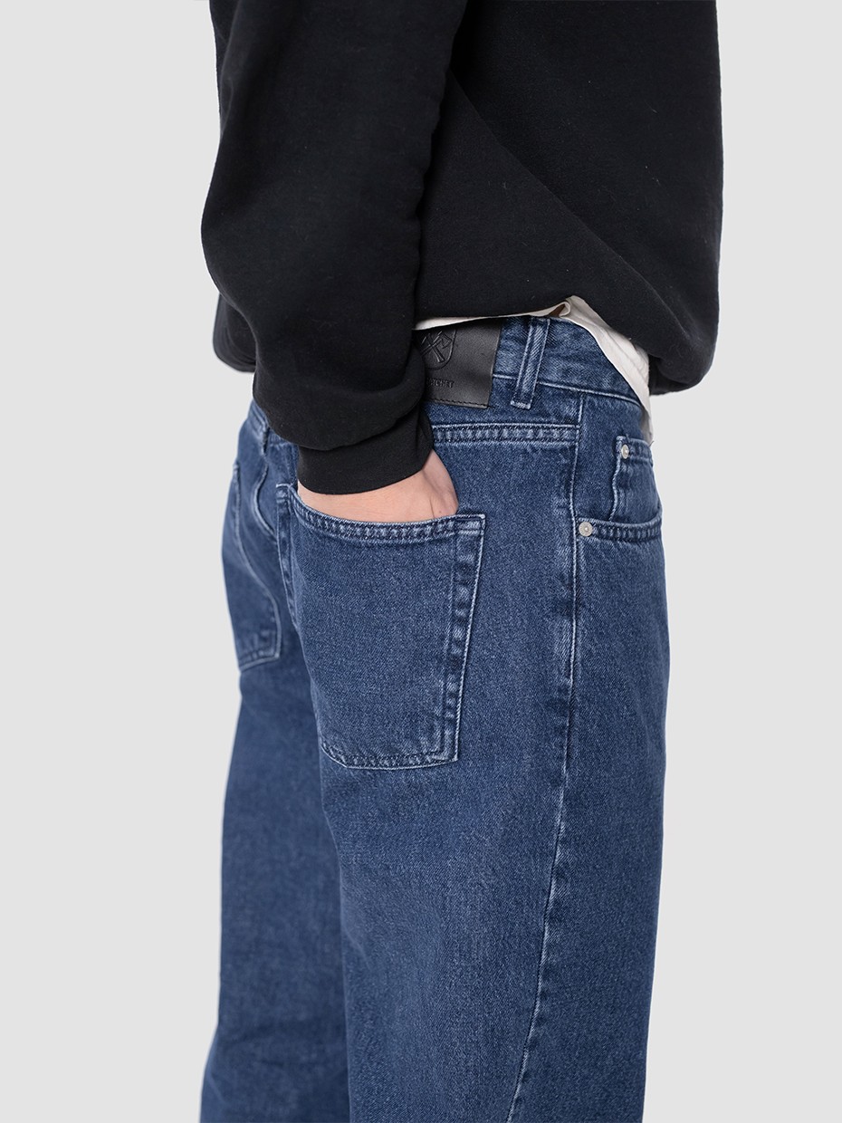 Мужские джинсы Aldan Carrot с зауженными книзу штанинами и стандартной посадкой. Изготовлены из премиального прочного денима, что делает модель комфортной и позволяет изделию сохранять нужную форму. Плотность денима — 13 унции на кв. ярд. Застежка на молнии производства фирмы YKK и брендированной пуговице. Изделие дополняют два задних накладных кармана, два глубоких передних с одним маленьким внутренним карманом. Передние карманы усилены брендированными заклепками. На поясе штанов имеются шлёвки для ремня и жакрон черного цвета с брендированным тиснением. Темные оттенки денима могут отдавать краску первые 3-4 стирки. Это нормальный процесс, так как пигмент не всегда до конца впитывается в ткань. Рекомендуется провести 1 цикл стирки изделия согласно инструкции перед первой ноской.