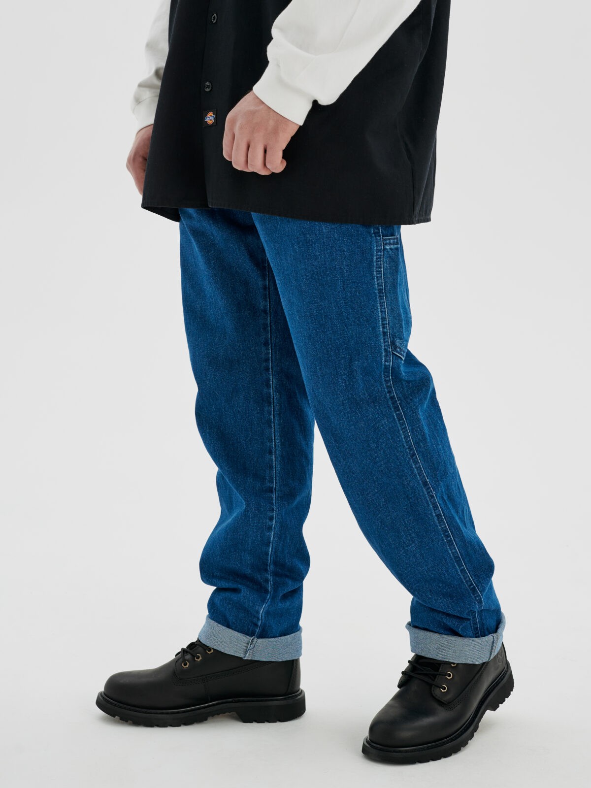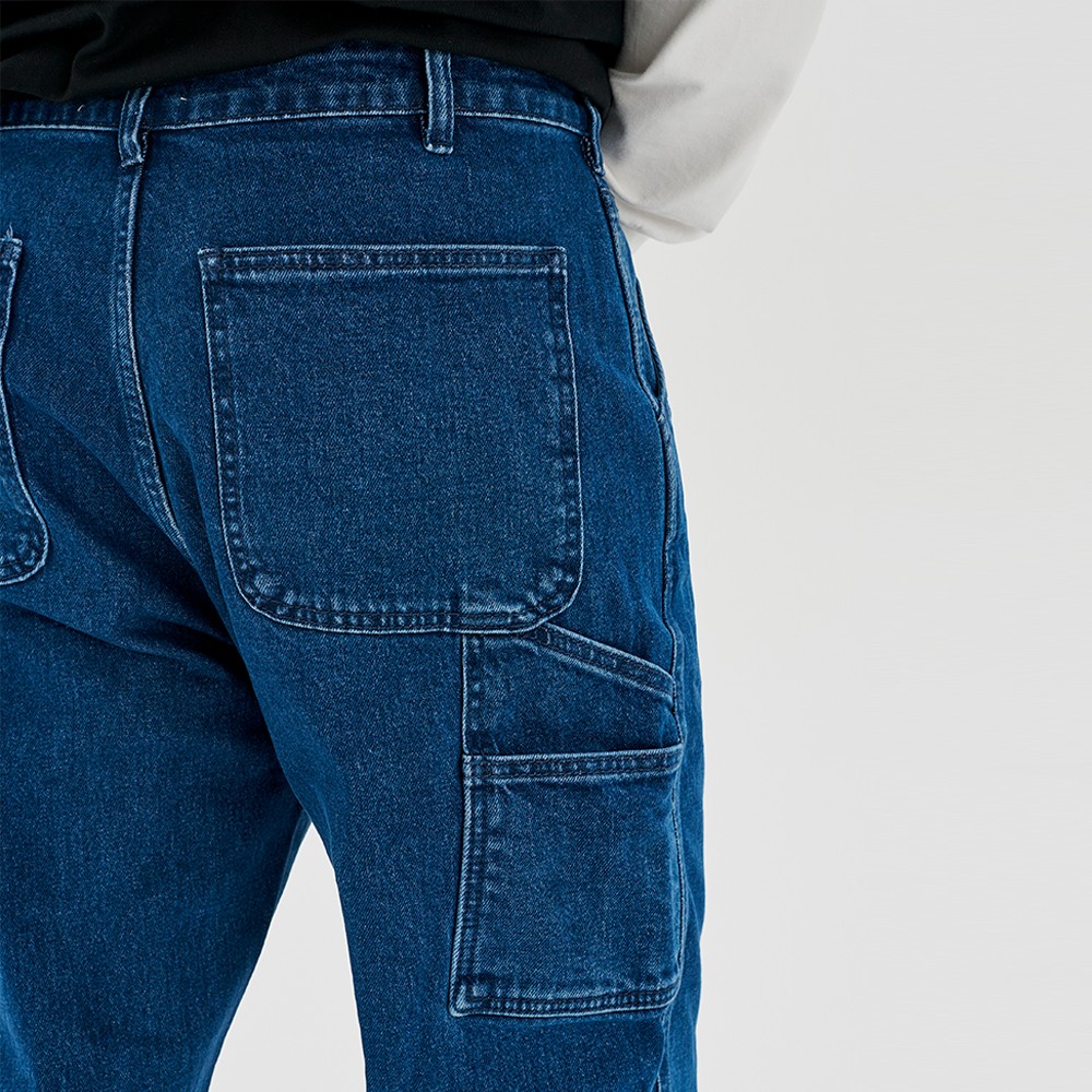 Мужские джинсы Bikin Cargo cо стандартной посадкой, модель штанов прямого кроя слегка зауженных книзу. Изготовлены из премиального прочного денима с добавлением эластана, что делает модель комфортной для носки без сковывания движений и позволяет изделию сохранять нужную форму. Плотность денима — 13 унции на кв. ярд. Застежка на молнии производства фирмы YKK и брендированной пуговице. Изделие дополняют два задних накладных кармана, два глубоких передних с одним маленьким внутренним карманом. Карманы для “инструментов” и петля для молотка. Передние карманы усилены брендированными заклепками. На поясе штанов имеются шлёвки для ремня и жакрон черного цвета с брендированным тиснением. Темные оттенки денима могут отдавать краску первые 3-4 стирки. Это нормальный процесс, так как пигмент не всегда до конца впитывается в ткань. Рекомендуется провести 1 цикл стирки изделия согласно инструкции перед первой ноской.