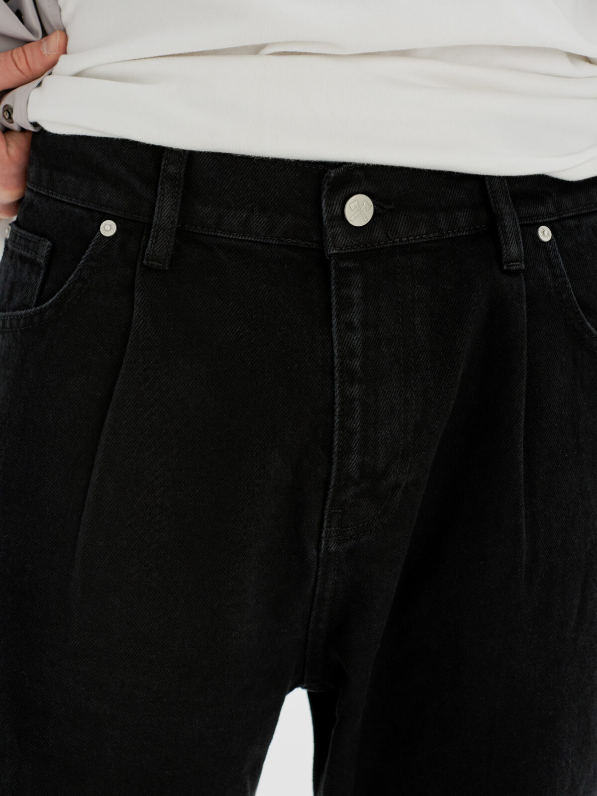 Мужские джинсы Oshten Balloon cо стандартной посадкой, защипами в области пояса и объемными, слегка зауженными и укороченными книзу штанинами. Изготовлены из премиального прочного денима, что делает модель комфортной и позволяет изделию сохранять нужную форму. Плотность денима — 13 унций на кв. ярд. Застежка на молнии производства фирмы YKK и брендированной пуговице. Изделие дополняют два задних накладных кармана, два глубоких передних с одним маленьким внутренним карманом. Передние карманы усилены брендированными заклепками. На поясе штанов имеются шлёвки для ремня и жакрон черного цвета с брендированным тиснением. Темные оттенки денима могут отдавать краску первые 3-4 стирки. Это нормальный процесс, так как пигмент не всегда до конца впитывается в ткань. Рекомендуется провести 1 цикл стирки изделия согласно инструкции перед первой ноской.