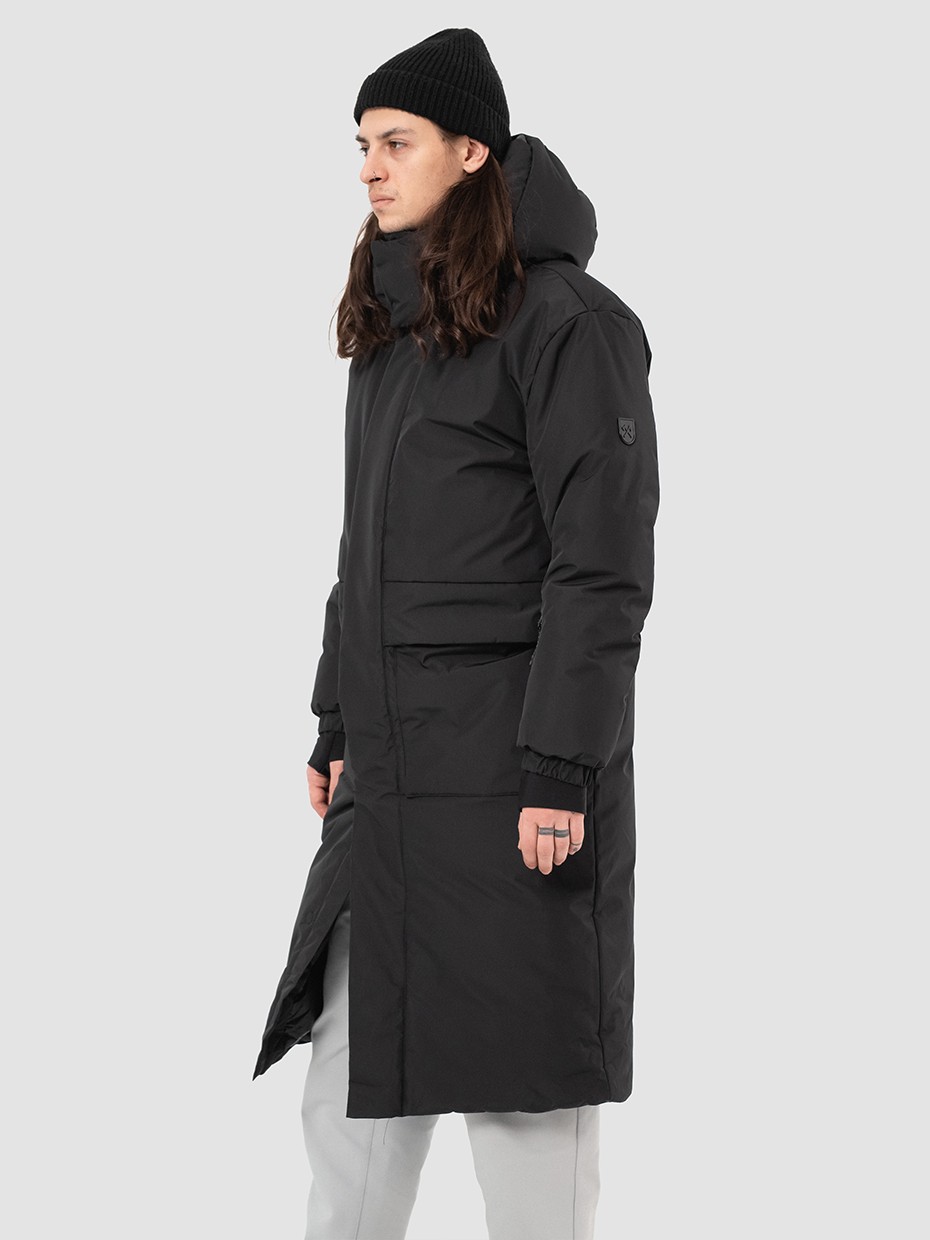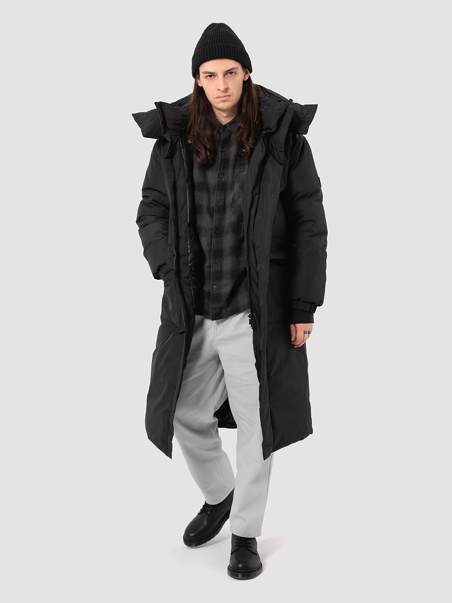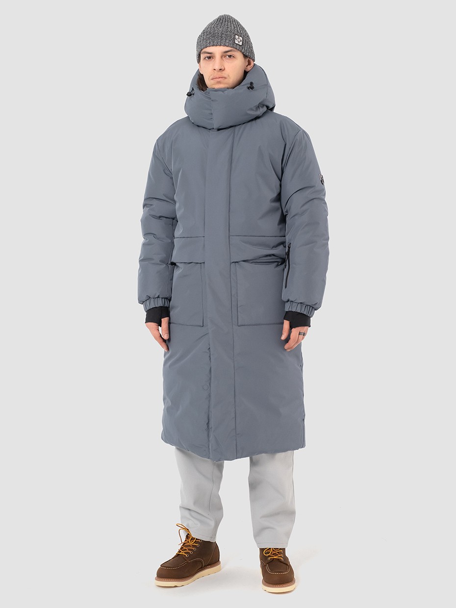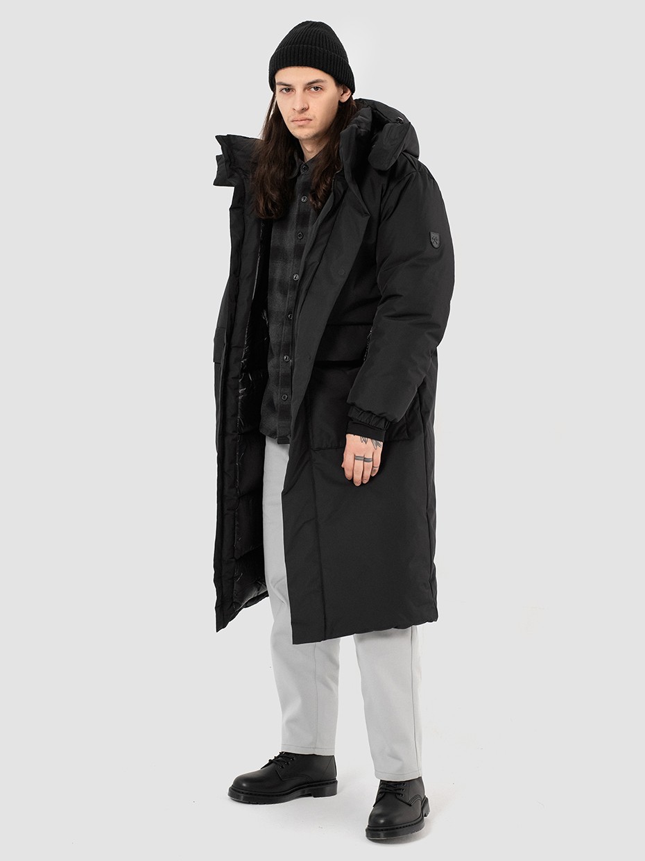 Зимний длинный мужской пуховик Akkem прямого кроя. Удлиненная куртка с центральной застежкой на двухзамковой молнии производства фирмы YKK с ветрозащитной планкой на магнитах. Длинная мужская парка отличный вариант верхней одежды для мужчины. Объемный съемный капюшон регулируется эластичным шнуром с фиксаторами. Высокий объемный воротник надежно защищает от ветра и осадков. Карман на рукаве для карт. Внутренние стропы, для удобства носки куртки за плечами в помещениях. Рукава на резинке и внутренние трикотажные манжеты с прорезями под большие пальцы обеспечивают плотное прилегает к руке. Глубокие накладные карманы закрыты клапаном на магните. Два внутренних нагрудных кармана на молнии. Металлический логотип на левом плече дополняют образ. Длинная куртка выполнена из ткани мембрана – качественная курточная ткань с мембранной отделкой с водоупорностью до 5000 мм и паропроницаемостью до 5000 г/м2/24 часа. Ткани с такой обработкой надежно защищают от воды и снега.