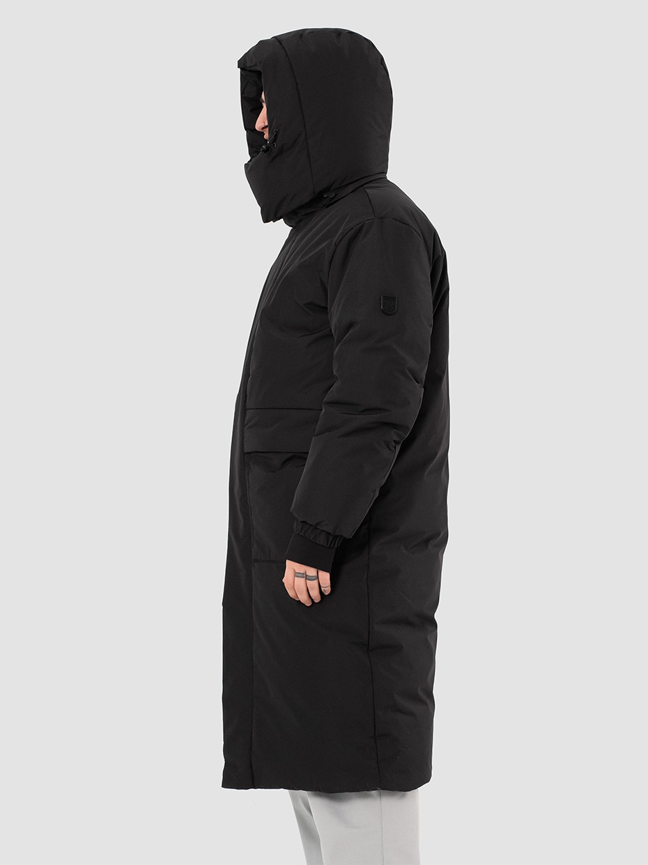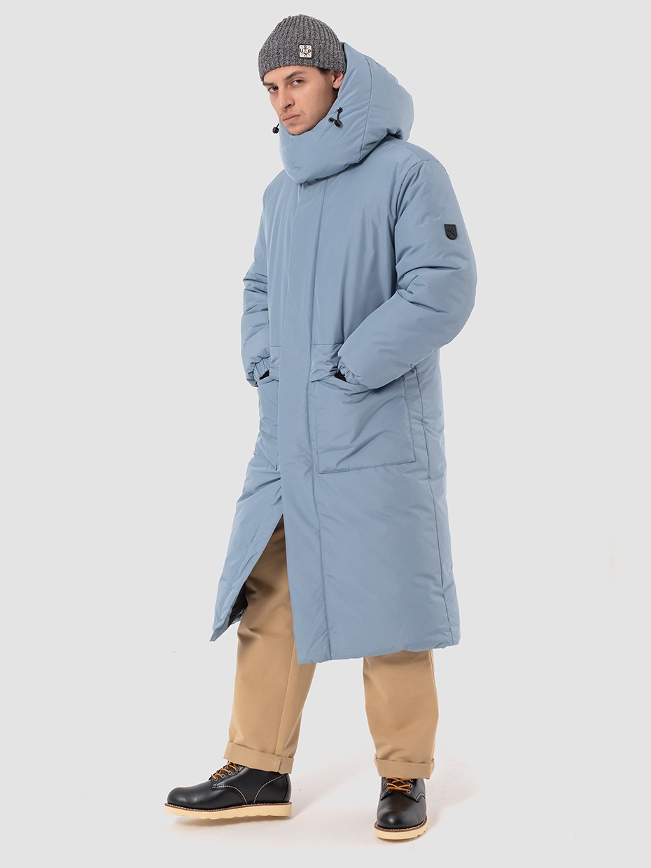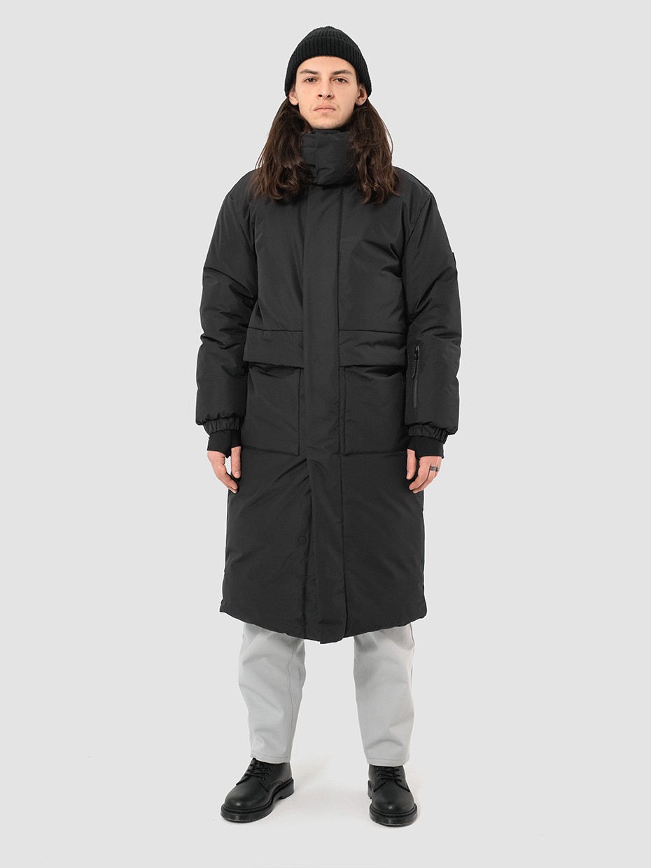 Зимний длинный мужской пуховик Akkem прямого кроя. Удлиненная куртка с центральной застежкой на двухзамковой молнии производства фирмы YKK с ветрозащитной планкой на магнитах. Длинная мужская парка отличный вариант верхней одежды для мужчины. Объемный съемный капюшон регулируется эластичным шнуром с фиксаторами. Высокий объемный воротник надежно защищает от ветра и осадков. Карман на рукаве для карт. Внутренние стропы, для удобства носки куртки за плечами в помещениях. Рукава на резинке и внутренние трикотажные манжеты с прорезями под большие пальцы обеспечивают плотное прилегает к руке. Глубокие накладные карманы закрыты клапаном на магните. Два внутренних нагрудных кармана на молнии. Металлический логотип на левом плече дополняют образ. Длинная куртка выполнена из ткани мембрана – качественная курточная ткань с мембранной отделкой с водоупорностью до 5000 мм и паропроницаемостью до 5000 г/м2/24 часа. Ткани с такой обработкой надежно защищают от воды и снега.