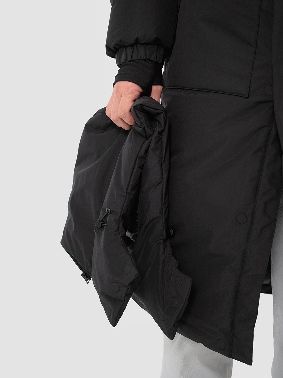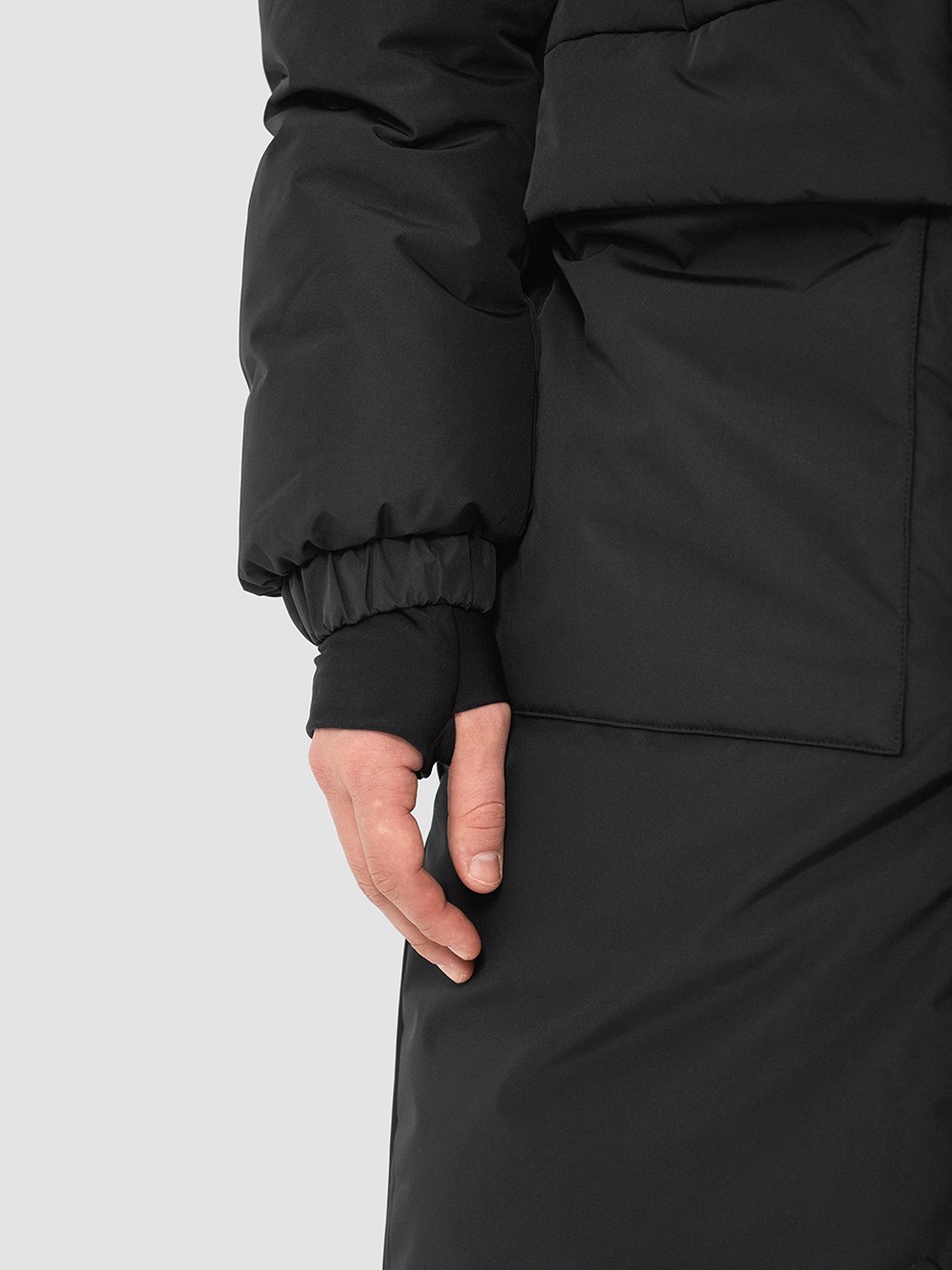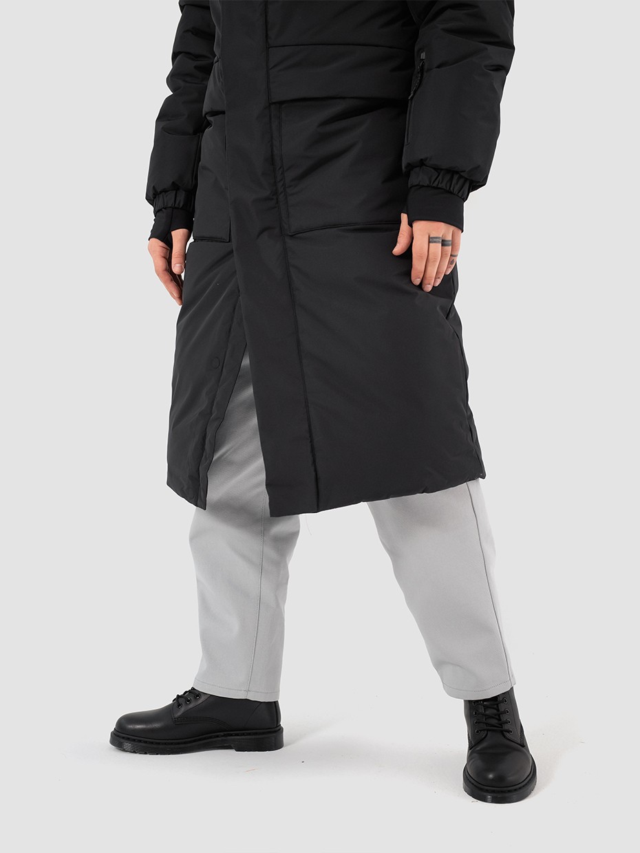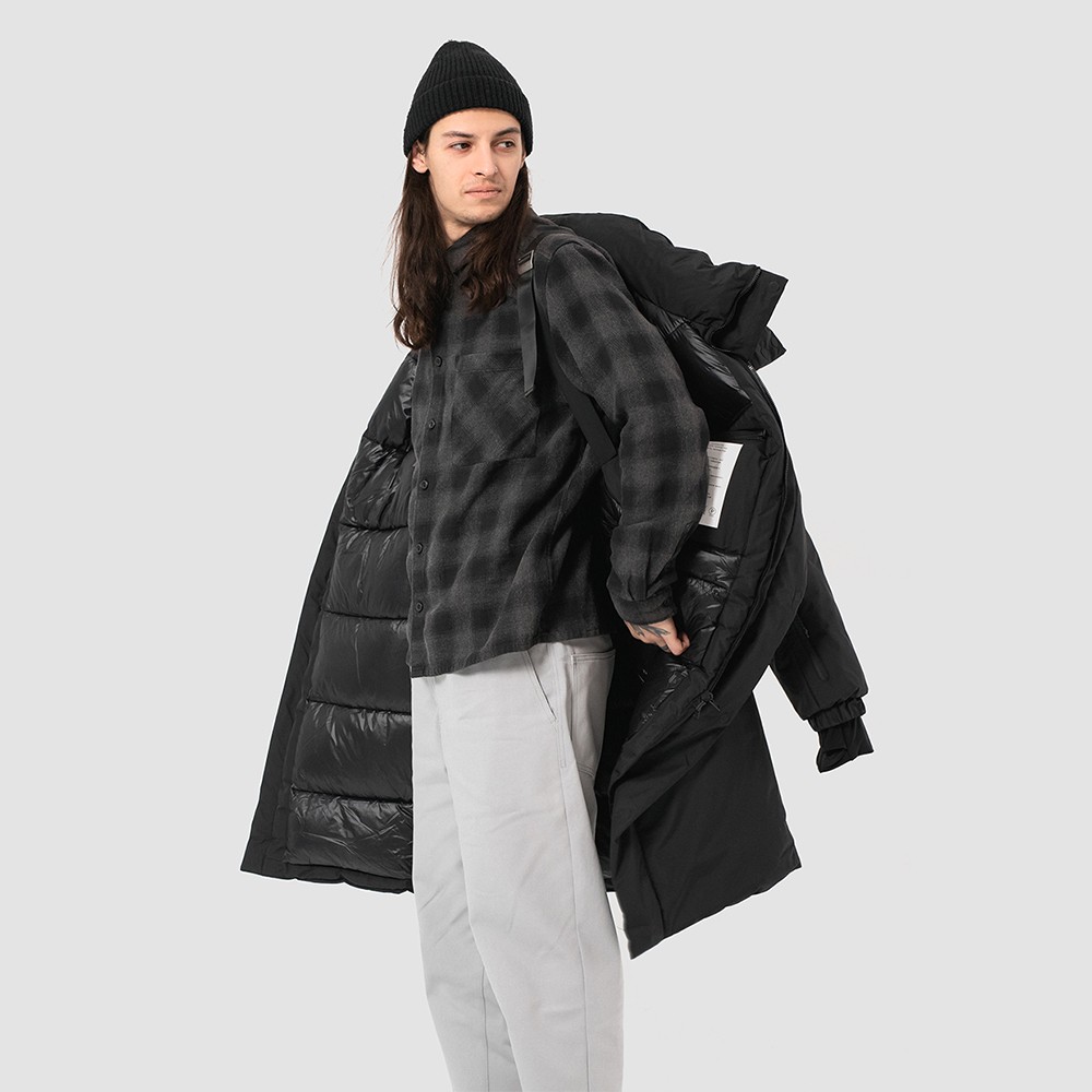 Зимний длинный мужской пуховик Akkem прямого кроя. Удлиненная куртка с центральной застежкой на двухзамковой молнии производства фирмы YKK с ветрозащитной планкой на магнитах. Длинная мужская парка отличный вариант верхней одежды для мужчины. Объемный съемный капюшон регулируется эластичным шнуром с фиксаторами. Высокий объемный воротник надежно защищает от ветра и осадков. Карман на рукаве для карт. Внутренние стропы, для удобства носки куртки за плечами в помещениях. Рукава на резинке и внутренние трикотажные манжеты с прорезями под большие пальцы обеспечивают плотное прилегает к руке. Глубокие накладные карманы закрыты клапаном на магните. Два внутренних нагрудных кармана на молнии. Металлический логотип на левом плече дополняют образ. Длинная куртка выполнена из ткани мембрана – качественная курточная ткань с мембранной отделкой с водоупорностью до 5000 мм и паропроницаемостью до 5000 г/м2/24 часа. Ткани с такой обработкой надежно защищают от воды и снега.