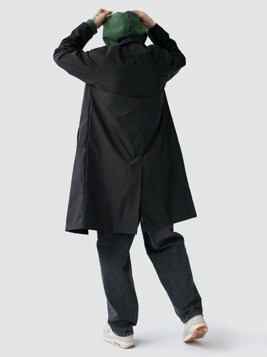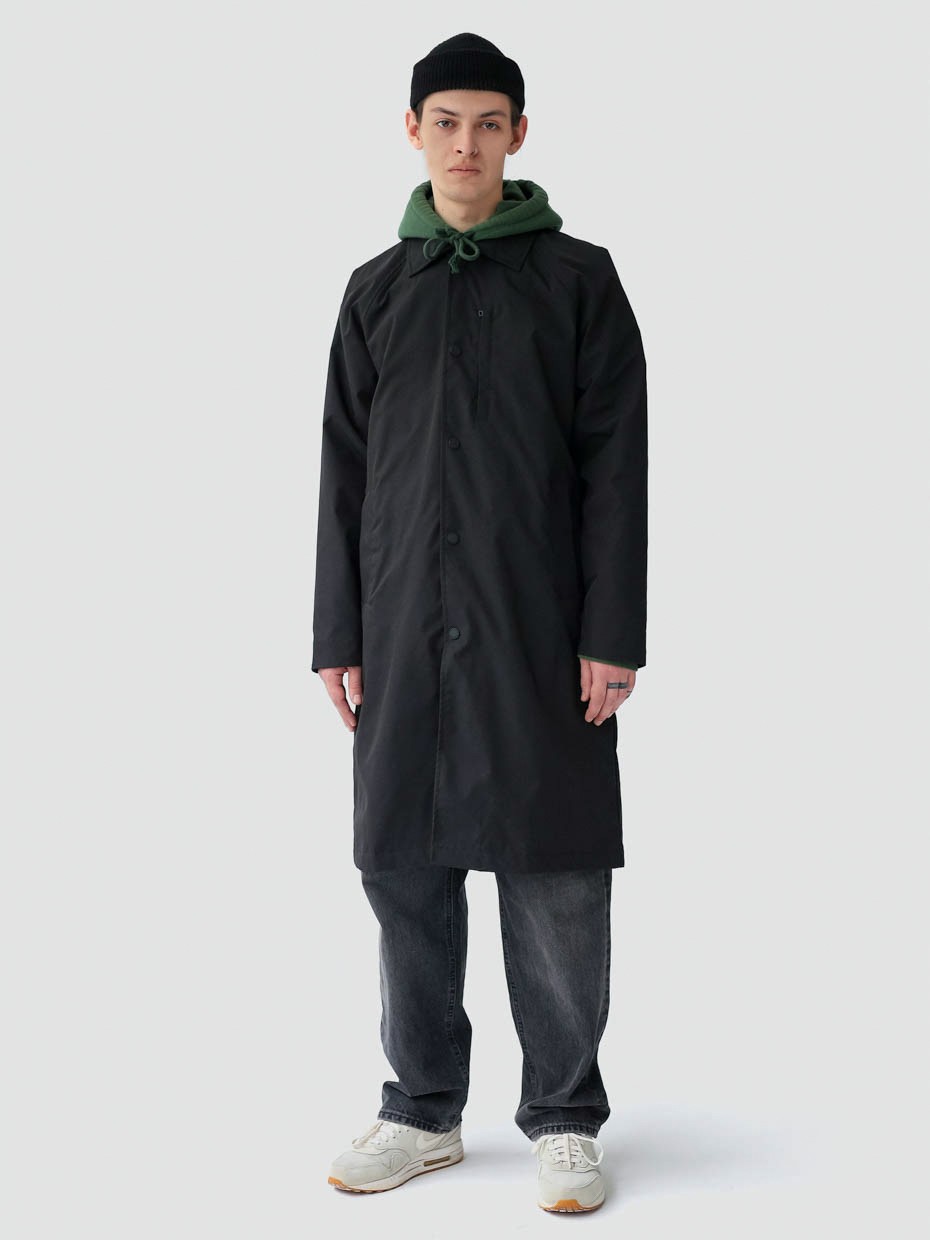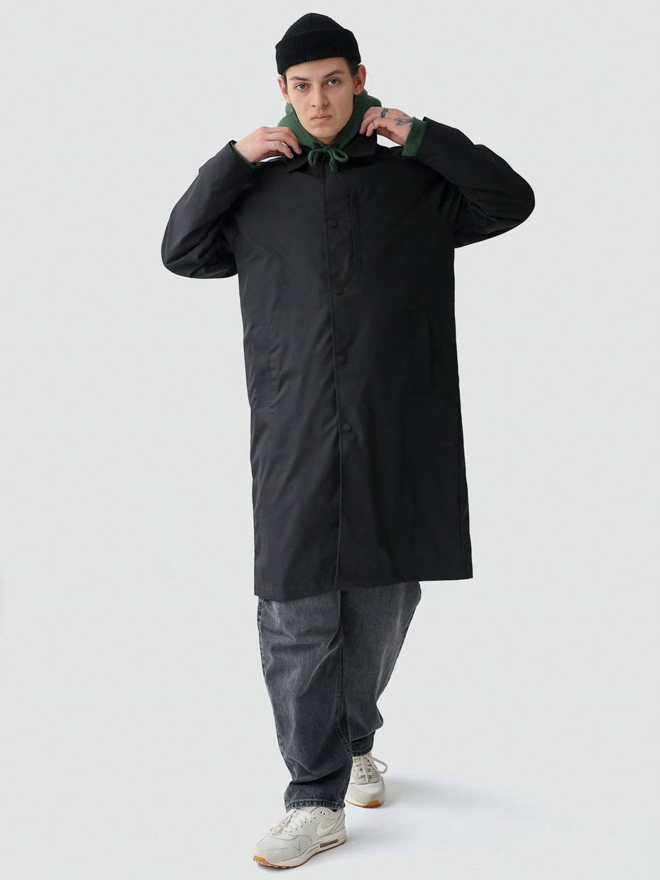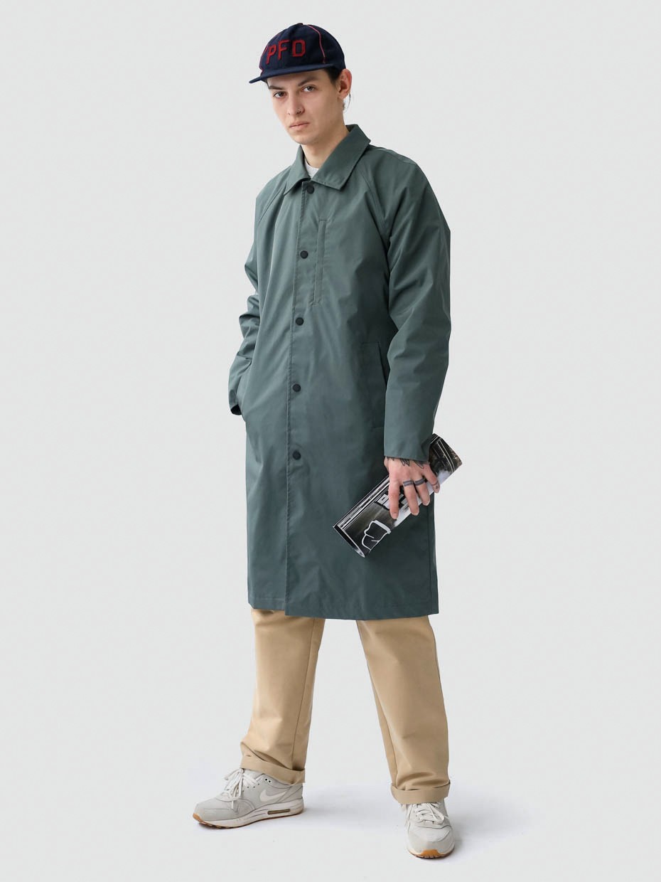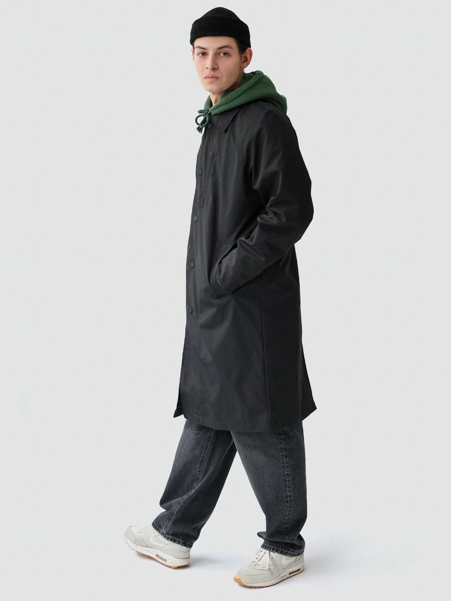 Длинный плащ Carlos свободного кроя. Легкий плащ выполнен из мягкой курточной ткани с WR пропиткой. Рукав имеет конструкцию реглан. Классический отложной воротник с магнитной застежкой, который, в случае прохладного ветра, можно поднять и застегнуть. Модель имеет два боковых врезных кармана, один нагрудный на молнии и два внутренних. Шлица сзади добавляет удобства при ходьбе и не сковывает шаг. Плащ застегивается на брендированные кнопки с эффектом “софт тач”.
