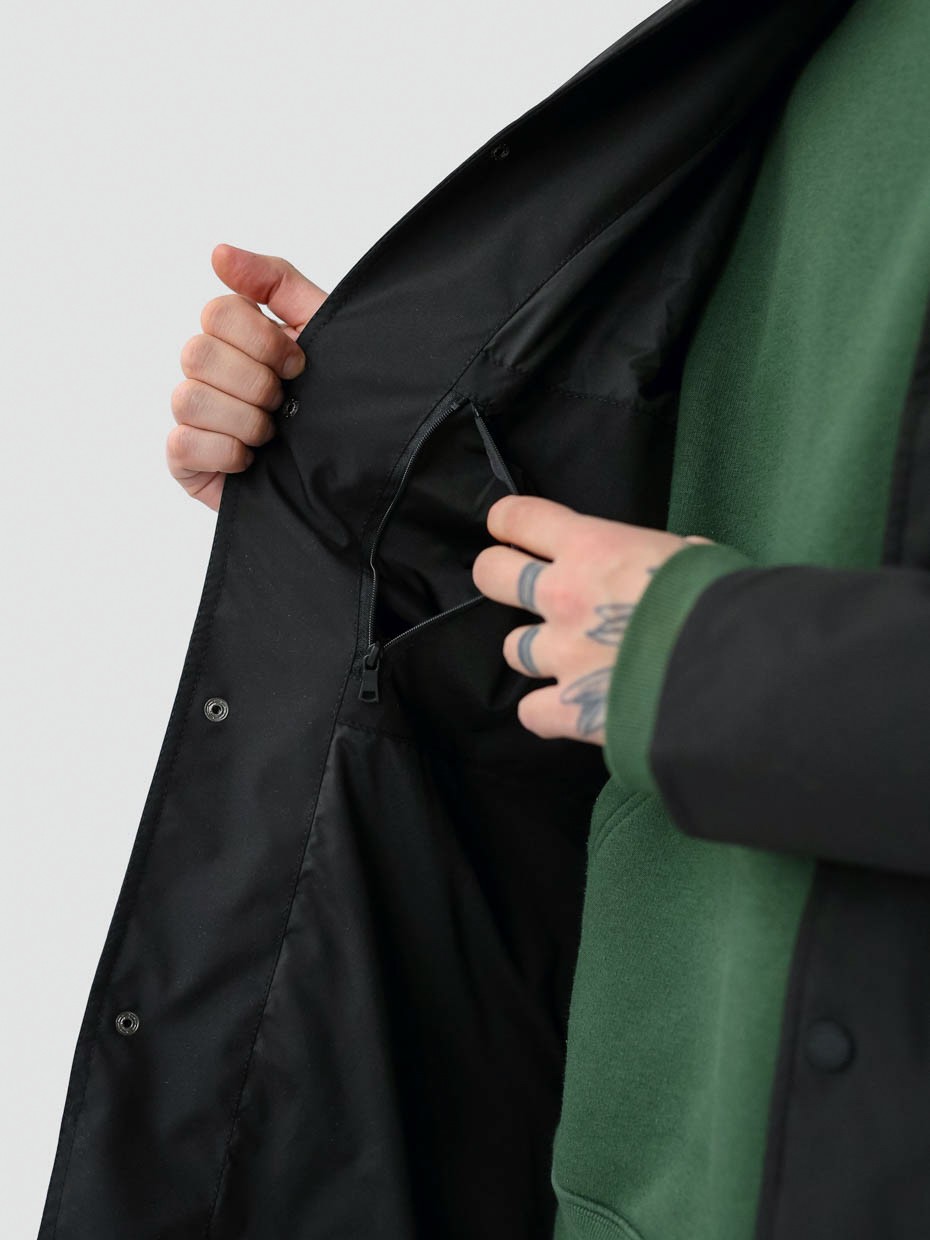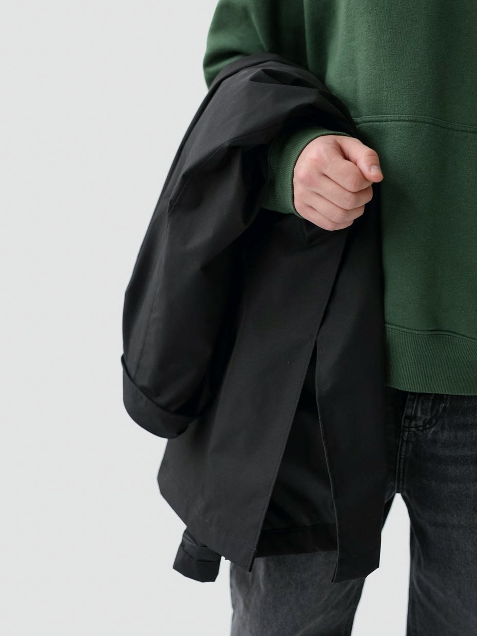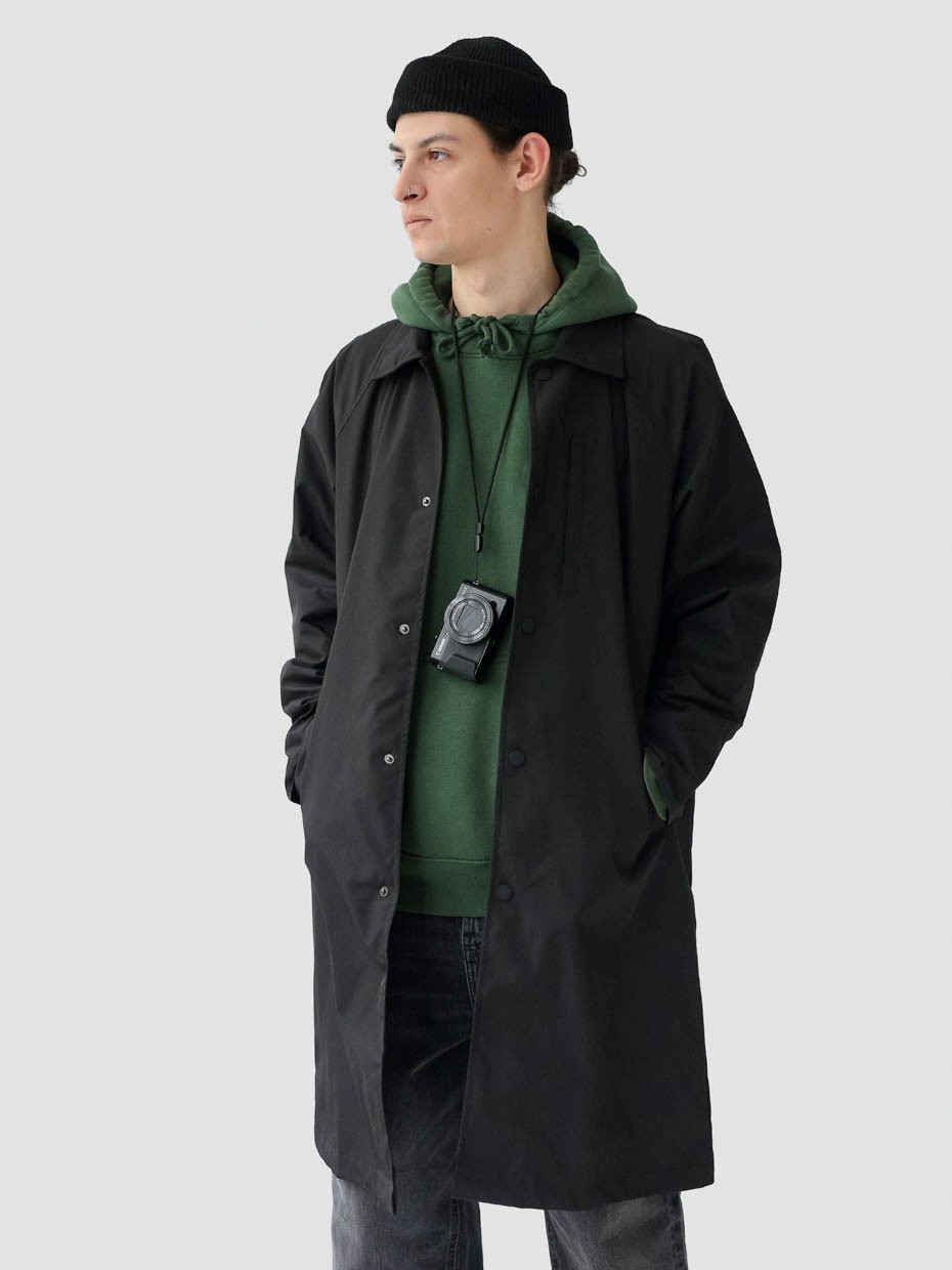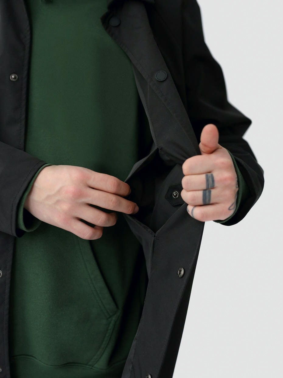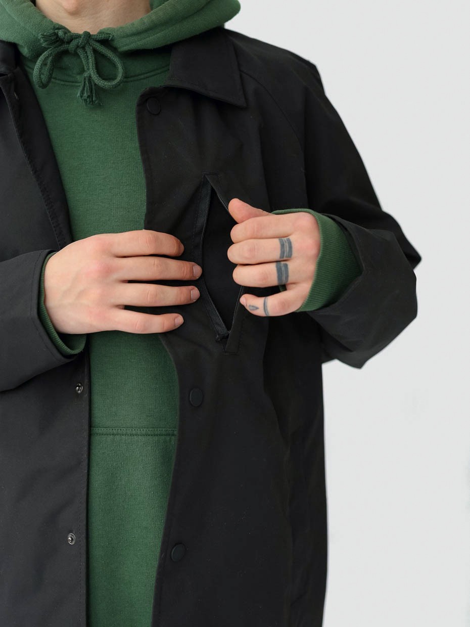 Длинный плащ Carlos свободного кроя. Легкий плащ выполнен из мягкой курточной ткани с WR пропиткой. Рукав имеет конструкцию реглан. Классический отложной воротник с магнитной застежкой, который, в случае прохладного ветра, можно поднять и застегнуть. Модель имеет два боковых врезных кармана, один нагрудный на молнии и два внутренних. Шлица сзади добавляет удобства при ходьбе и не сковывает шаг. Плащ застегивается на брендированные кнопки с эффектом “софт тач”.
