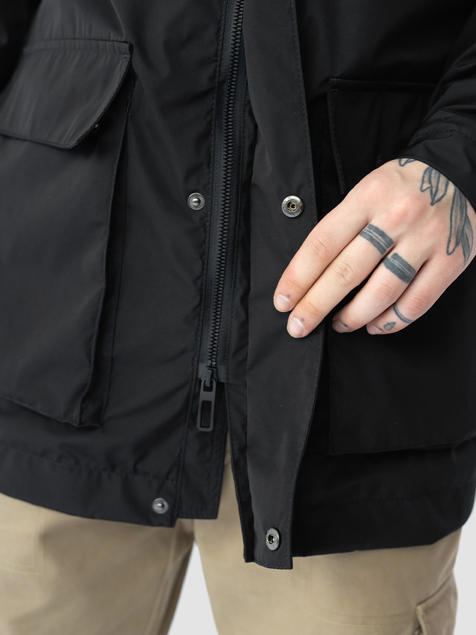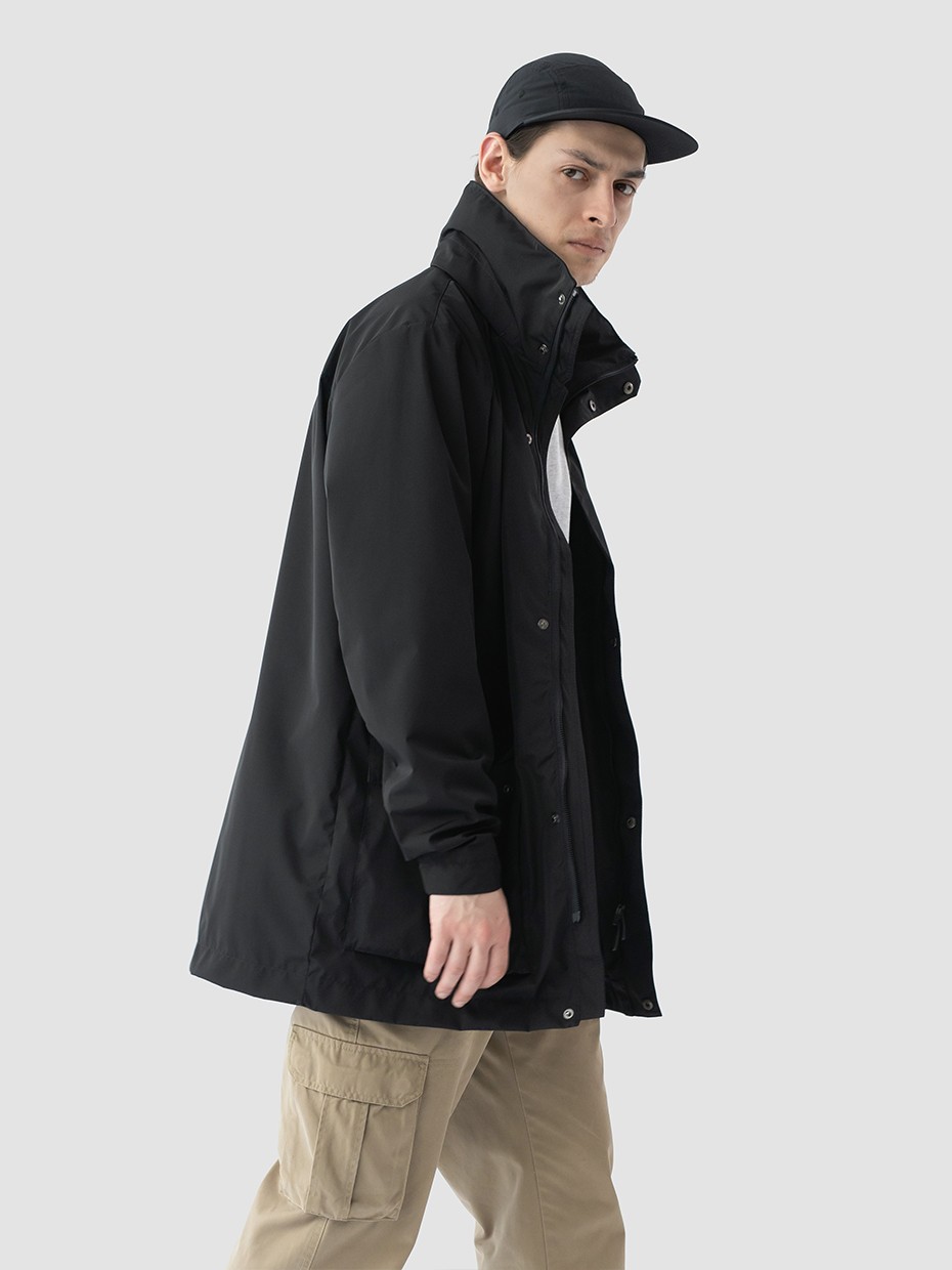 Удлиненная легкая куртка Castore. Куртка выполнена из мембранной ткани c WR пропиткой, которая улучшает водоотталкивающие свойства. Для дополнительной влагозащиты центральная молния закрывается планкой на кнопках. Комбинированные наружные накладные карманы имеют два входа: верхний и боковой. Капюшон регулируется эластичным шнуром с фиксаторами. Его можно убрать в воротник-стойку, которая закрывается на кнопки. Ширина рукава регулируется патой с кнопками. Внутри дополнительный карман на молнии.