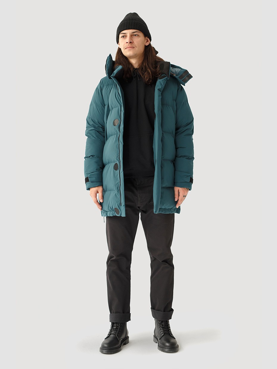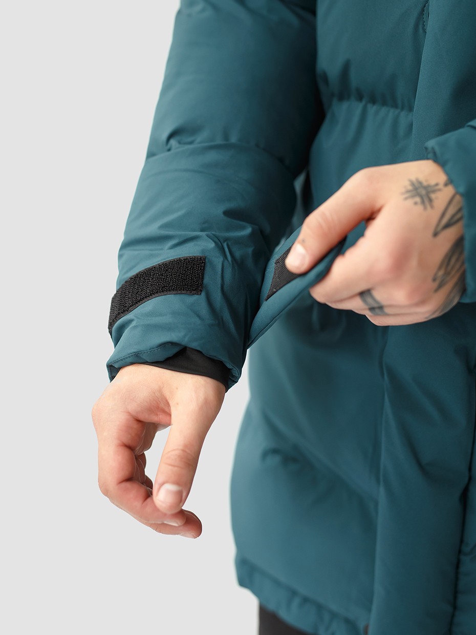 Удлиненный мужской зимний пуховик Cooper, изготовленный из качественной водоотталкивающей ткани. Куртка в стиле oversize – это верхняя одежда, подходящая взрослым мужчинам и парням. Длина куртки до середины бедра, что идеально подходит для повседневной носки и активного отдыха. Застегивается на молнию с внутренним ветрозащитным клапаном. Рукава дополняют манжеты на резинке. Ширина рукава регулируется липучкой. 2 боковых внешних кармана на молнии. Регулируемый низ с эластичным шнурком и фиксаторами. Объемный ворот. Съёмный объемный капюшон на кнопках, застёгивающийся на липучку. Внутри дополнительный карман на молнии. Пуховик выполнен из ткани мембрана с отделкой TPU. Ткани с такой обработкой обладают мягкостью, при этом надежно защищая от воды и снега. В качестве утеплителя взят материал био-пух DuPont Sorona – по термоизолирующим характеристикам идентичен натуральному птичьему пуху, но при этом имеет ряд преимуществ, таких как эластичность, негигроскопичность и гипоаллергенность.