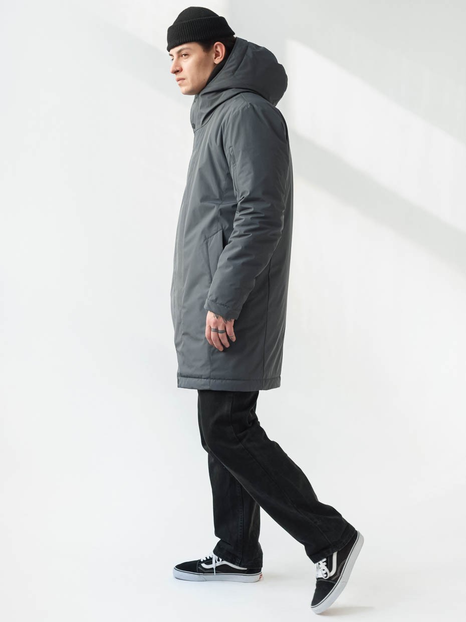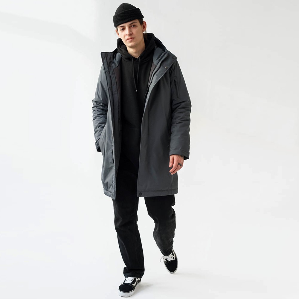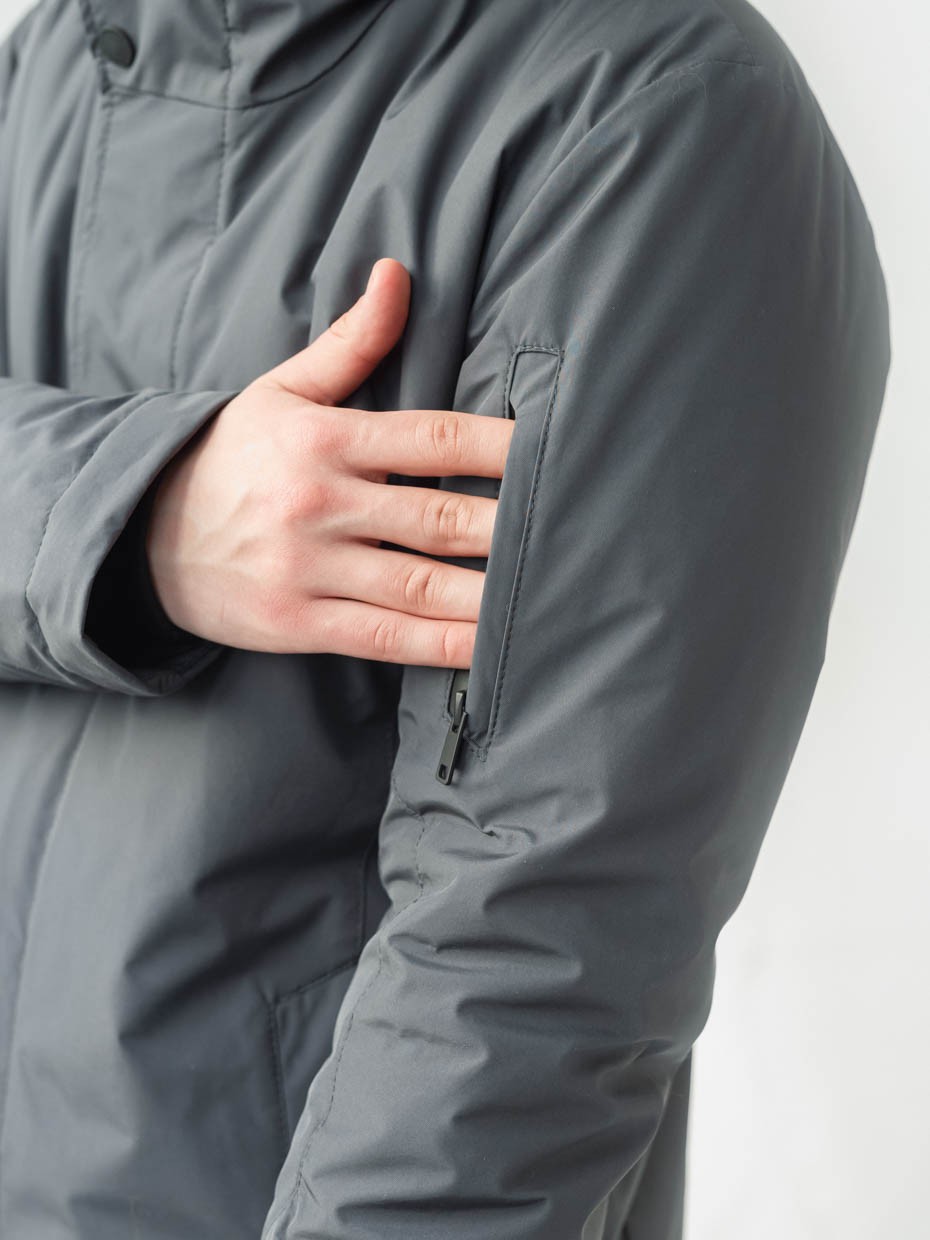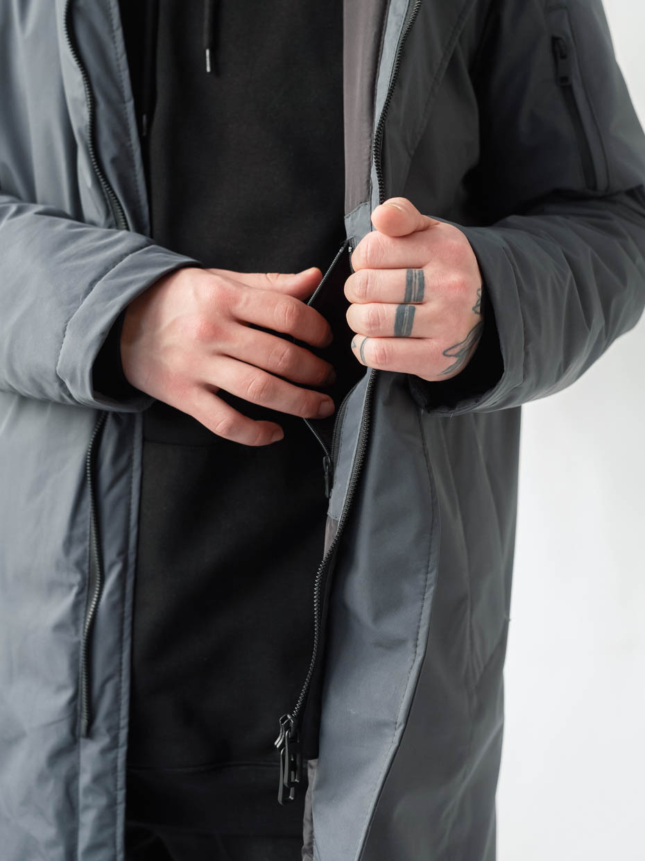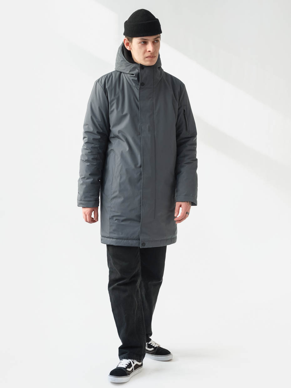 Удлиненная демисезонная куртка Davis прямого силуэта c плотный слоем искусcтвенного утеплителя – ФАЙБЕРТЕК™. Это нетканый материал, представляющий собой объемный слой из композиции тонких пустотелых волокон с элементами объемного термоскрепления.  Куртка выполнена из ткани мембрана – качественная курточная ткань с мембранной отделкой TPU с водоупорностью до 3000 мм. Ткани с такой обработкой надежно защищают от воды и снега. Двухзамковая молния дополнительно закрыта планкой с внешней стороны защищает от попадания влаги внутрь. Дополняют куртку два врезных кармана на молниях. Один небольшой карман на левом рукаве на молнии и два  внутренних кармана. Манжеты внутри рукавов обеспечивают плотное прилегание к запястью и защиту от ветра. Объем капюшона регулируется эластичным шнуром с фиксатором.