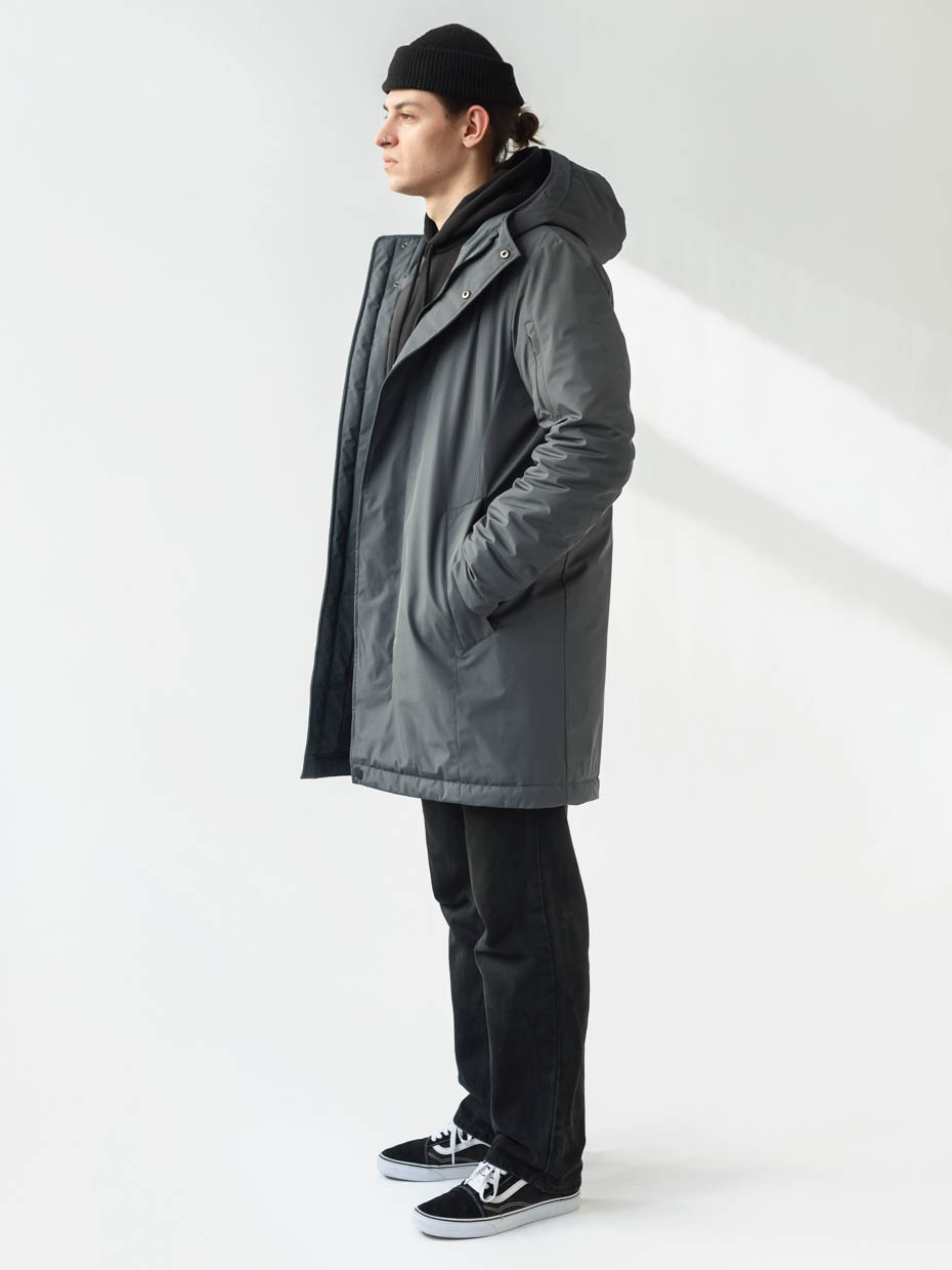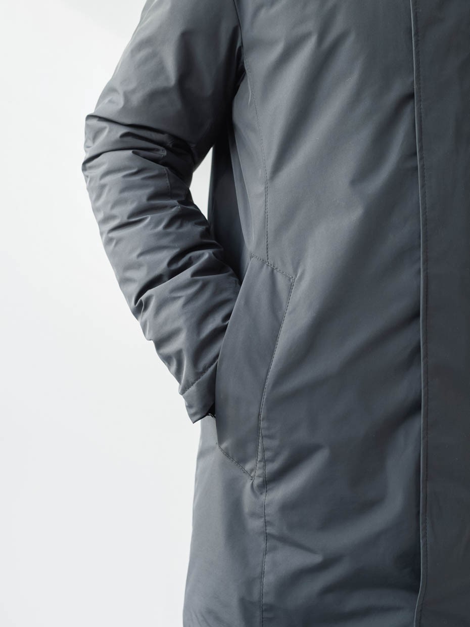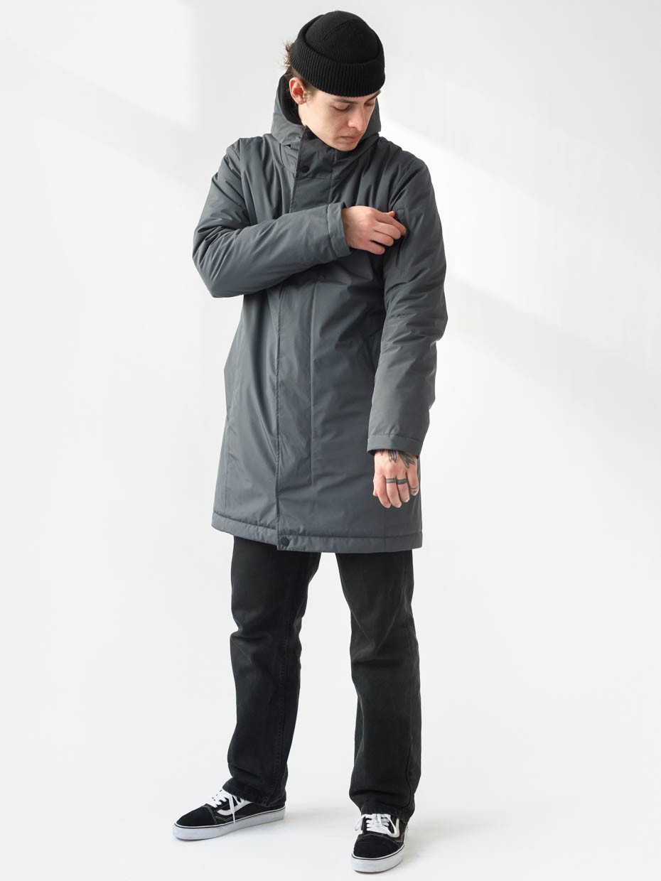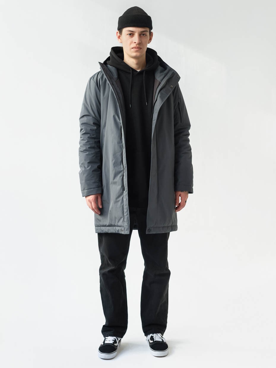 Удлиненная демисезонная куртка Davis прямого силуэта c плотный слоем искусcтвенного утеплителя – ФАЙБЕРТЕК™. Это нетканый материал, представляющий собой объемный слой из композиции тонких пустотелых волокон с элементами объемного термоскрепления.  Куртка выполнена из ткани мембрана – качественная курточная ткань с мембранной отделкой TPU с водоупорностью до 3000 мм. Ткани с такой обработкой надежно защищают от воды и снега. Двухзамковая молния дополнительно закрыта планкой с внешней стороны защищает от попадания влаги внутрь. Дополняют куртку два врезных кармана на молниях. Один небольшой карман на левом рукаве на молнии и два  внутренних кармана. Манжеты внутри рукавов обеспечивают плотное прилегание к запястью и защиту от ветра. Объем капюшона регулируется эластичным шнуром с фиксатором.