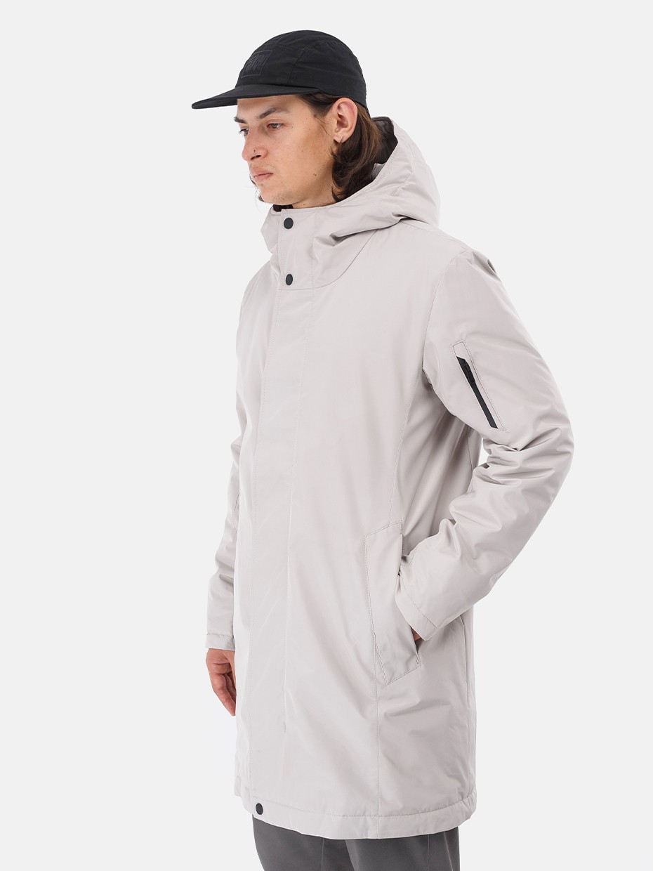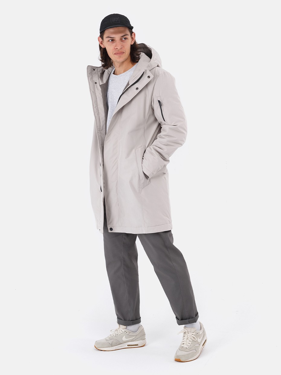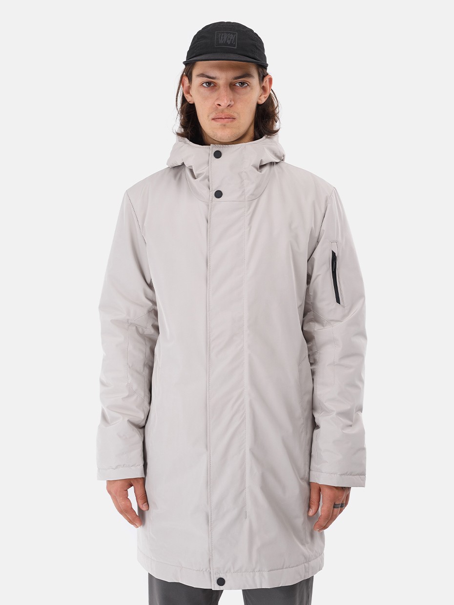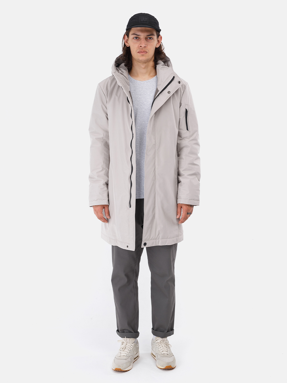 Удлиненная демисезонная куртка Davis прямого силуэта c плотный слоем искусcтвенного утеплителя – ФАЙБЕРТЕК™. Это нетканый материал, представляющий собой объемный слой из композиции тонких пустотелых волокон с элементами объемного термоскрепления.  Куртка выполнена из ткани мембрана – качественная курточная ткань с мембранной отделкой TPU с водоупорностью до 3000 мм. Ткани с такой обработкой надежно защищают от воды и снега. Двухзамковая молния дополнительно закрыта планкой с внешней стороны защищает от попадания влаги внутрь. Дополняют куртку два врезных кармана на молниях. Один небольшой карман на левом рукаве на молнии и два  внутренних кармана. Манжеты внутри рукавов обеспечивают плотное прилегание к запястью и защиту от ветра. Объем капюшона регулируется эластичным шнуром с фиксатором.