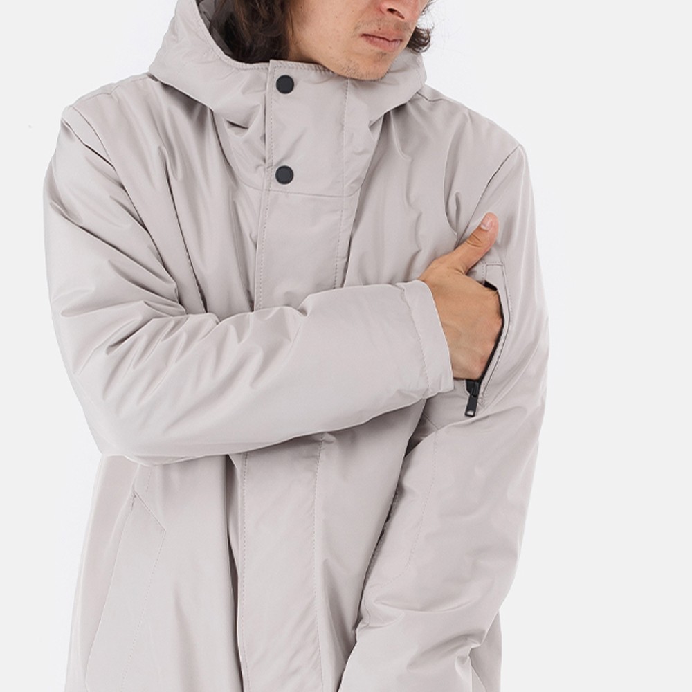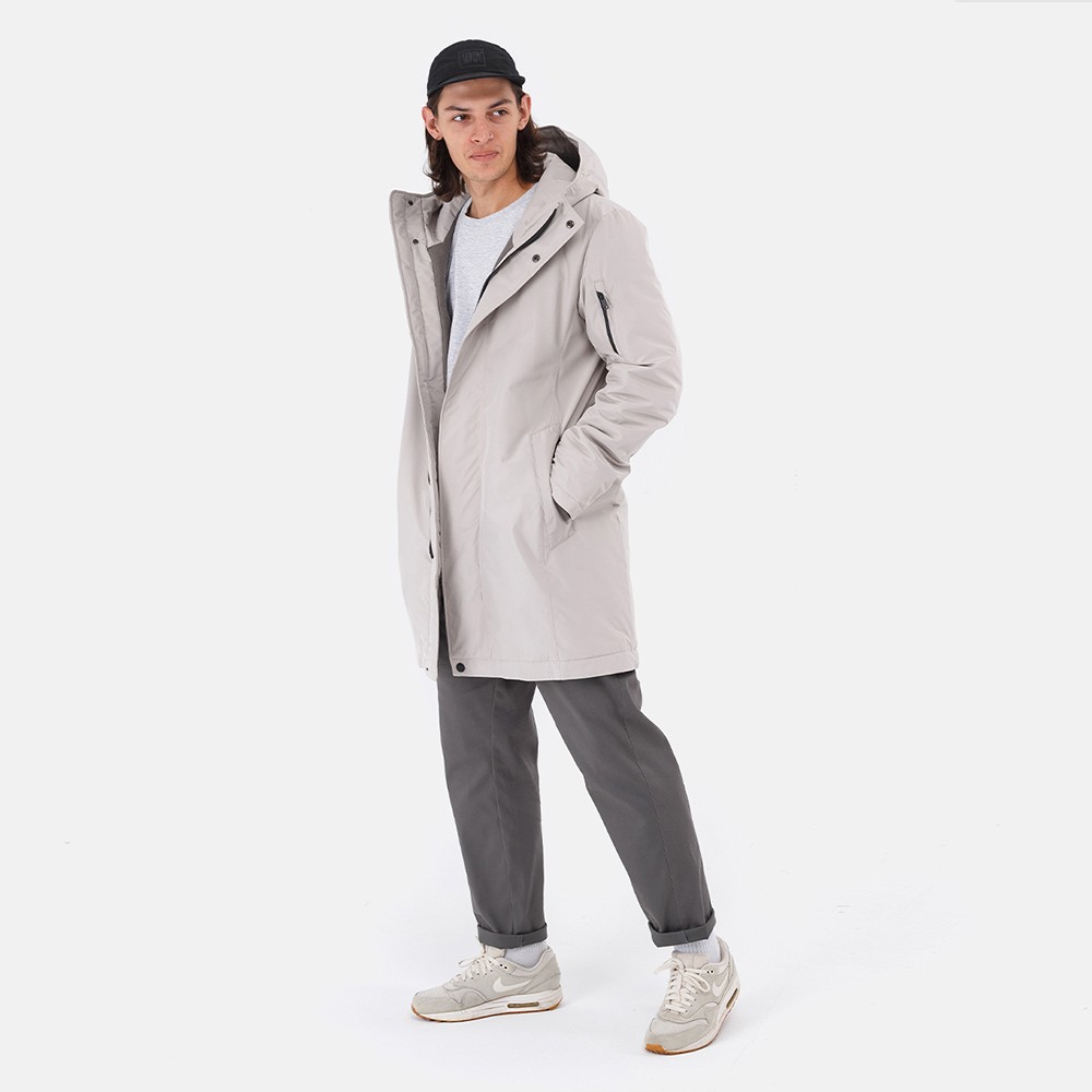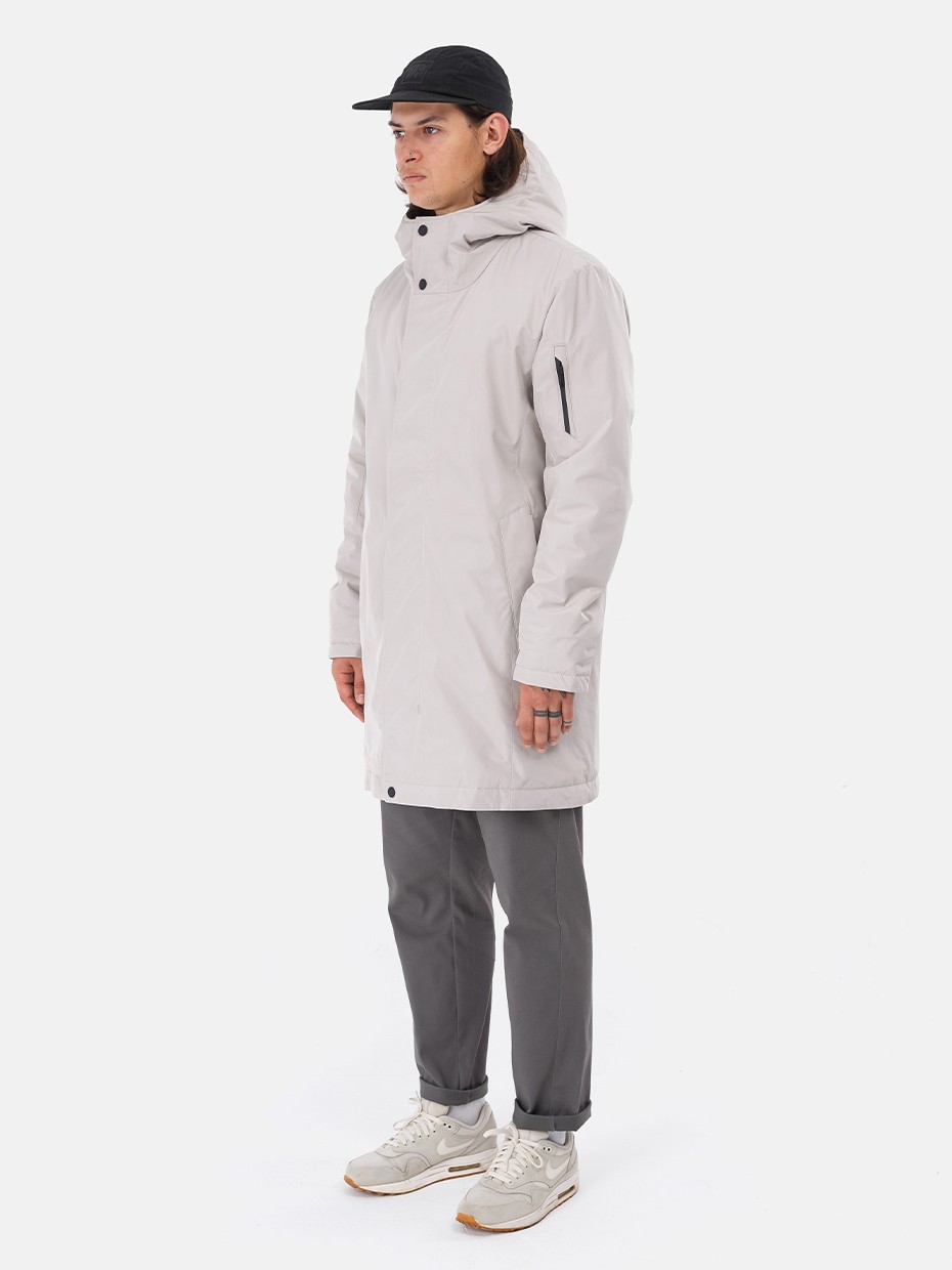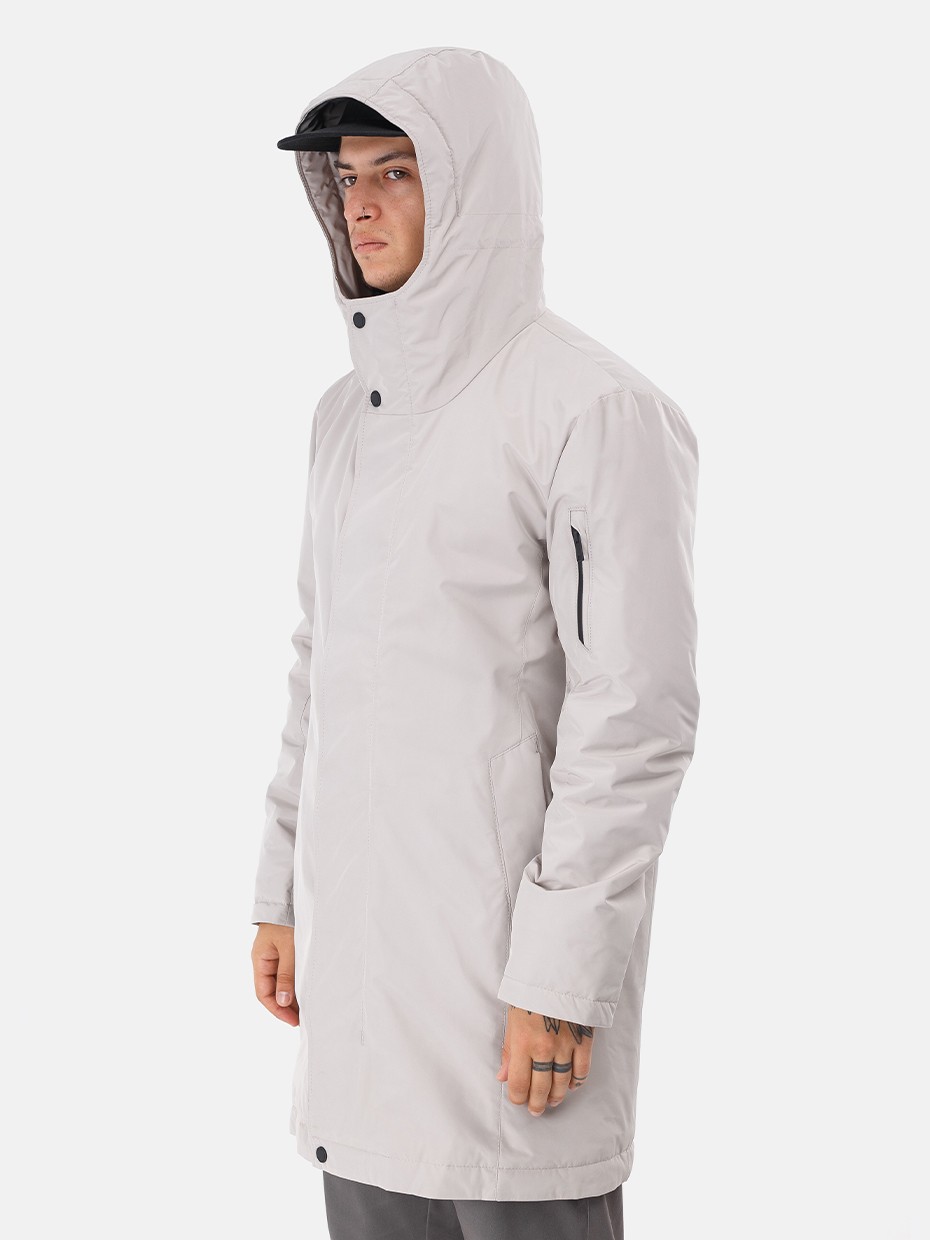 Удлиненная демисезонная куртка Davis прямого силуэта c плотный слоем искусcтвенного утеплителя – ФАЙБЕРТЕК™. Это нетканый материал, представляющий собой объемный слой из композиции тонких пустотелых волокон с элементами объемного термоскрепления.  Куртка выполнена из ткани мембрана – качественная курточная ткань с мембранной отделкой TPU с водоупорностью до 3000 мм. Ткани с такой обработкой надежно защищают от воды и снега. Двухзамковая молния дополнительно закрыта планкой с внешней стороны защищает от попадания влаги внутрь. Дополняют куртку два врезных кармана на молниях. Один небольшой карман на левом рукаве на молнии и два  внутренних кармана. Манжеты внутри рукавов обеспечивают плотное прилегание к запястью и защиту от ветра. Объем капюшона регулируется эластичным шнуром с фиксатором.