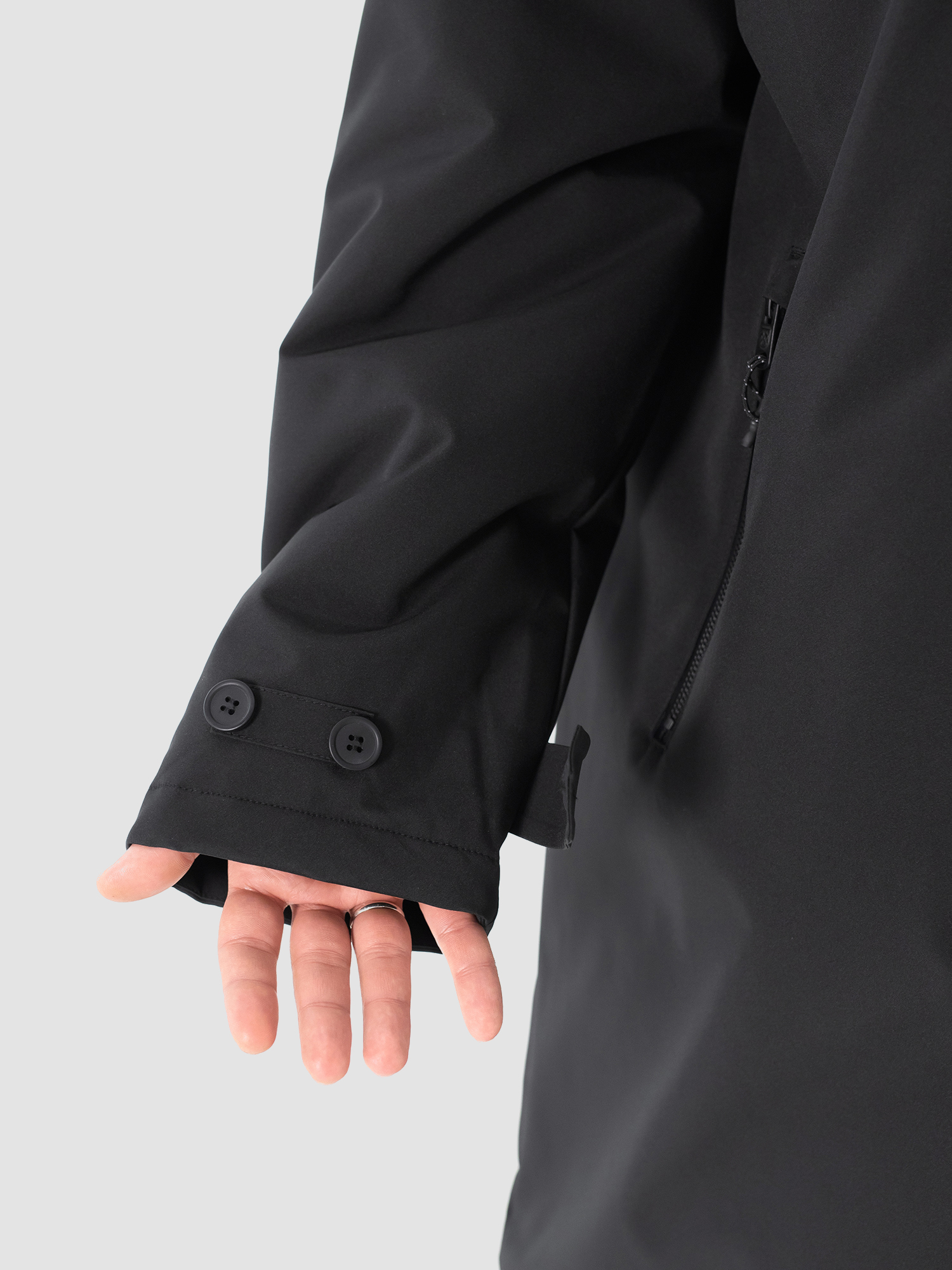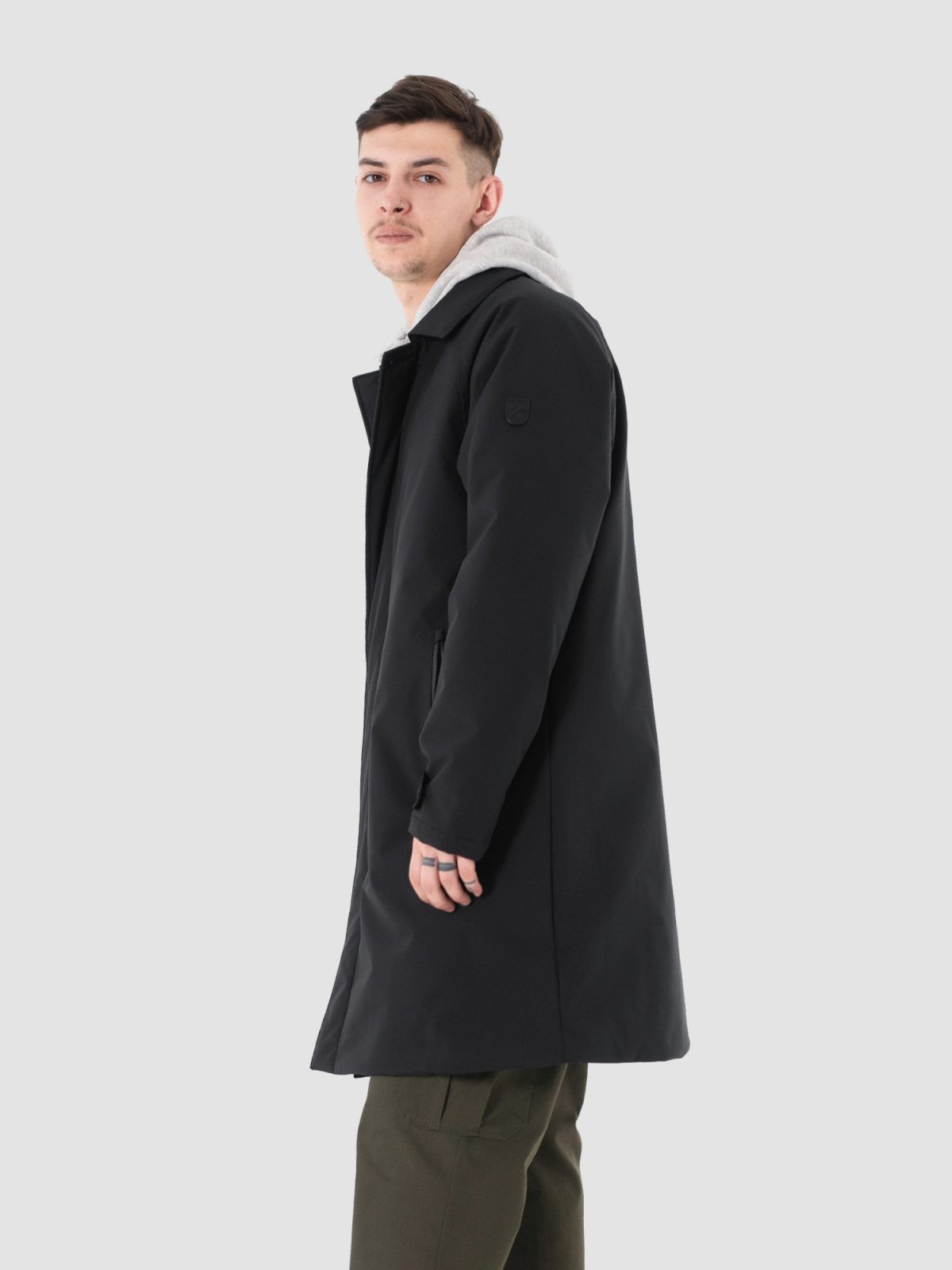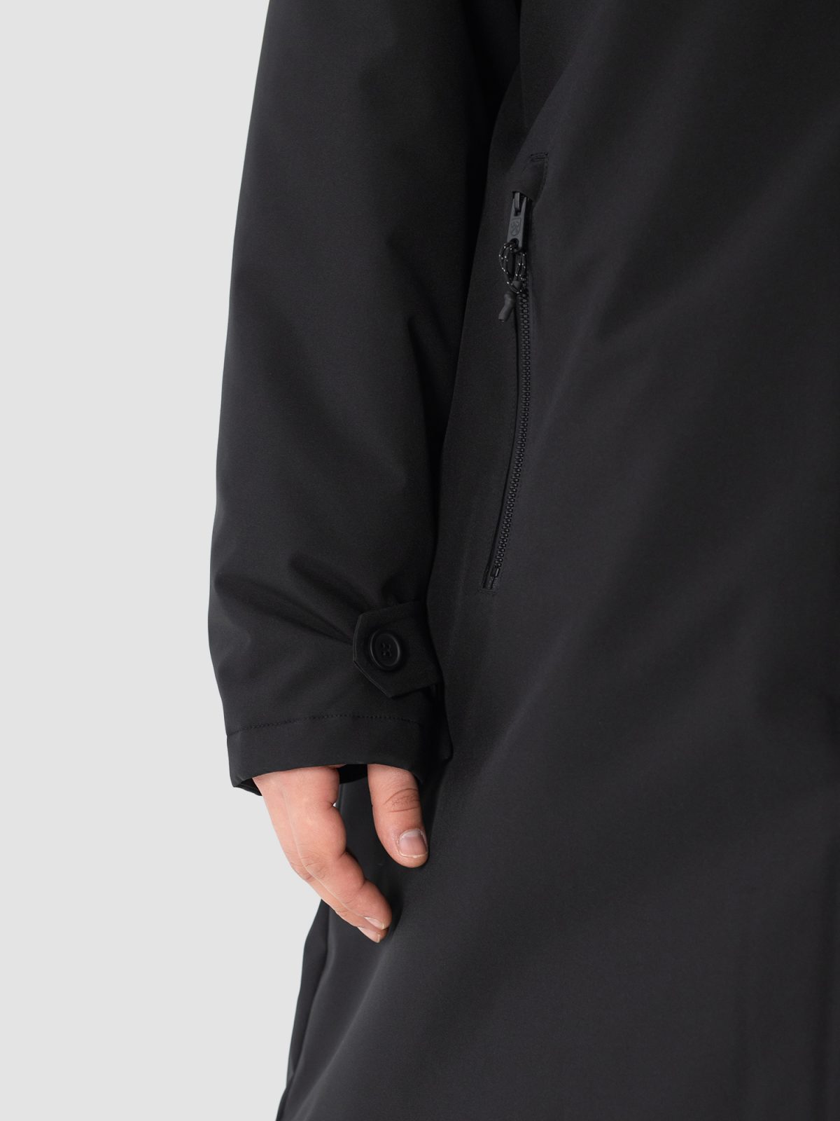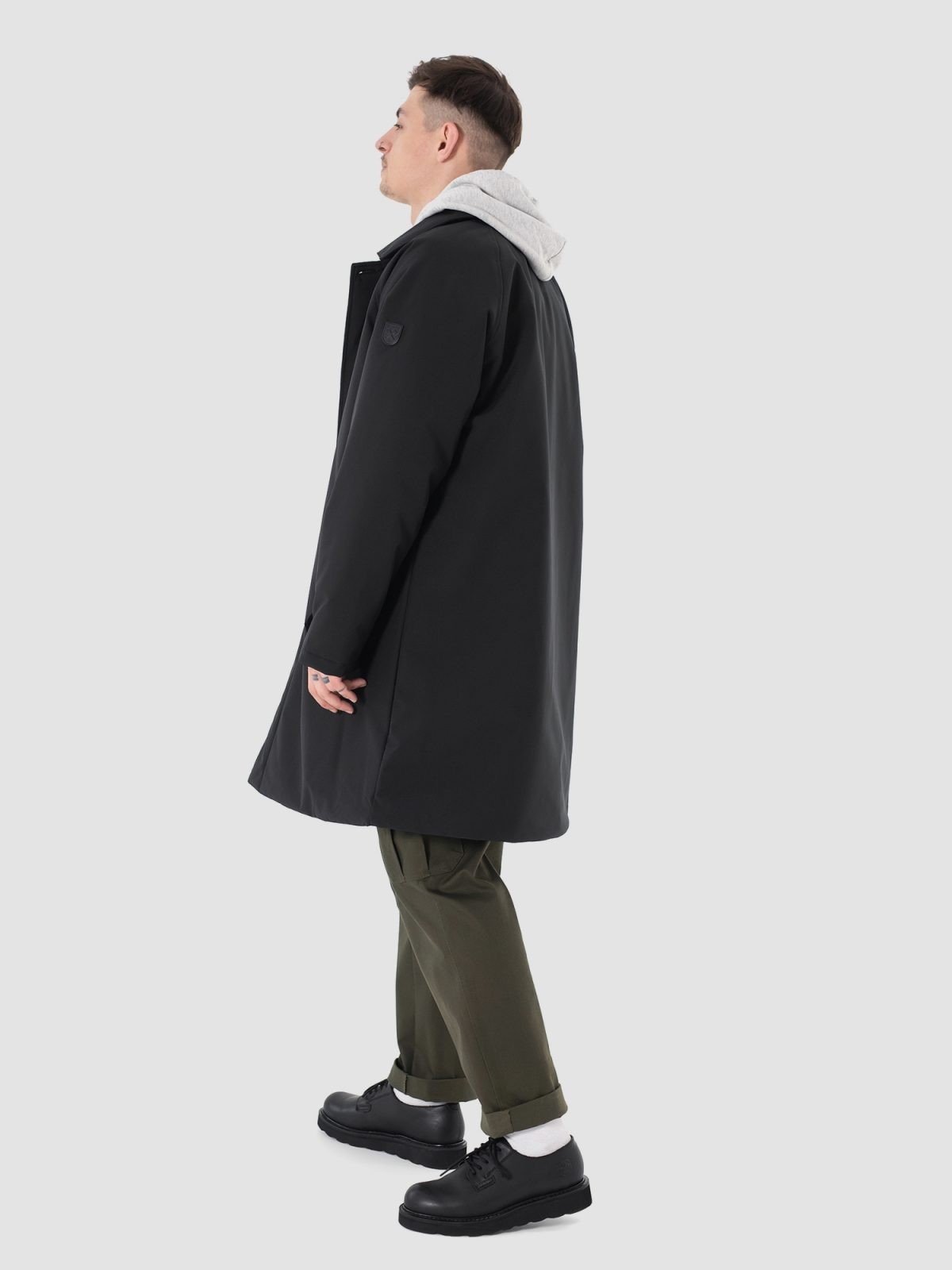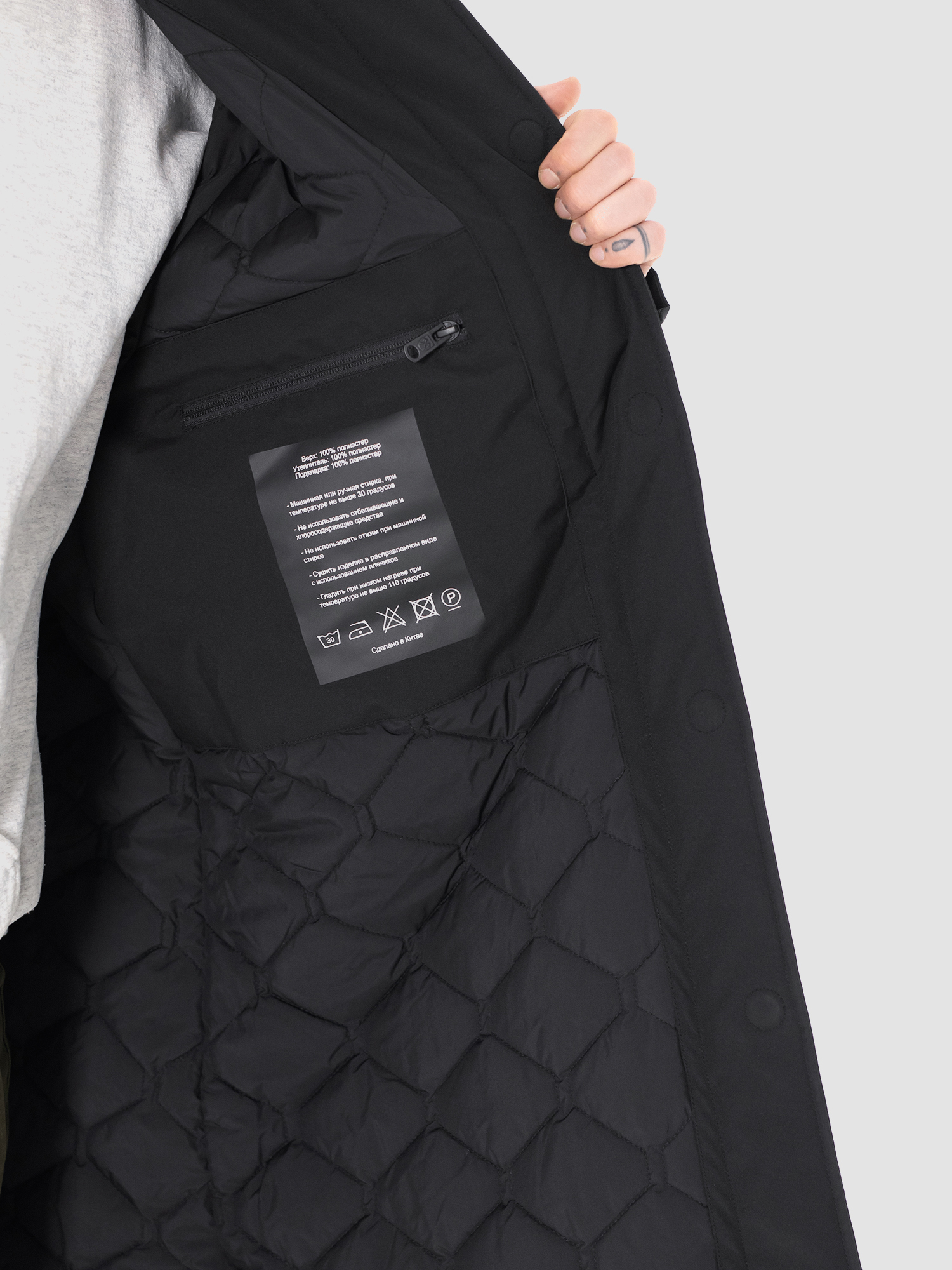 Утепленная мужская куртка Dikson свободного кроя с центральной застежкой с внешней ветрозащитной планкой на магнитных кнопках. Отложной воротник на магнитной застежке надежно защищает от ветра и осадков. Регулируемые рукава на пуговицах обеспечивают плотное прилегание к руке. Глубокие боковые карманы на водонепроницаемой молнии. Внутренний карман на молнии. Металлический логотип на левом плече дополняет образ. Длинная куртка выполнена из ткани “мембрана” — качественная курточная ткань с мембранной отделкой с водоупорностью до 5000 мм и паропроницаемостью до 5000 г/м2/24 ч. Ткани с такой обработкой надежно защищают от воды и снега. В качестве утеплителя взят материал биопух DuPont Sorona: по термоизолирующим характеристикам идентичен натуральному птичьему пуху, но при этом имеет ряд преимуществ, таких как эластичность, негигроскопичность и гипоаллергенность.