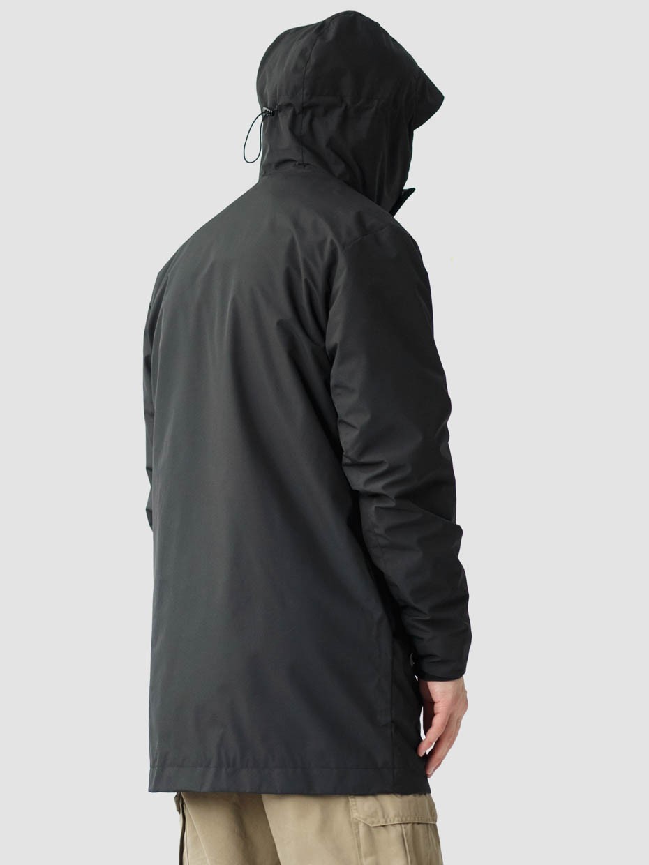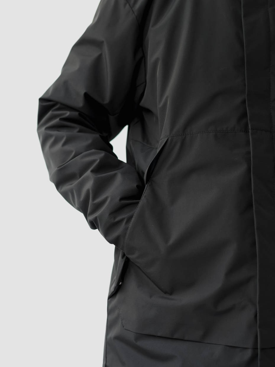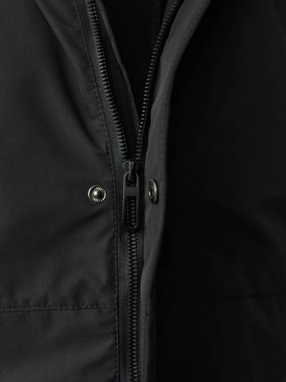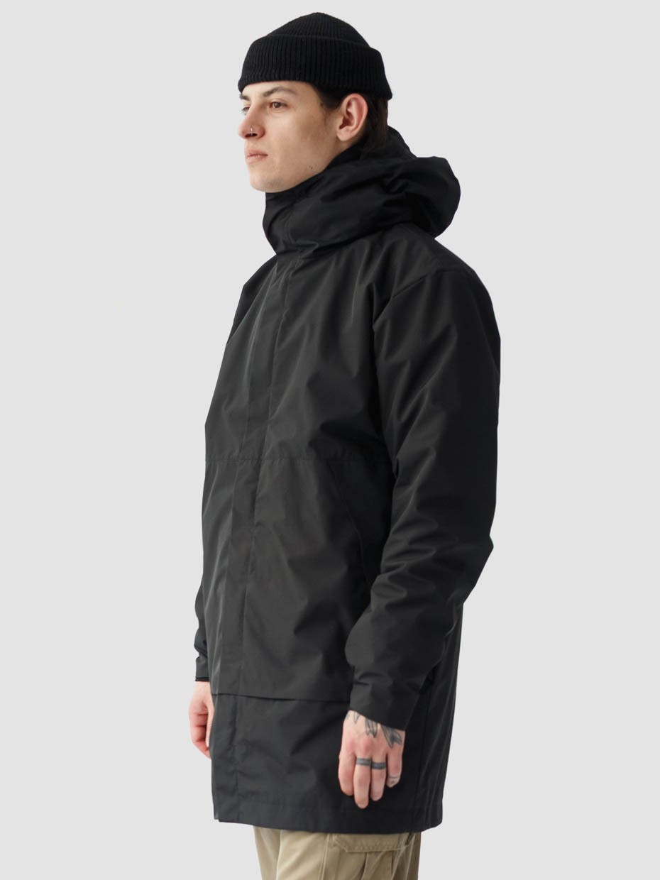 Удлиненная куртка Doug выполнена из мембранной ткани c WR пропиткой. Куртка прямого силуэта без утеплителя. Несъемный капюшон с небольшим козырьком надежно защитит от дождя и ветра. Глубина капюшона регулируется утяжкой с фиксатором. Двухзамковая молния, закрывается ветрозащитной планкой на металлических кнопках по всей длине. Ширина запястья регулируется металлическими кнопками. Два накладных боковых кармана на молнии, которые закрываются декоративной планкой и два внутренних кармана.