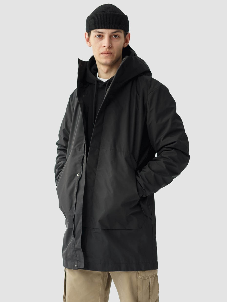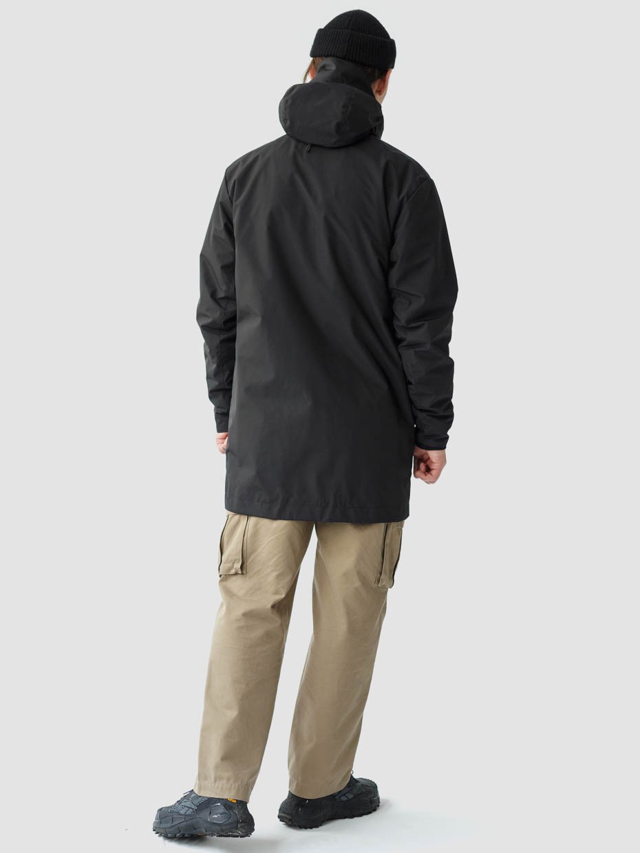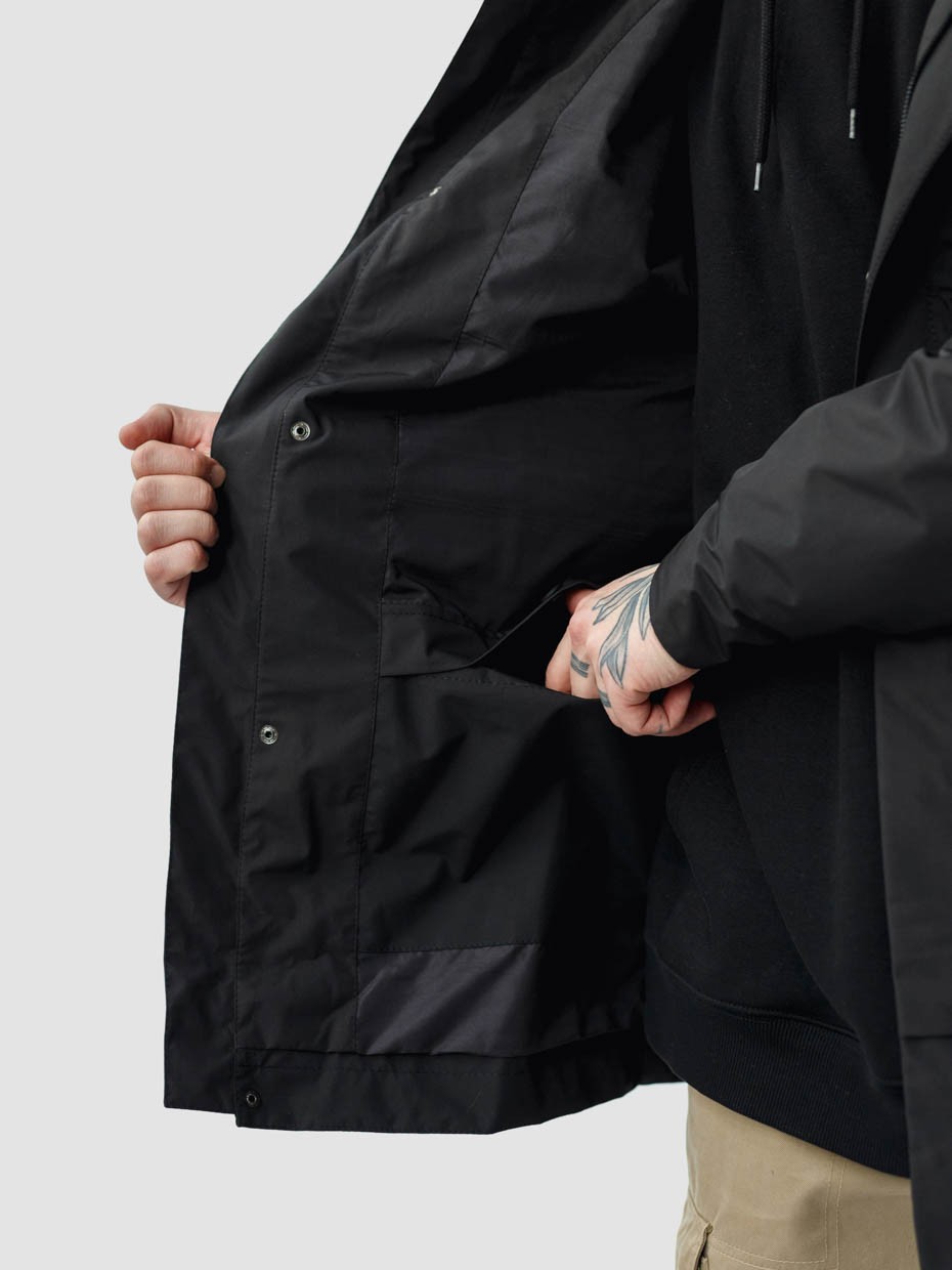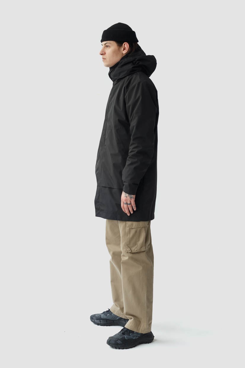 Удлиненная куртка Doug выполнена из мембранной ткани c WR пропиткой. Куртка прямого силуэта без утеплителя. Несъемный капюшон с небольшим козырьком надежно защитит от дождя и ветра. Глубина капюшона регулируется утяжкой с фиксатором. Двухзамковая молния, закрывается ветрозащитной планкой на металлических кнопках по всей длине. Ширина запястья регулируется металлическими кнопками. Два накладных боковых кармана на молнии, которые закрываются декоративной планкой и два внутренних кармана.