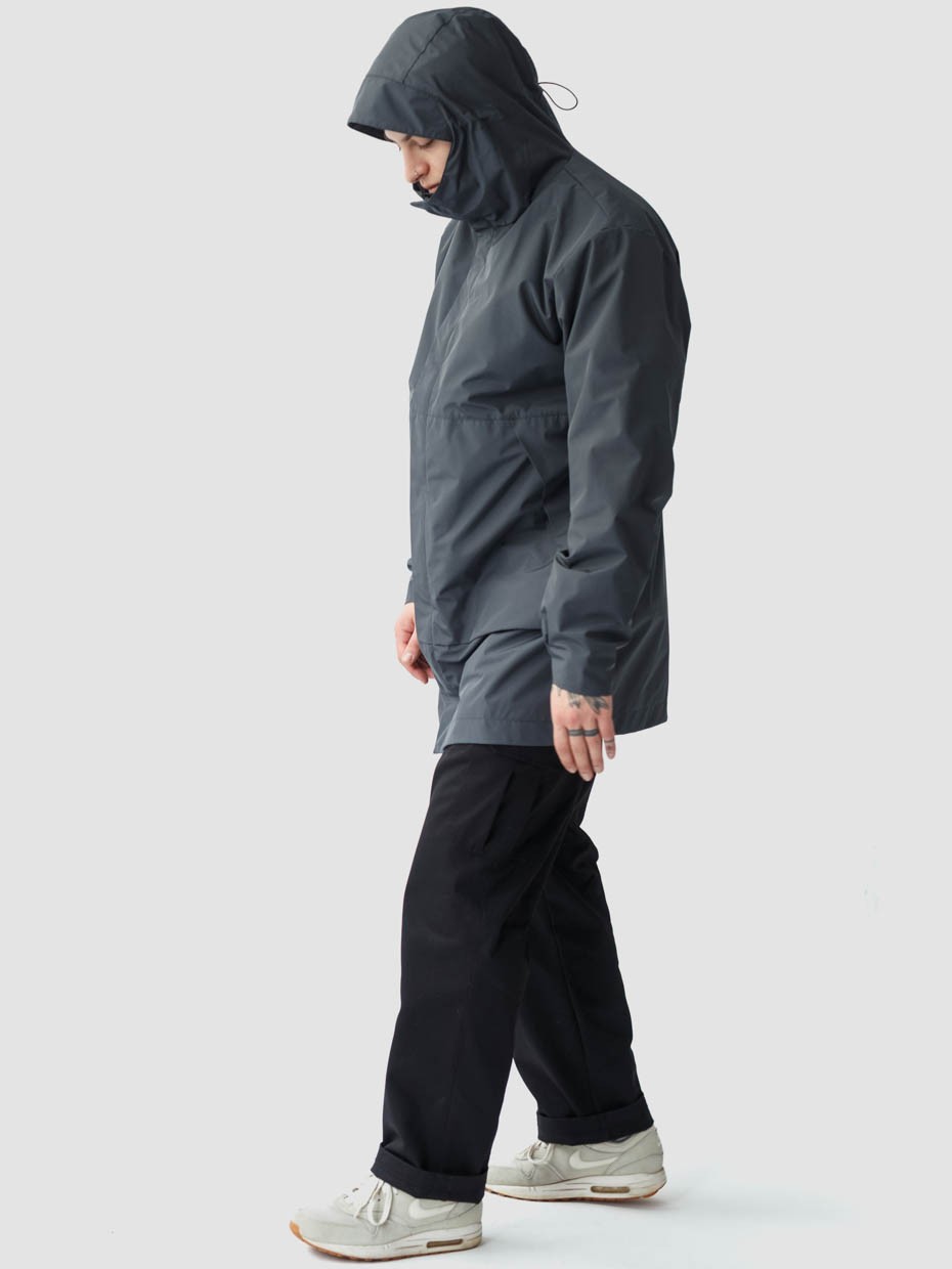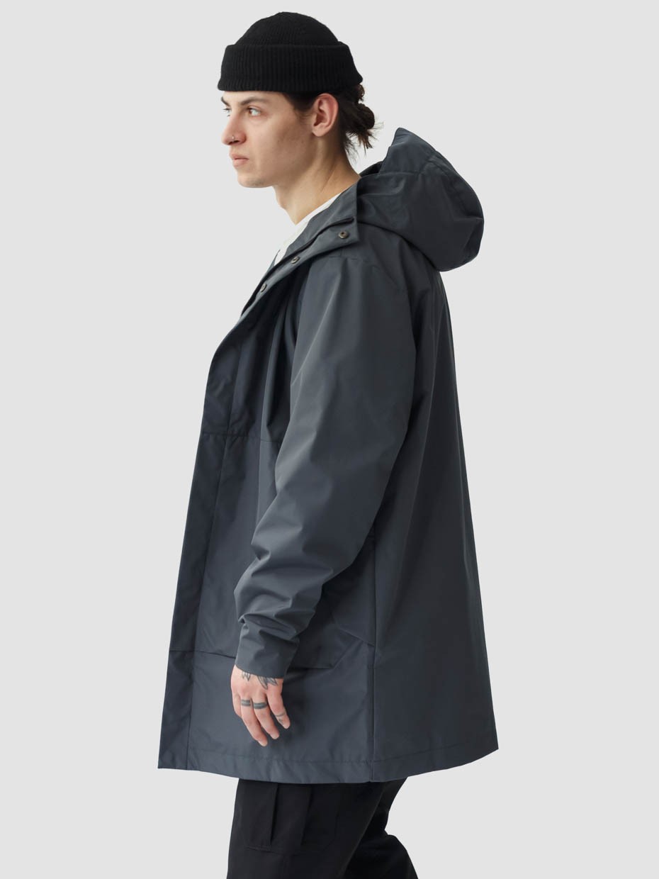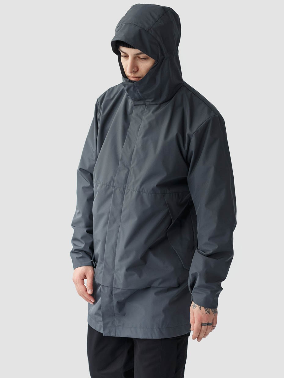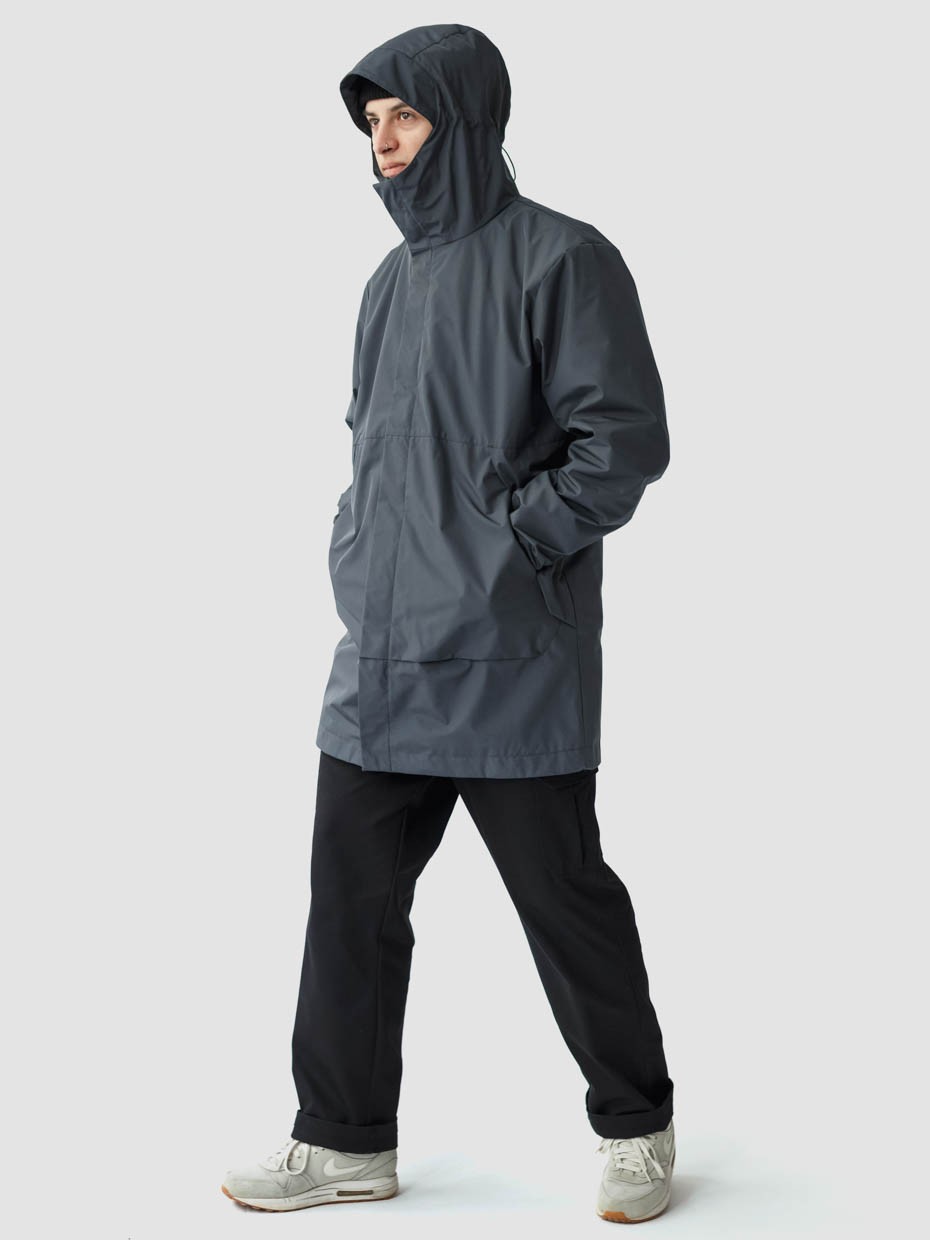 Удлиненная куртка Doug выполнена из мембранной ткани c WR пропиткой. Куртка прямого силуэта без утеплителя. Несъемный капюшон с небольшим козырьком надежно защитит от дождя и ветра. Глубина капюшона регулируется утяжкой с фиксатором. Двухзамковая молния, закрывается ветрозащитной планкой на металлических кнопках по всей длине. Ширина запястья регулируется металлическими кнопками. Два накладных боковых кармана на молнии, которые закрываются декоративной планкой и два внутренних кармана.