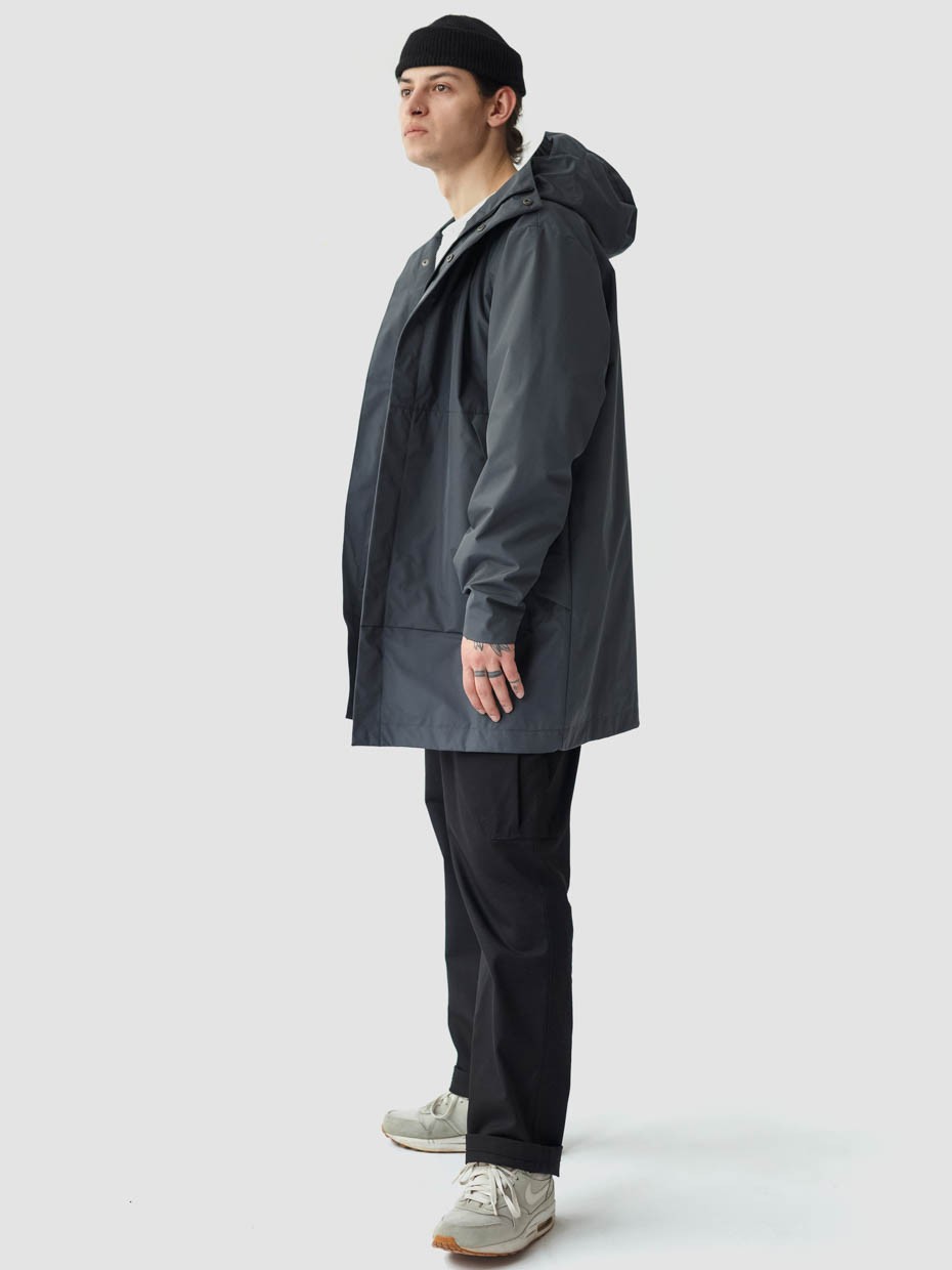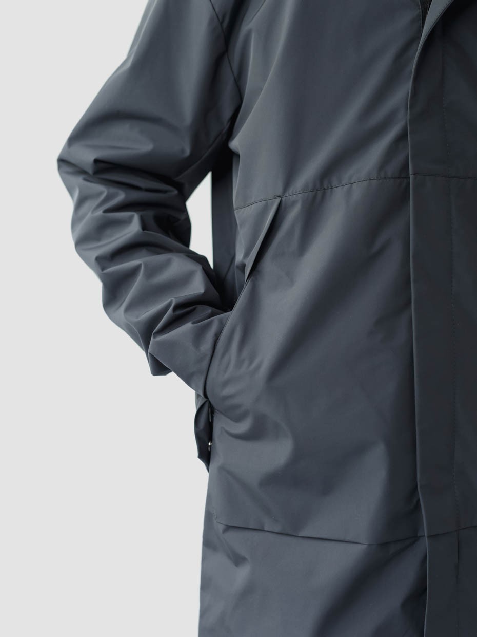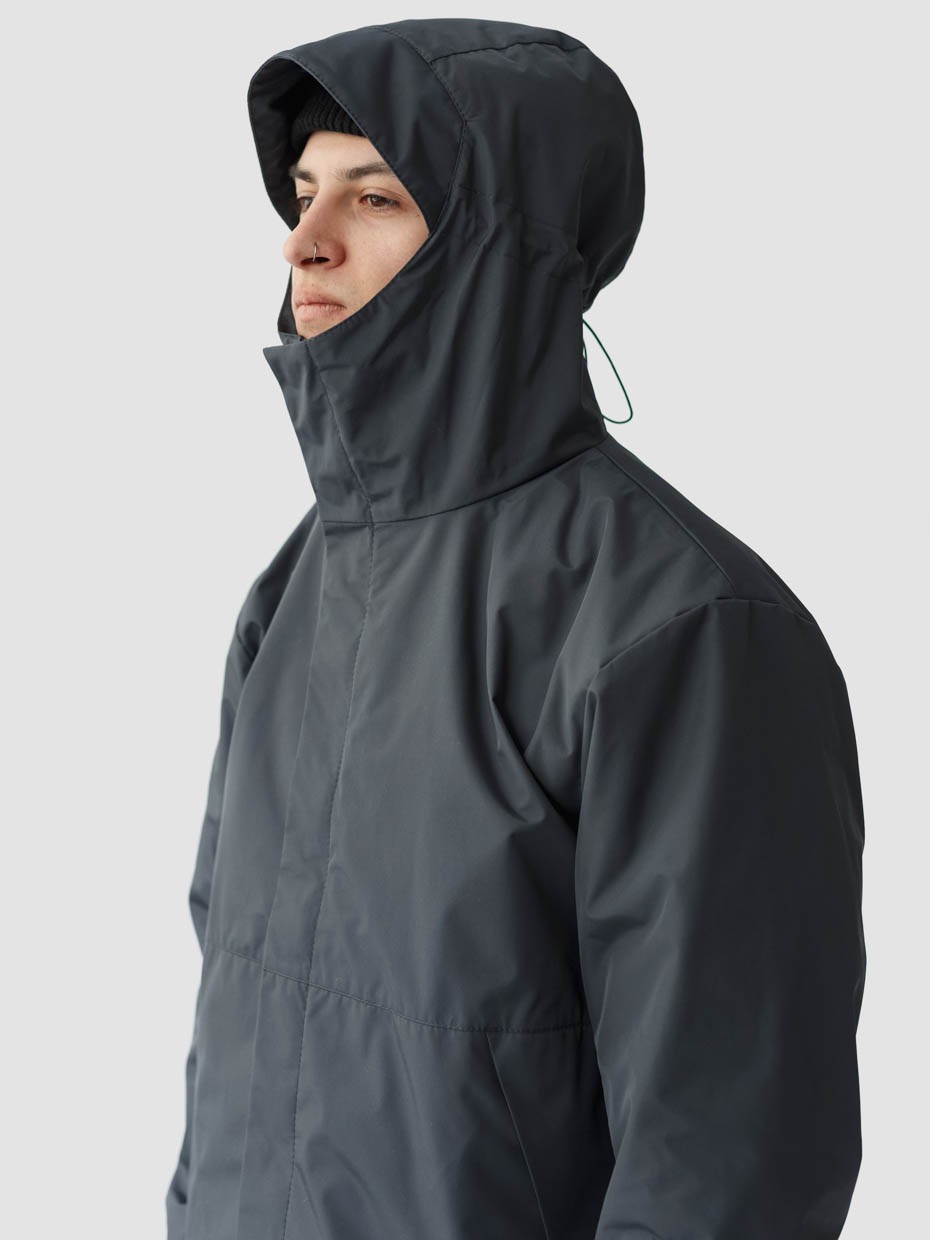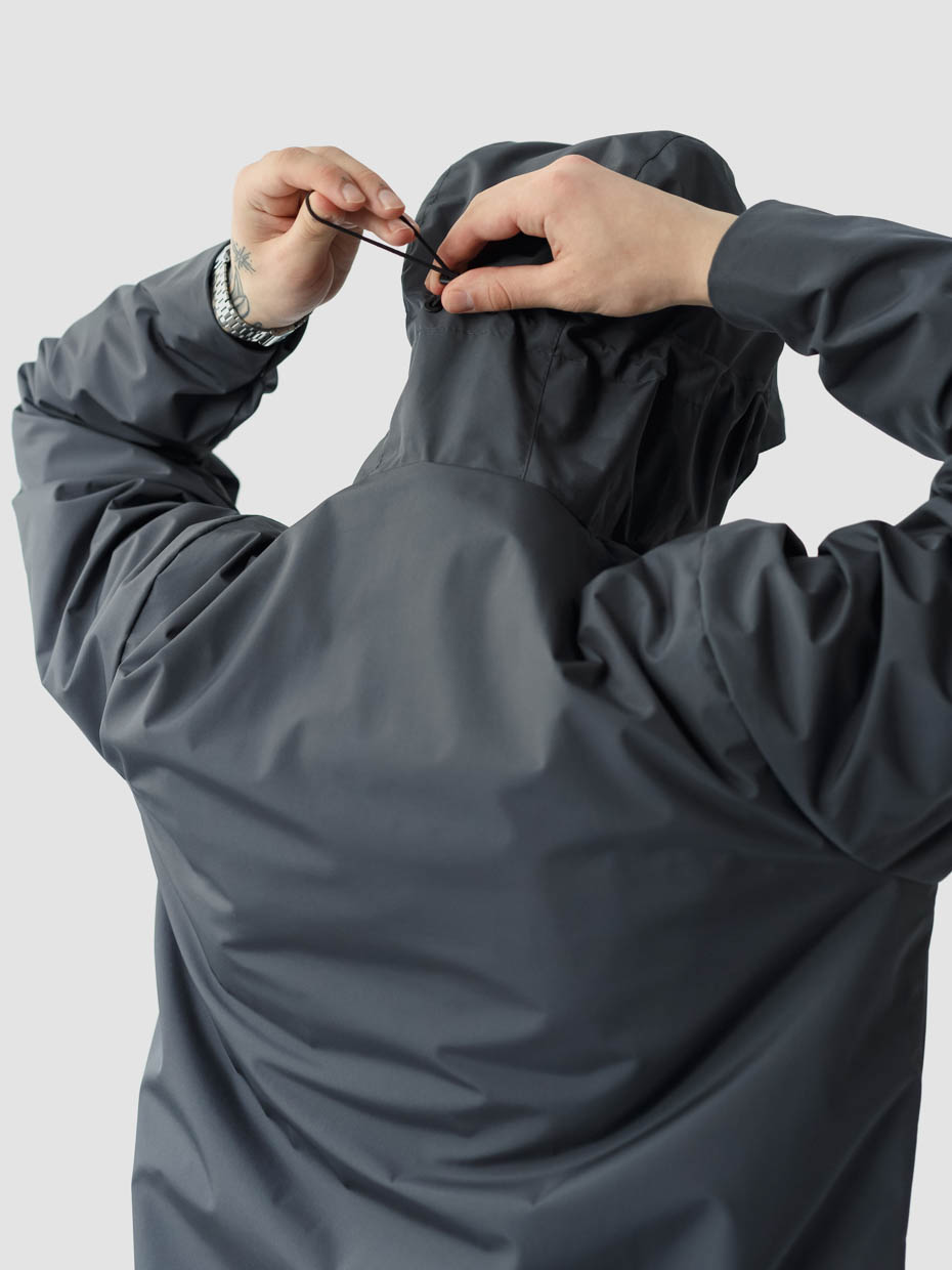 Удлиненная куртка Doug выполнена из мембранной ткани c WR пропиткой. Куртка прямого силуэта без утеплителя. Несъемный капюшон с небольшим козырьком надежно защитит от дождя и ветра. Глубина капюшона регулируется утяжкой с фиксатором. Двухзамковая молния, закрывается ветрозащитной планкой на металлических кнопках по всей длине. Ширина запястья регулируется металлическими кнопками. Два накладных боковых кармана на молнии, которые закрываются декоративной планкой и два внутренних кармана.