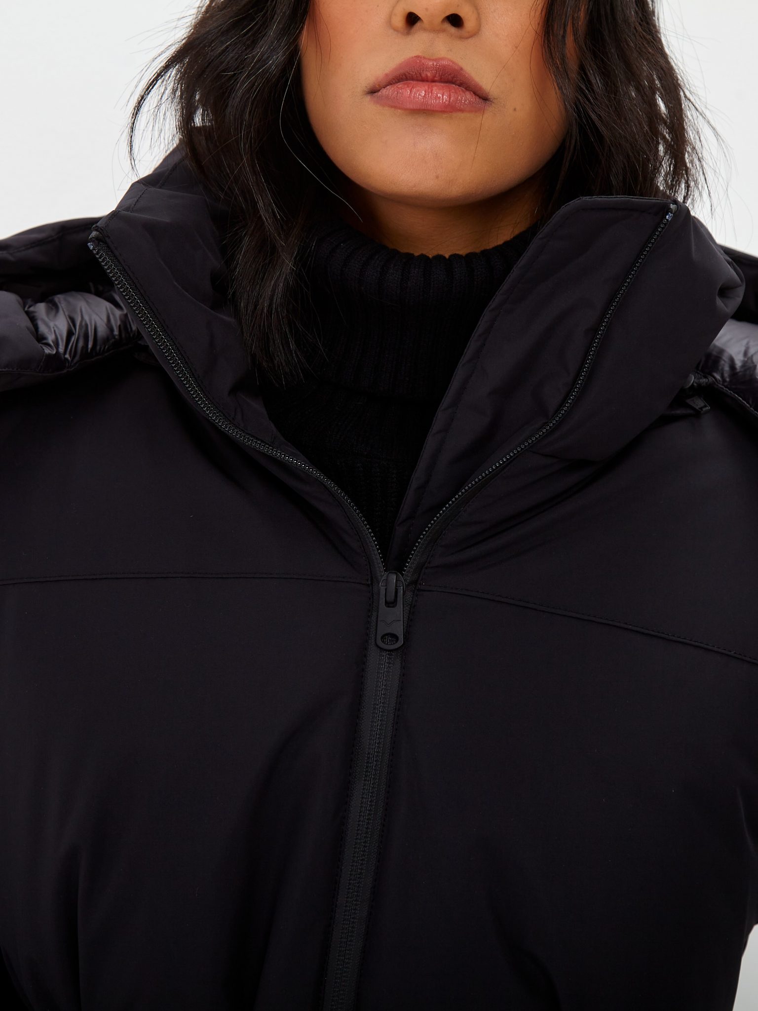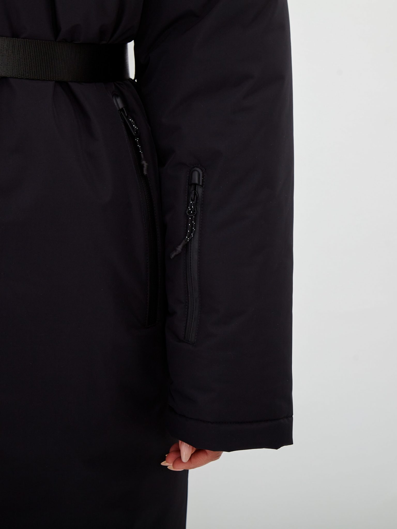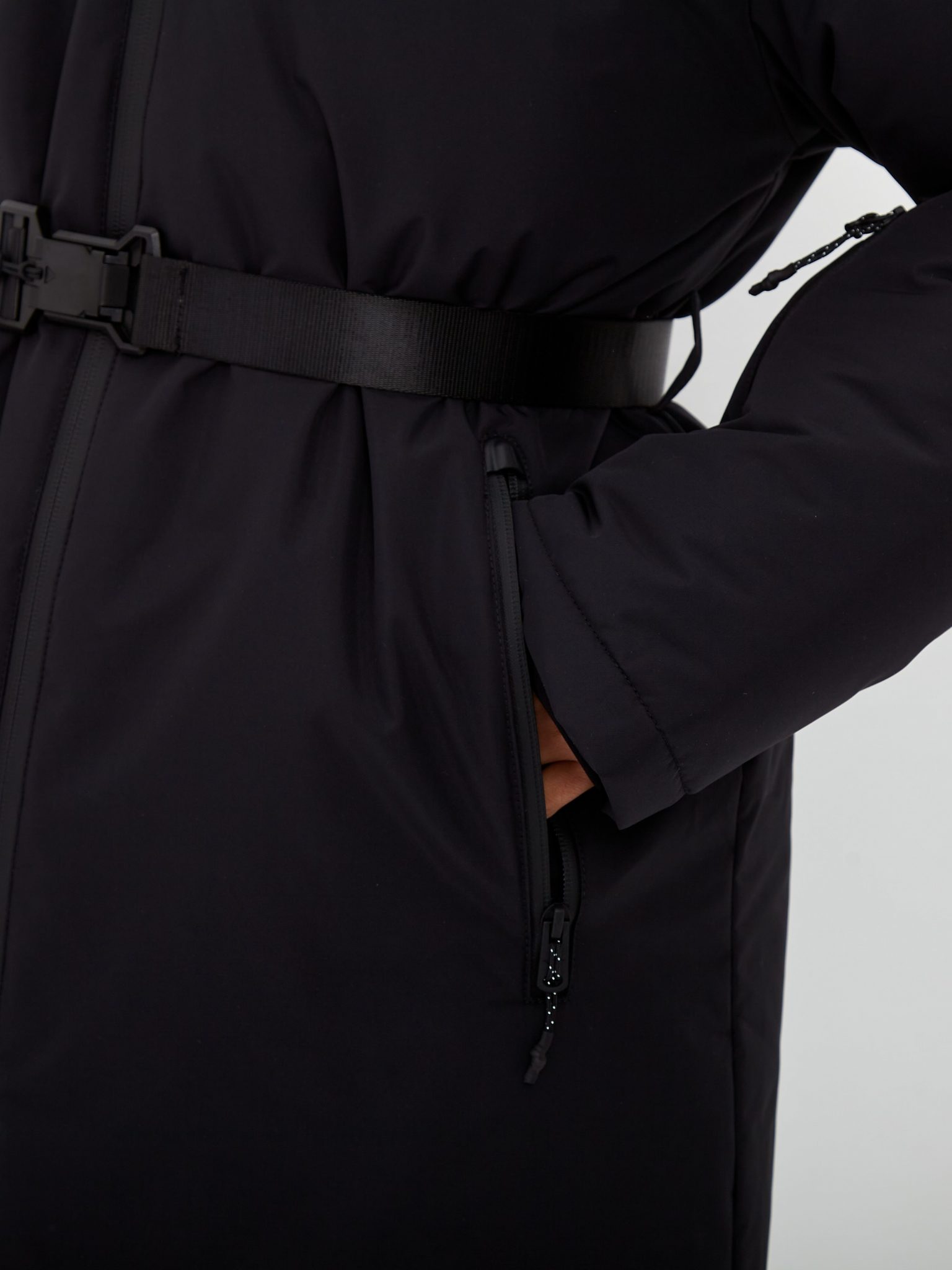 Зимний женский оверсайз пуховик Eggella, изготовлен из качественной водоотталкивающей ткани с водоотталкивающей пропиткой. Трапециевидный крой подарит комфорт и свободу движения – это верхняя одежда, подходящая взрослым женщинам и девушкам – подросткам с любым типом фигуры. Удлиненная куртка с центральной застежкой на двухзамковой водонепроницаемой молнии производства фирмы YKK с ветрозащитной планкой внутри и магнитами по низу изделия. Съёмный объемный регулируемый капюшон, застёгивающийся на магниты. Высокий объемный воротник надежно защищает от ветра и осадков. Эластичные манжеты рукавов с прорезями под большие пальцы обеспечивают надежное прилегание к руке. Боковые карманы на водонепроницаемой молнии. Внутренний нагрудный карман на молнии. Металлический логотип на левом плече дополняют образ. Внутренние стропы, для удобства носки куртки за плечами в помещениях. Карман на рукаве для карт. Пояс по талии позволяет регулировать посадку.