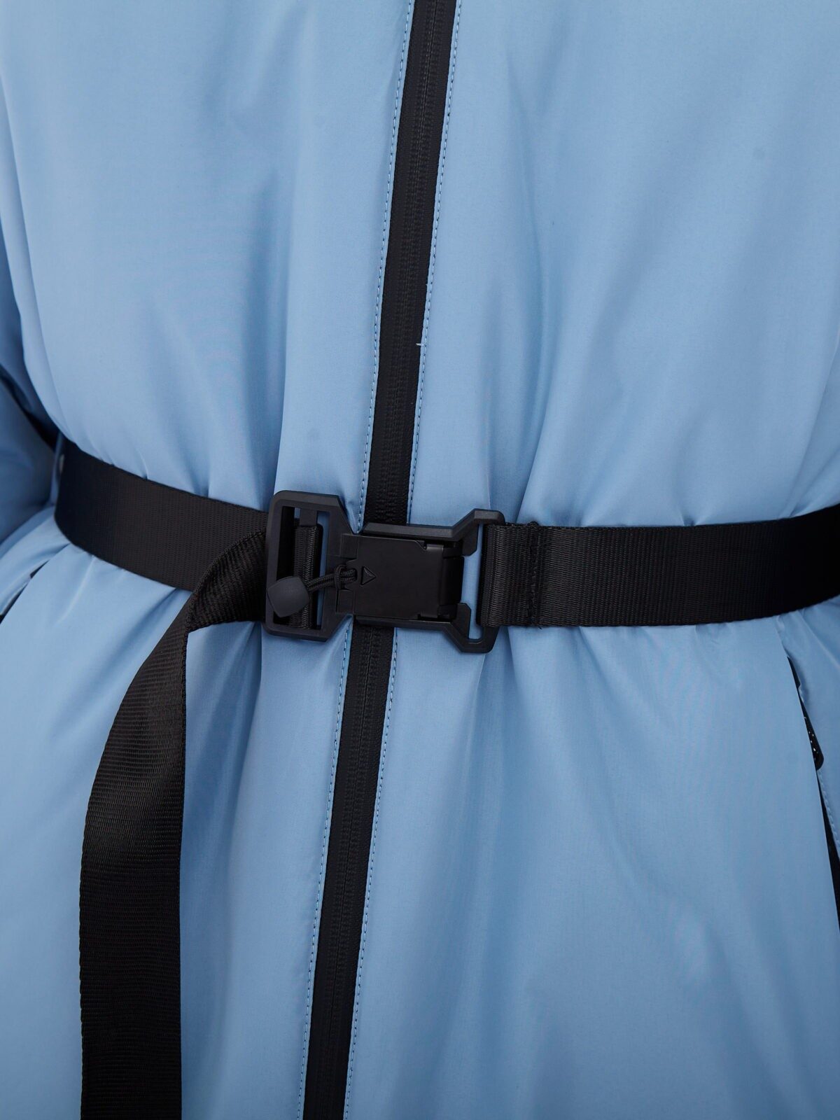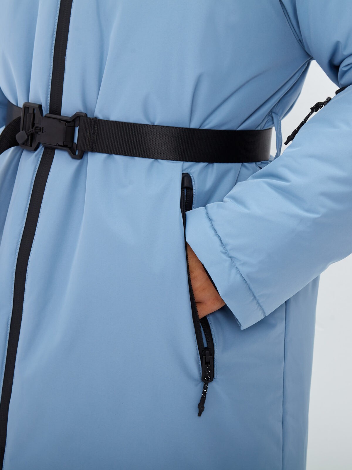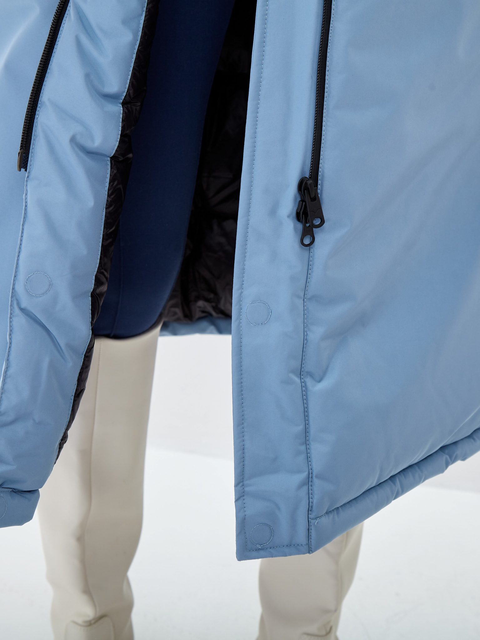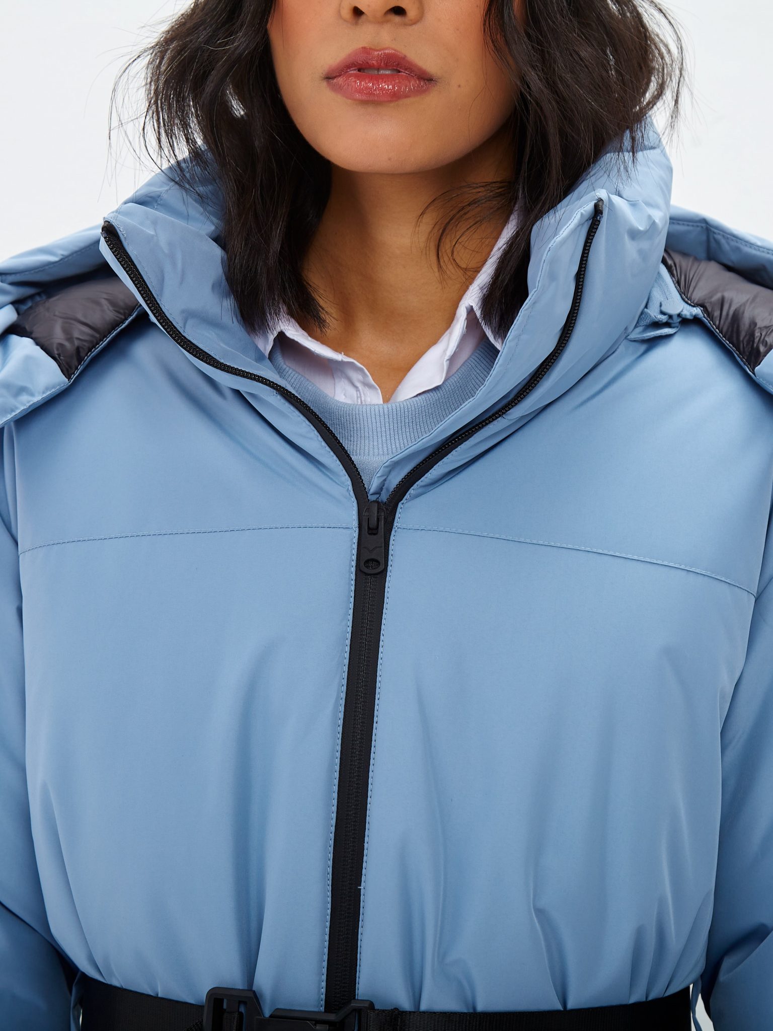 Зимний женский оверсайз пуховик Eggella, изготовлен из качественной водоотталкивающей ткани с водоотталкивающей пропиткой. Трапециевидный крой подарит комфорт и свободу движения – это верхняя одежда, подходящая взрослым женщинам и девушкам – подросткам с любым типом фигуры. Удлиненная куртка с центральной застежкой на двухзамковой водонепроницаемой молнии производства фирмы YKK с ветрозащитной планкой внутри и магнитами по низу изделия. Съёмный объемный регулируемый капюшон, застёгивающийся на магниты. Высокий объемный воротник надежно защищает от ветра и осадков. Эластичные манжеты рукавов с прорезями под большие пальцы обеспечивают надежное прилегание к руке. Боковые карманы на водонепроницаемой молнии. Внутренний нагрудный карман на молнии. Металлический логотип на левом плече дополняют образ. Внутренние стропы, для удобства носки куртки за плечами в помещениях. Карман на рукаве для карт. Пояс по талии позволяет регулировать посадку.